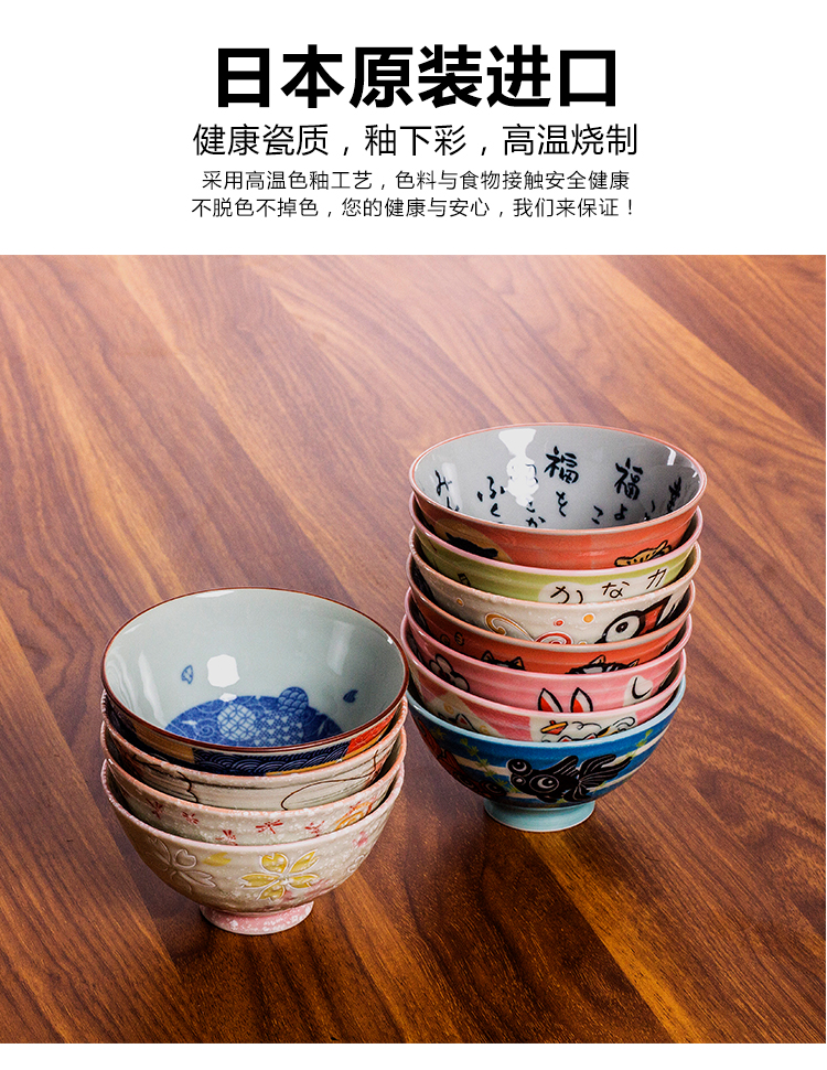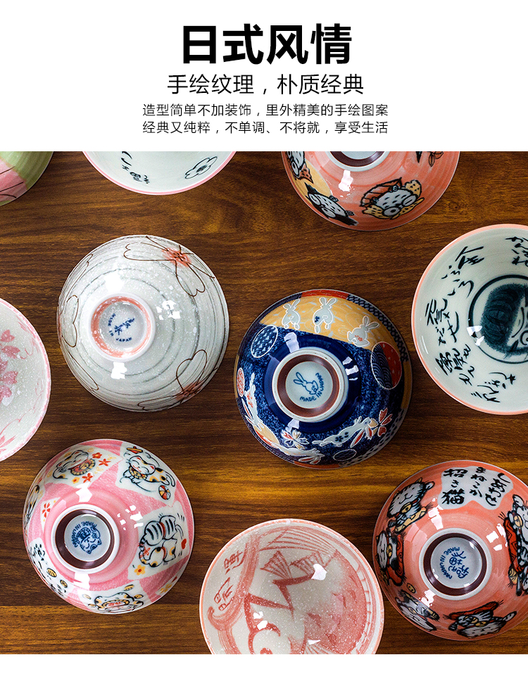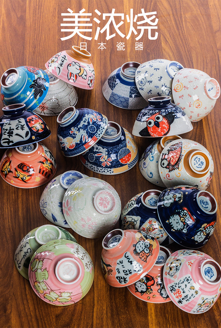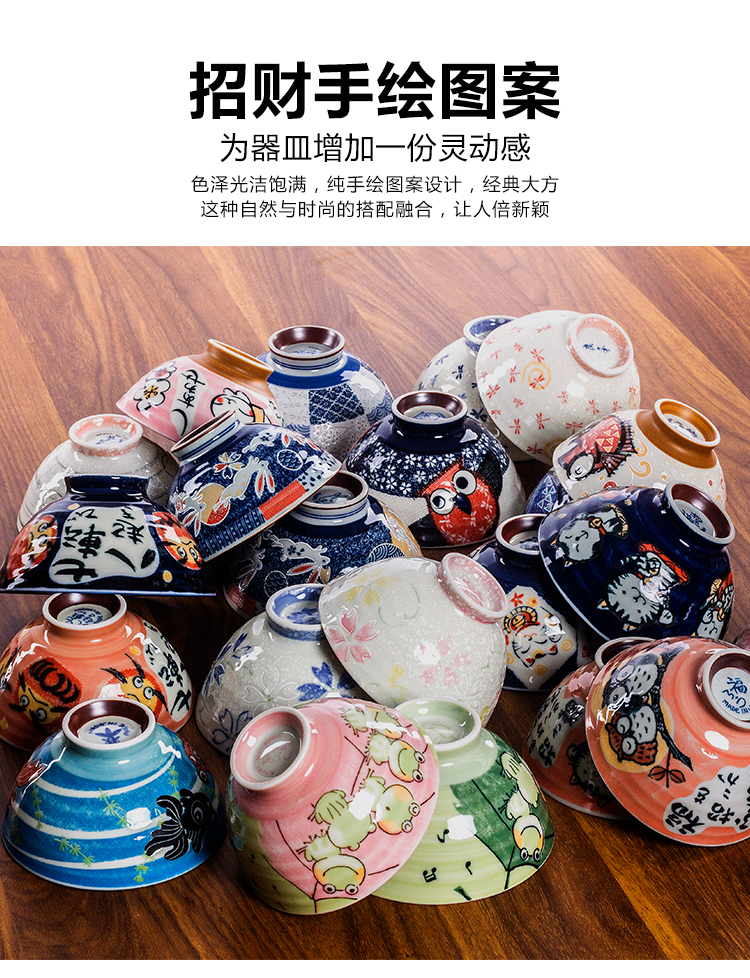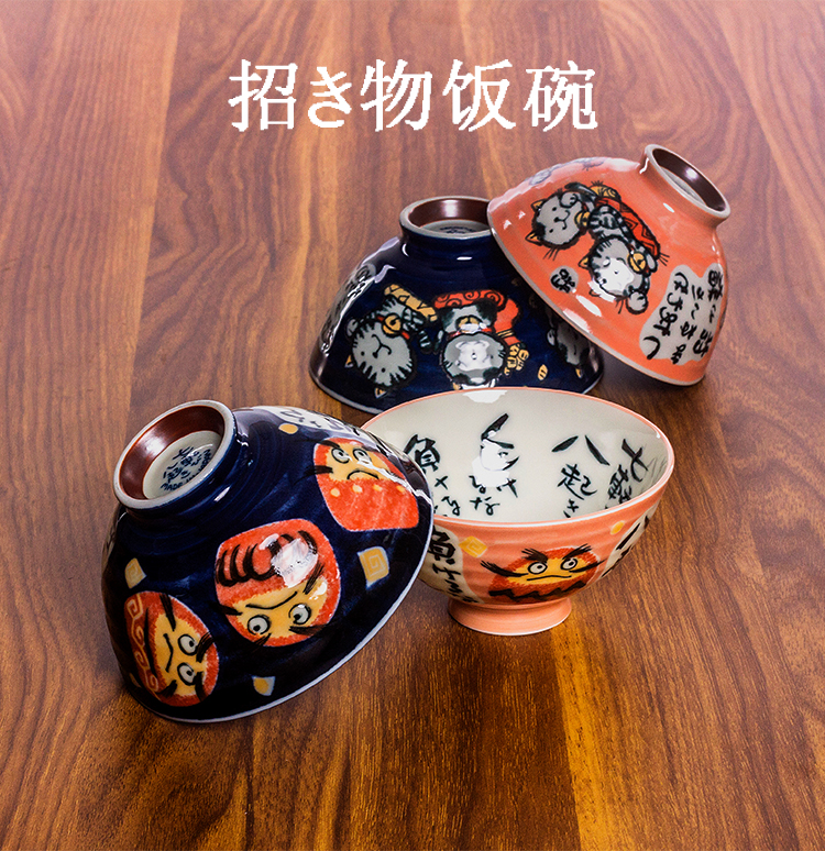 日本進口美濃燒家用米飯碗招福動物小碗招財貓達摩陶瓷碗日式餐具