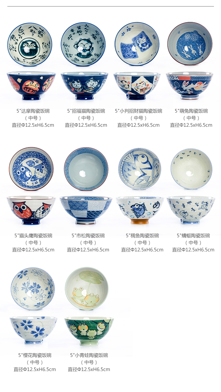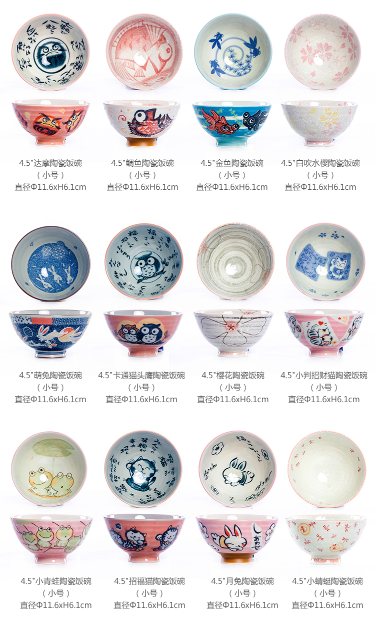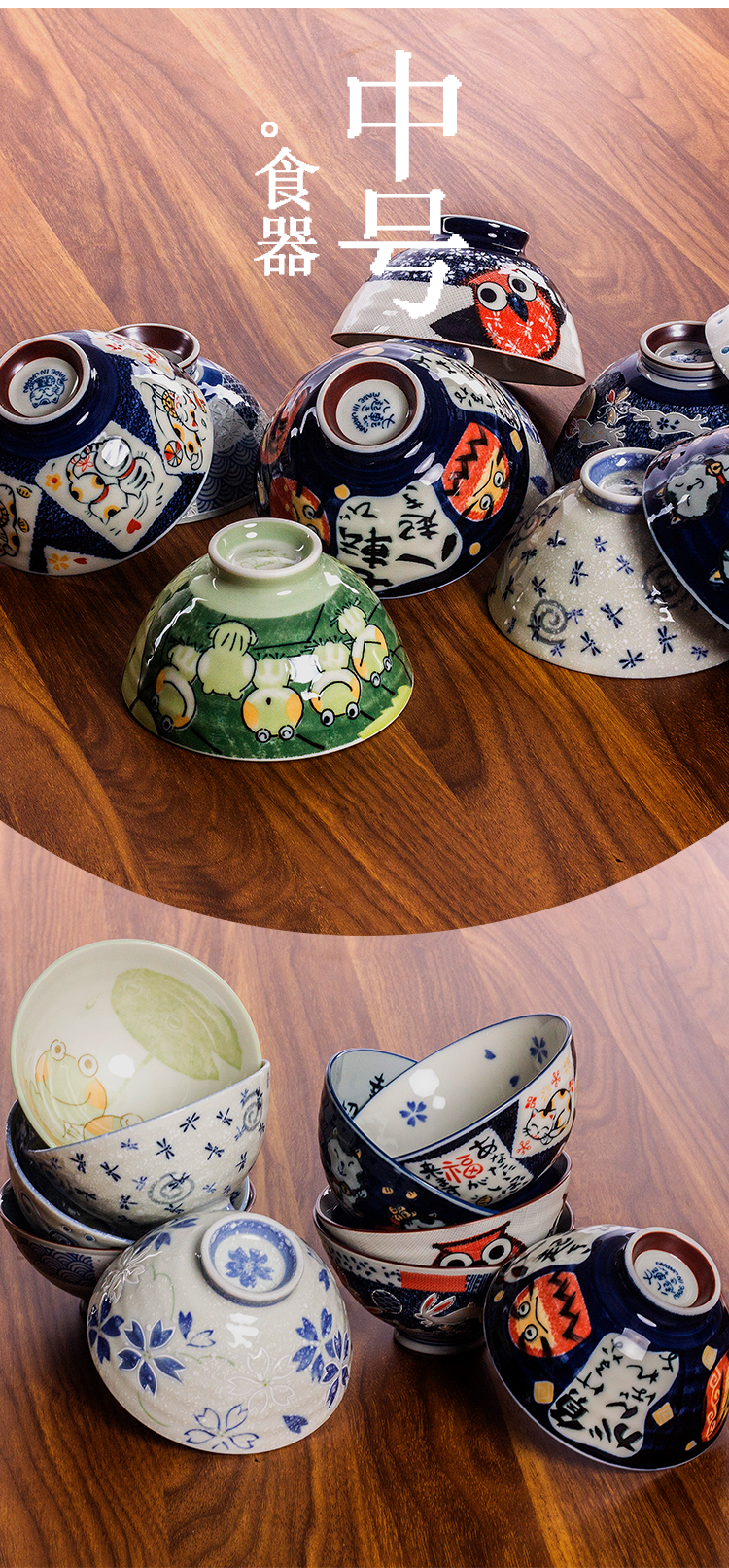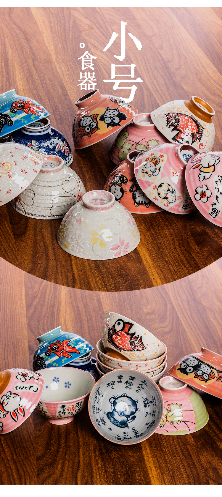 日本進口美濃燒家用米飯碗招福動物小碗招財貓達摩陶瓷碗日式餐具