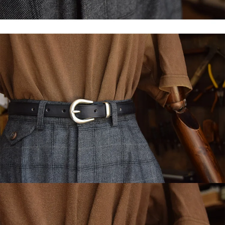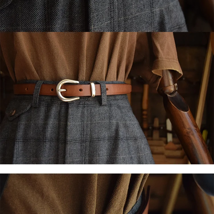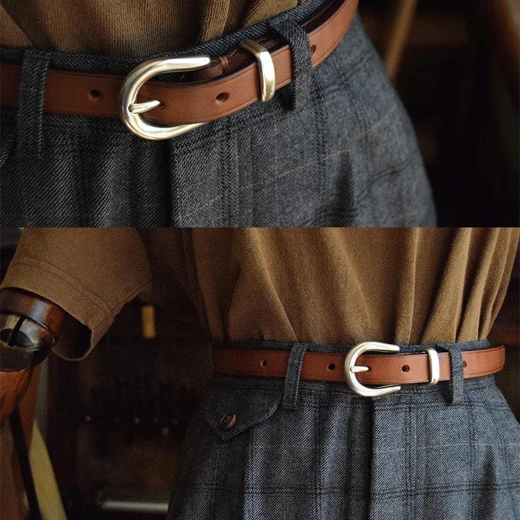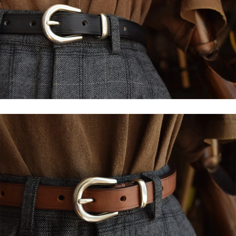 銀色針扣皮帶 女款腰帶 頭層植鞣牛皮 19mm 母親節禮物