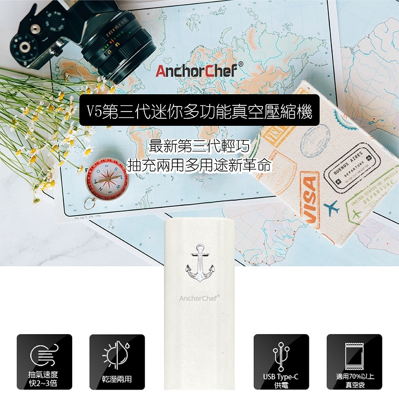 內容物:V5第三代迷你多功能真空壓縮機x1 +高質感真空袋(S、M、L)各2袋 + USB type-c線x1 + 多功能吸附轉接頭x1+多功能螺旋轉接頭x1+透明濕抽口x1+ 充氣輔助器(球針+泳圈孔)x4