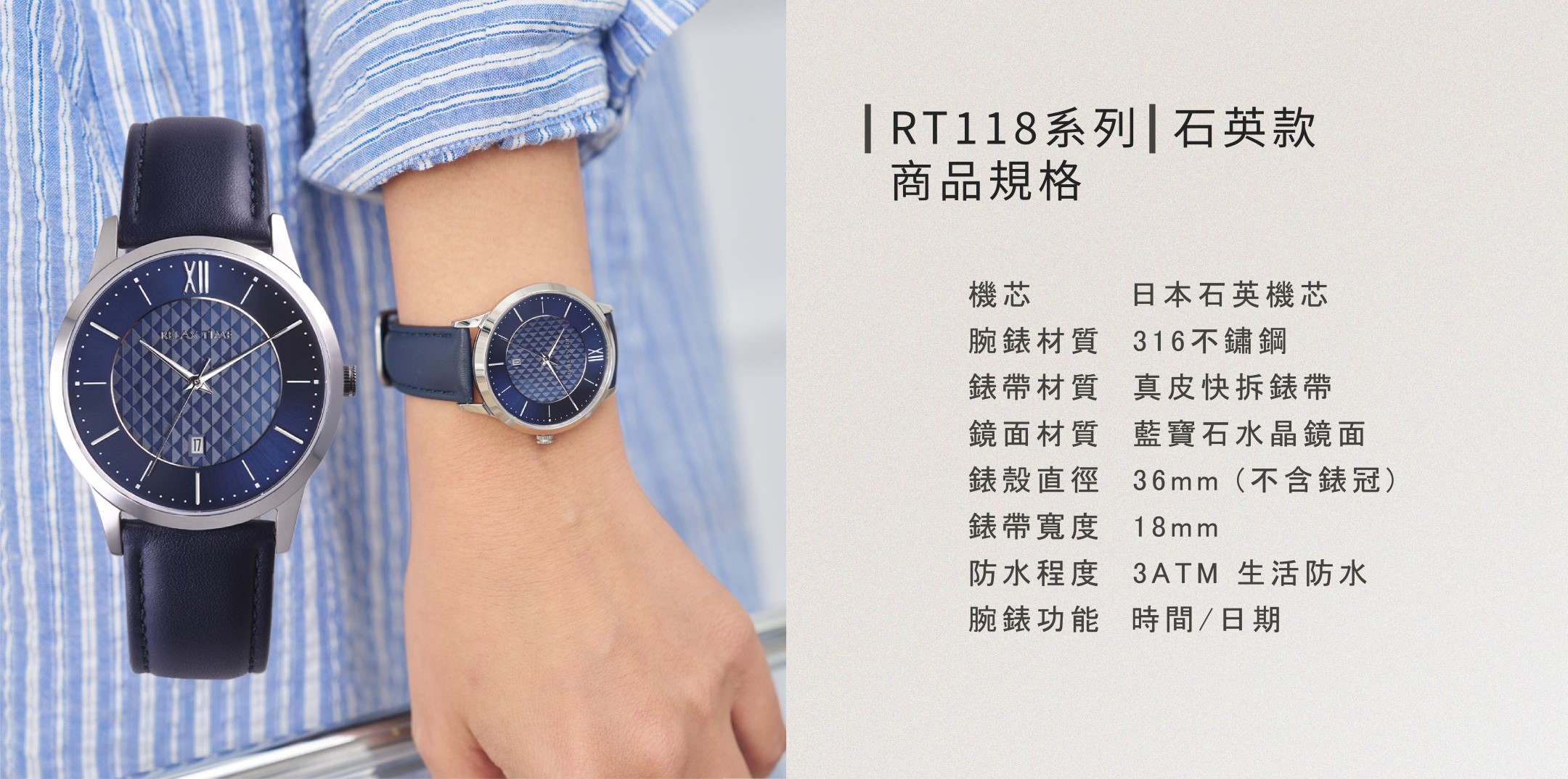 RELAX TIME 石英款 立體格紋 時尚女錶-藍 (RT-118-2L) 36mm