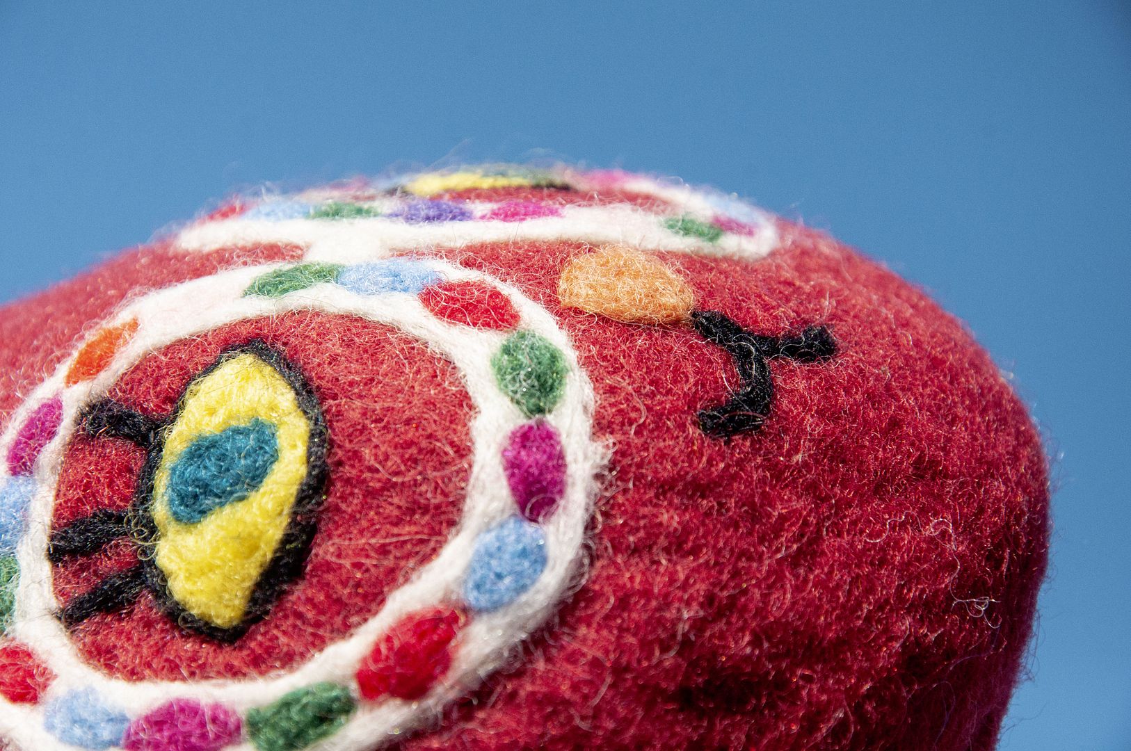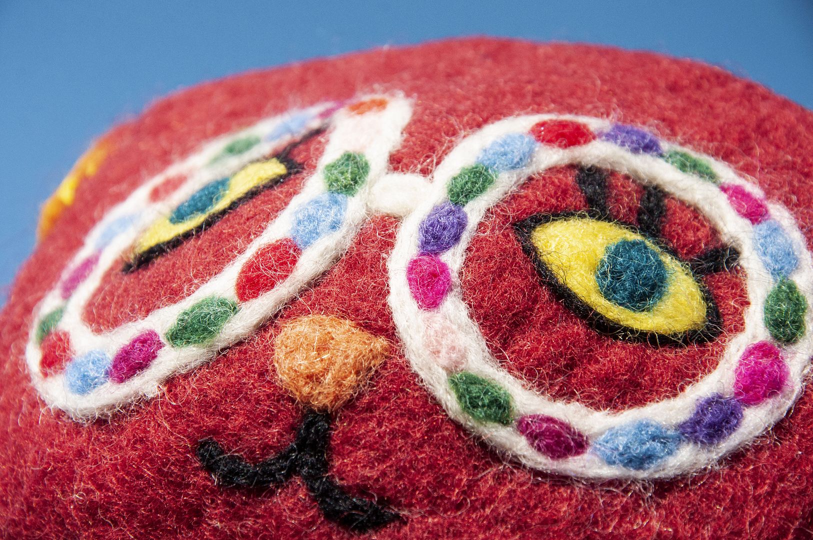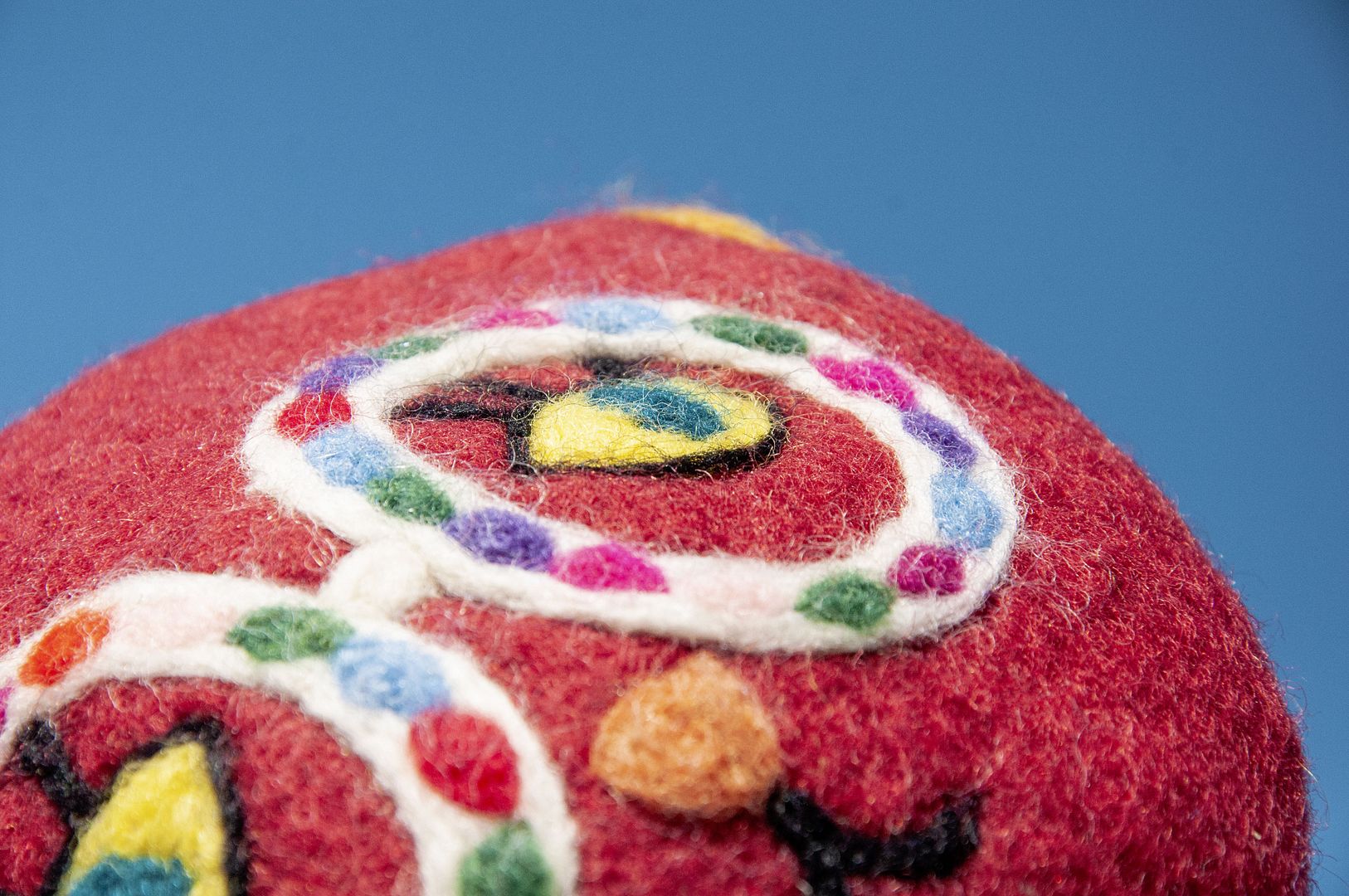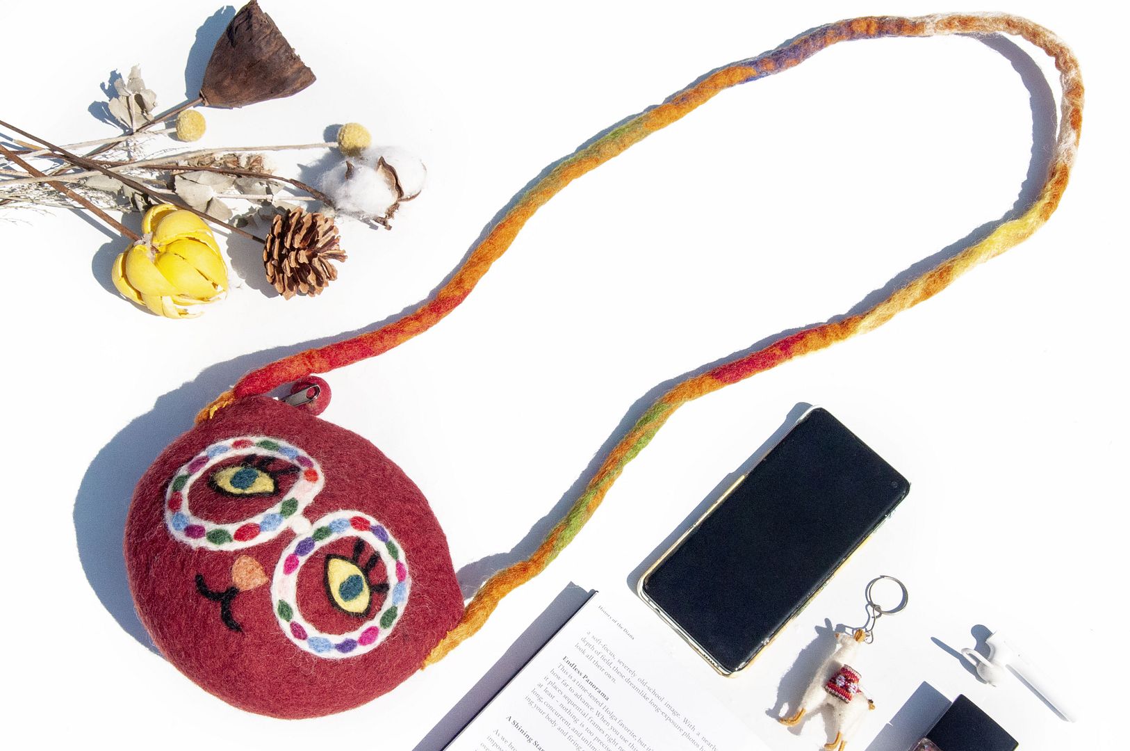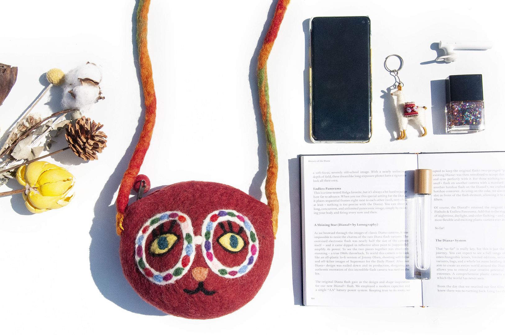 ▲以純淨的紐西蘭羊毛製成,結合戴眼鏡的貓咪圖案,是搭配服裝的好物, 回歸自然的美好經驗