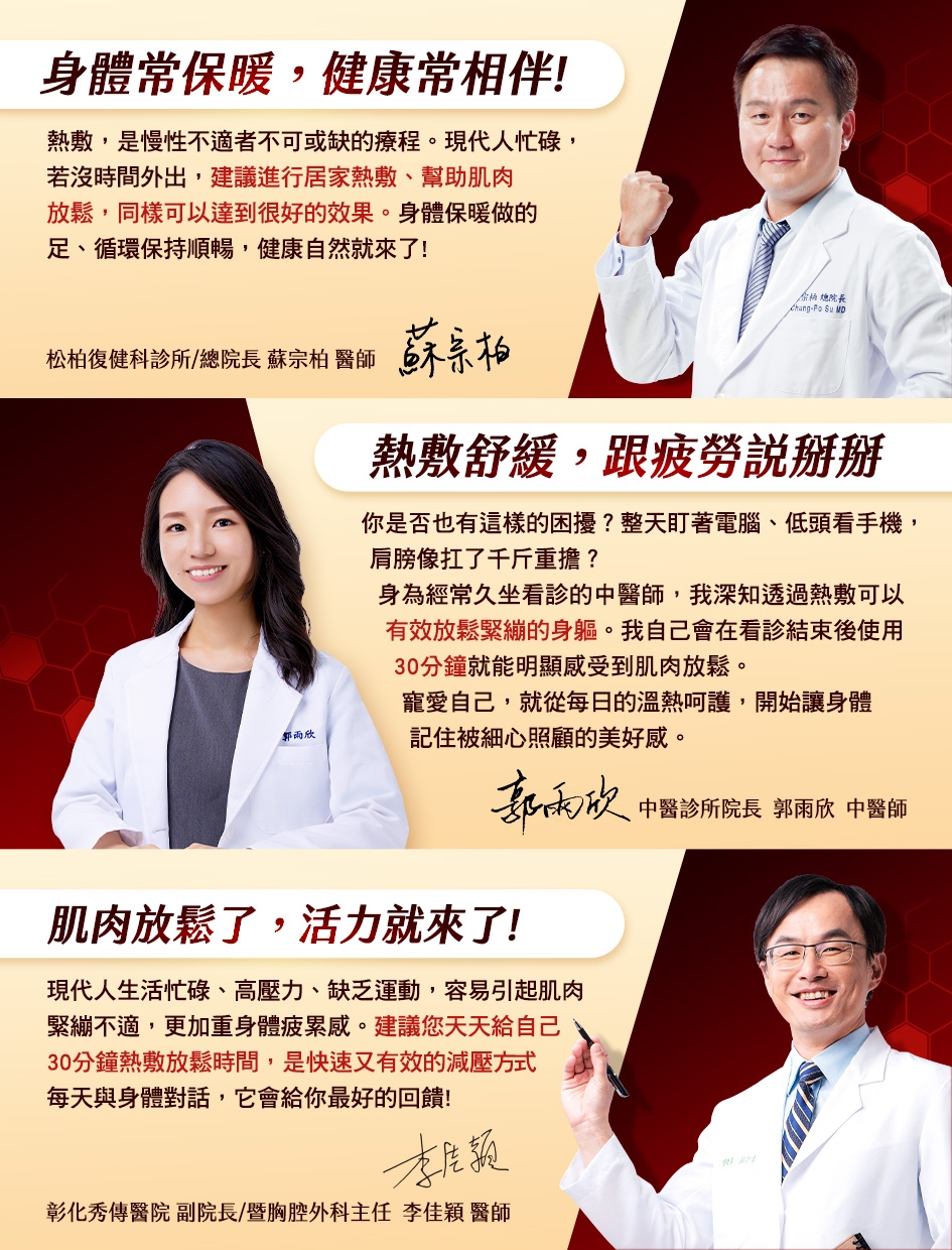 ●自然遠紅外線設計,熱能深入、有效舒緩