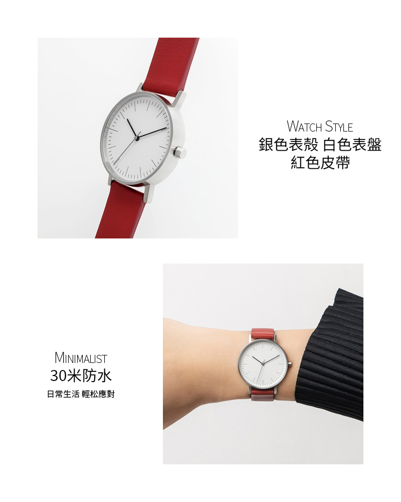 BIJOUONE彼樹灣 B001皮帶系列 極簡設計簡約真皮表帶防水石英錶,