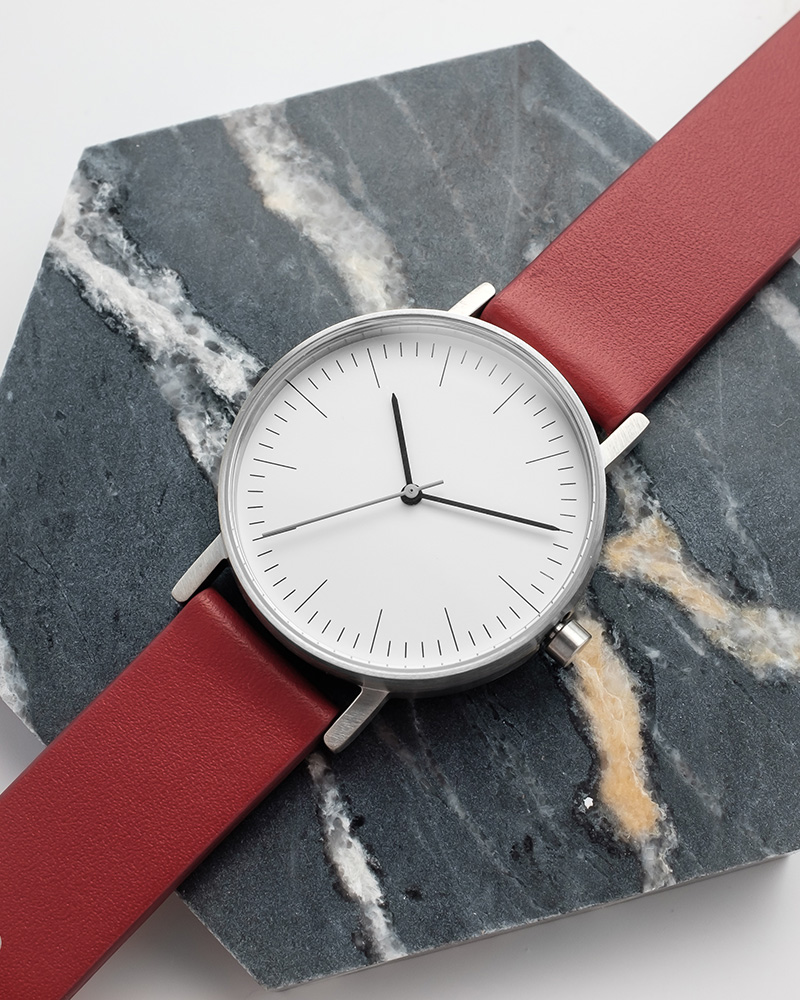 銀色不鏽鋼表殼,極簡刻度設計,簡潔純白色表盤,36/40MM兩個尺寸可供選擇。