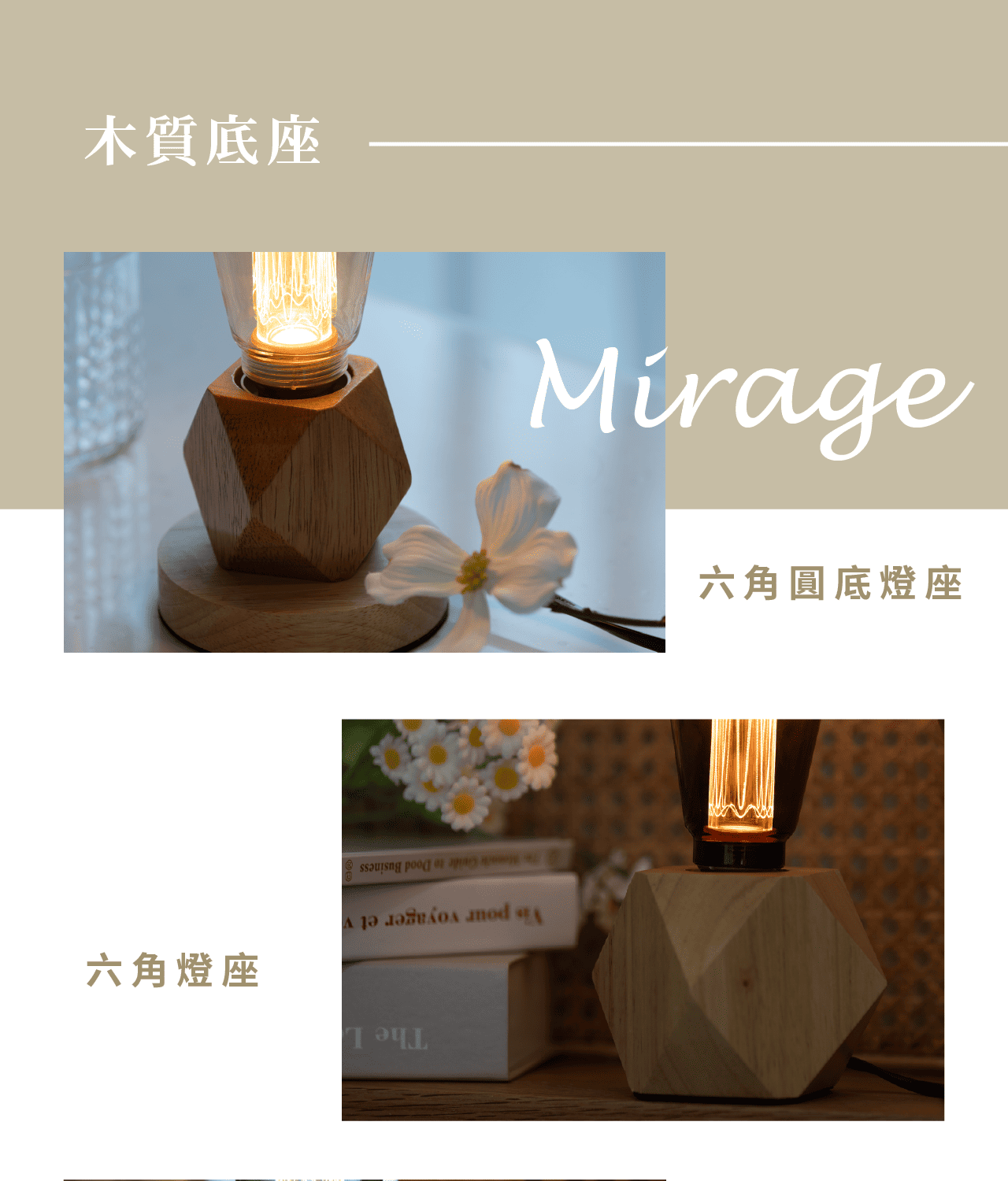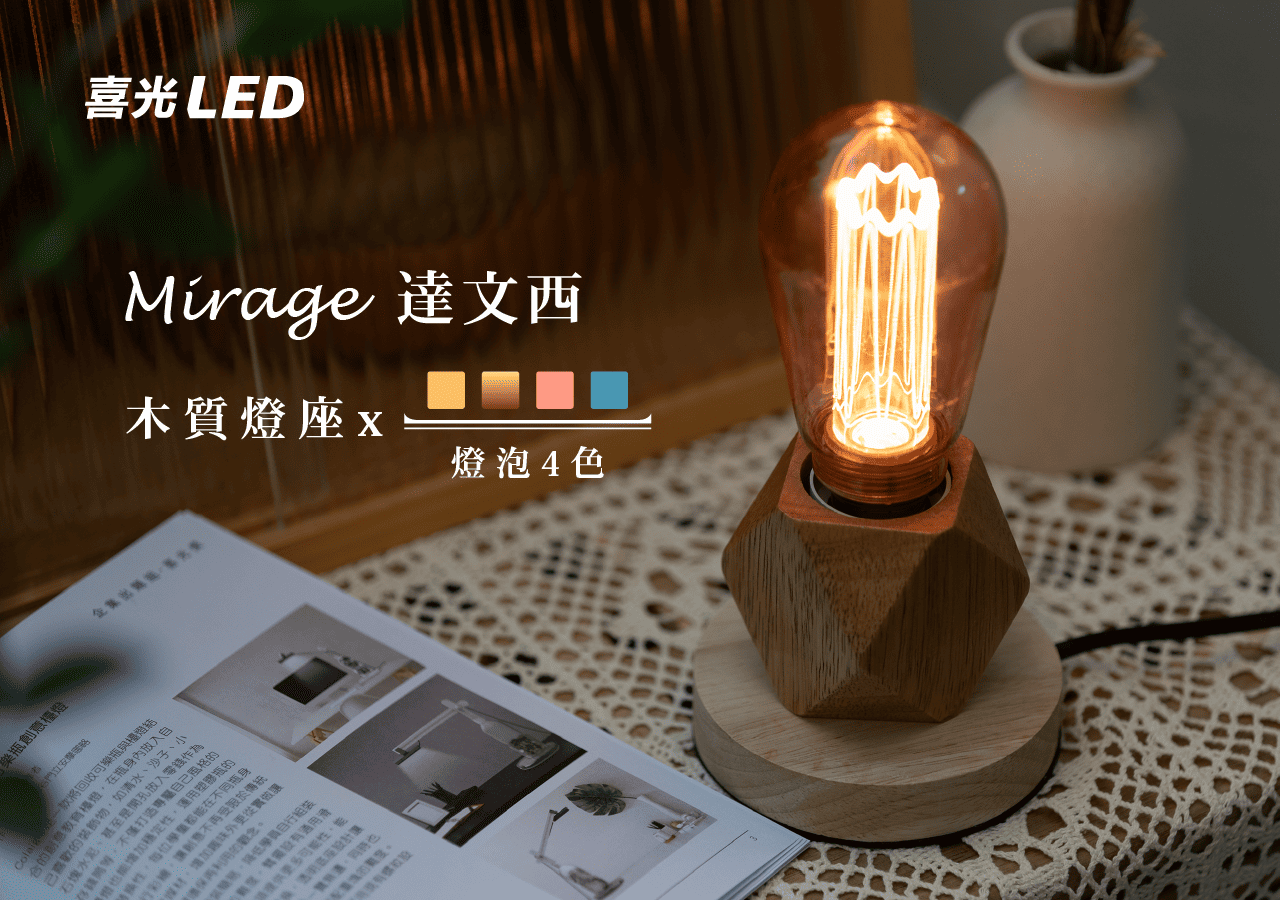 Mirage達文西幻影燈 | 六角圓底木質燈座 | 喜光LED
