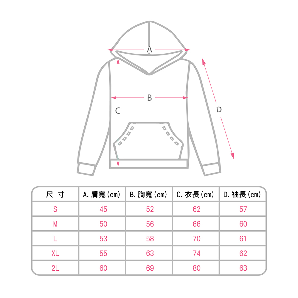 此款式版型為亞洲規格,下方附上尺寸表供參考。