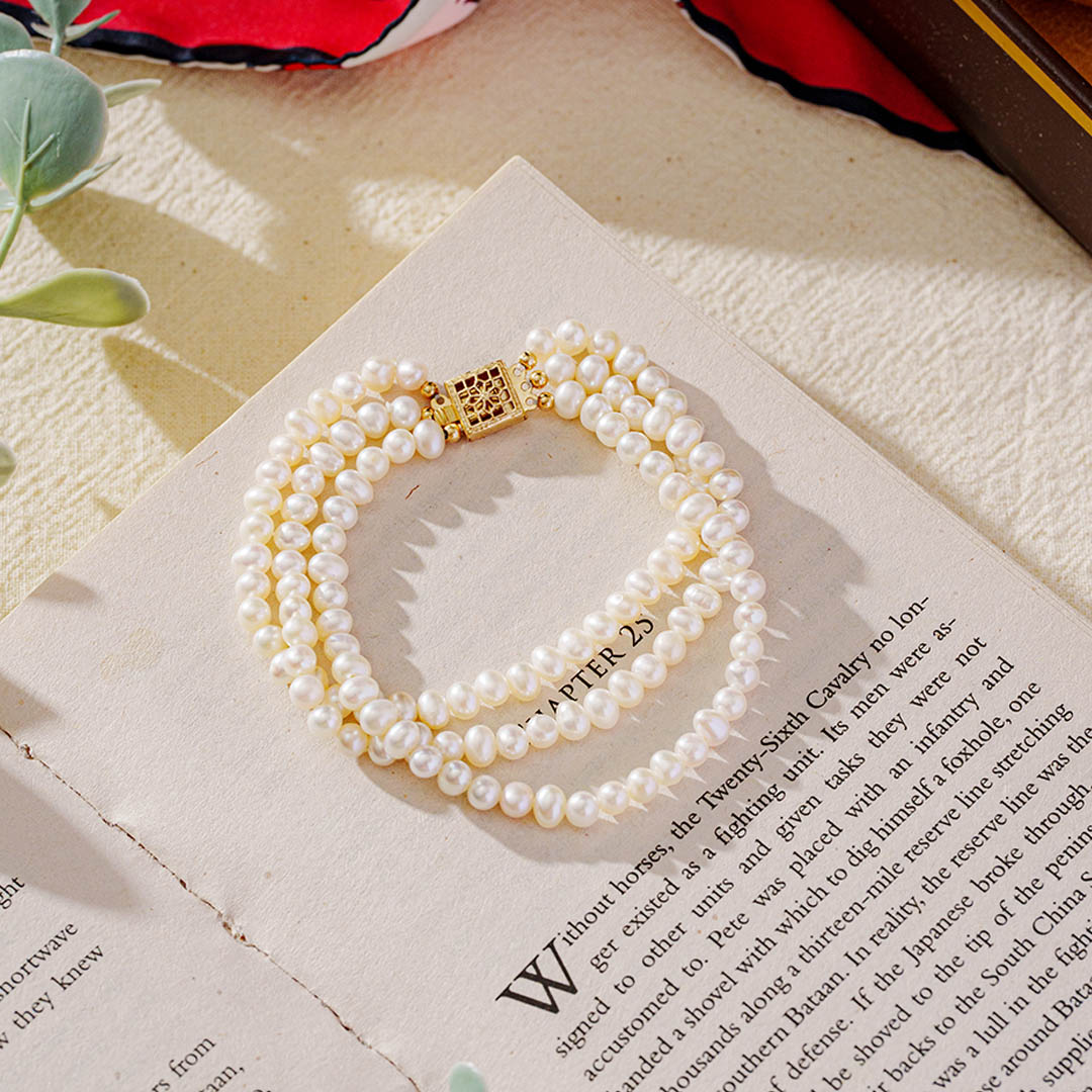 E. 定期檢查和保養: 珍珠項鍊的專用絲線時間久了會變形,建議每年對珍珠項鍊做一次換線保養;珍珠鑲嵌品要定期檢查接口處是否鬆動,以避免珍珠遺失產品