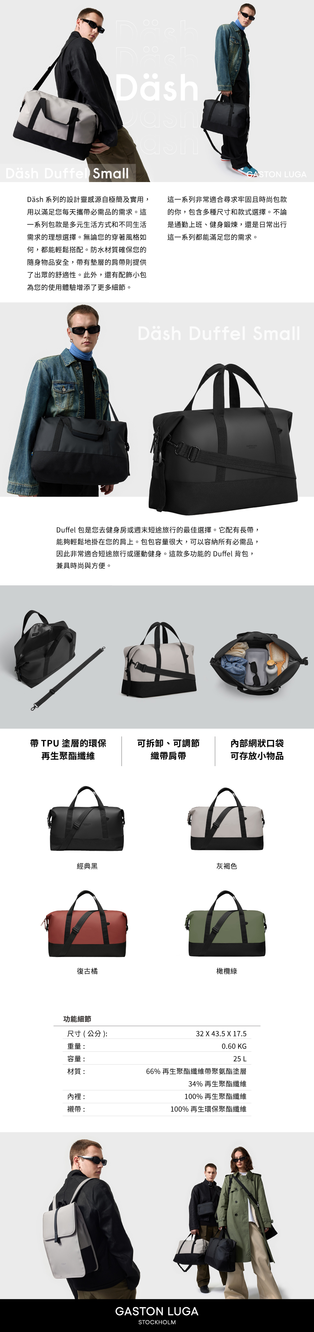 Däsh 系列的設計靈感源自極簡及實用,用以滿足您每天攜帶必需品的需求。這一系列包款是多元生活方式和不同生活需求的理想選擇。無論您的穿著風格如何,都能輕鬆搭配。防水材質確保您的隨身物品安全,帶有墊層的肩帶則提供了出眾的舒適性。此外,還有配飾小包為您的使用體驗增添了更多細節。
