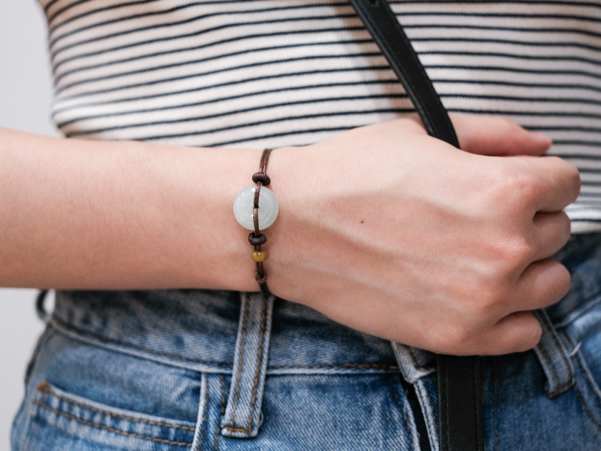 ◖ 平安扣綠意翡翠結繩手鍊 ◗