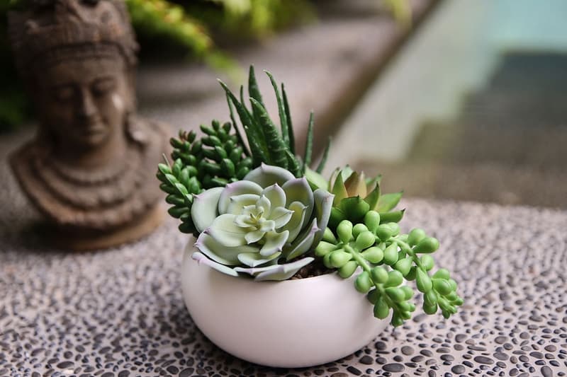 5種多肉植物打造出來的圓形陶瓷盆栽,經典綠色的多肉植物,適合擺放在房間、客廳、飯桌、或辦公桌,把大自然放在身邊的感覺,豐富自己環境的清爽氛圍。