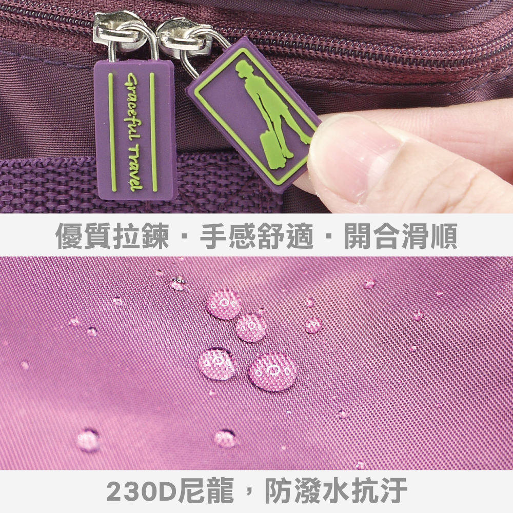 材質: 230D尼龍(表層防潑水抗污處理) + 網布。