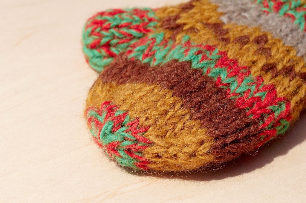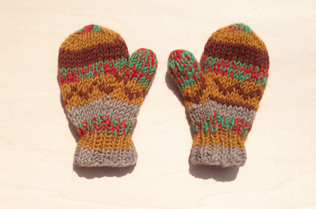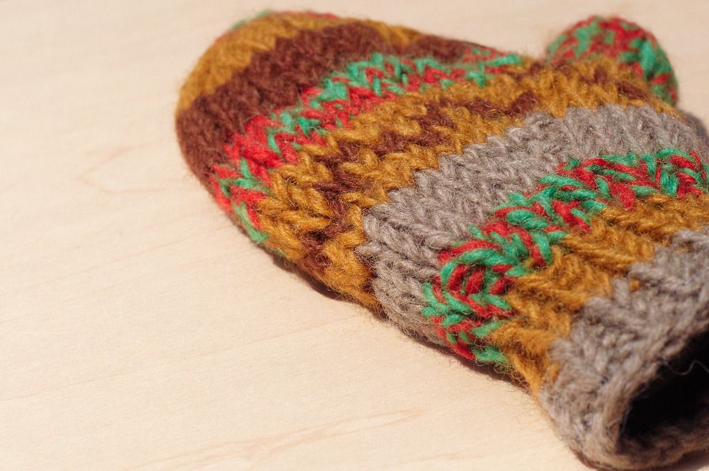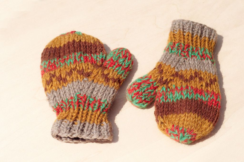 限量一件針織純羊毛保暖手套 / 兒童手套 / 童手套 / 內刷毛手套 / 針織手套 / 拳擊手套 - 東歐 混色沙漠色調條紋