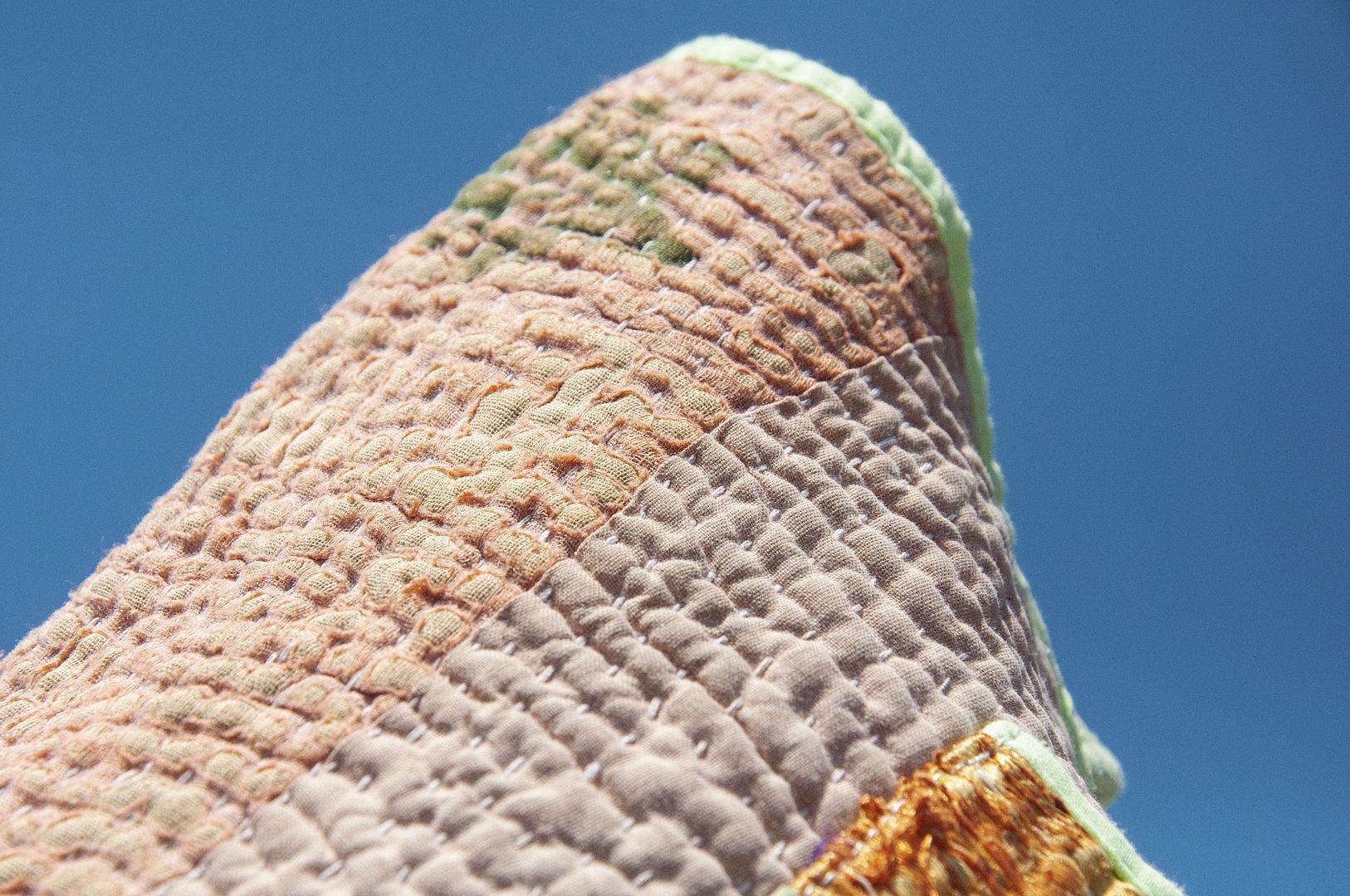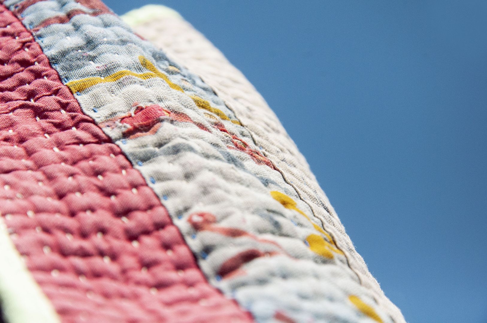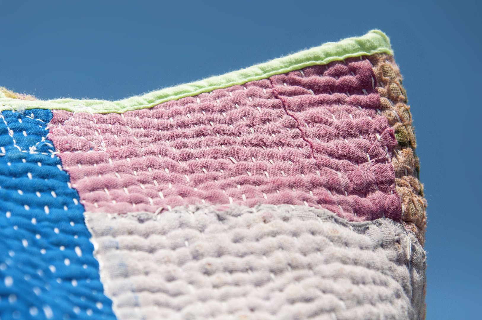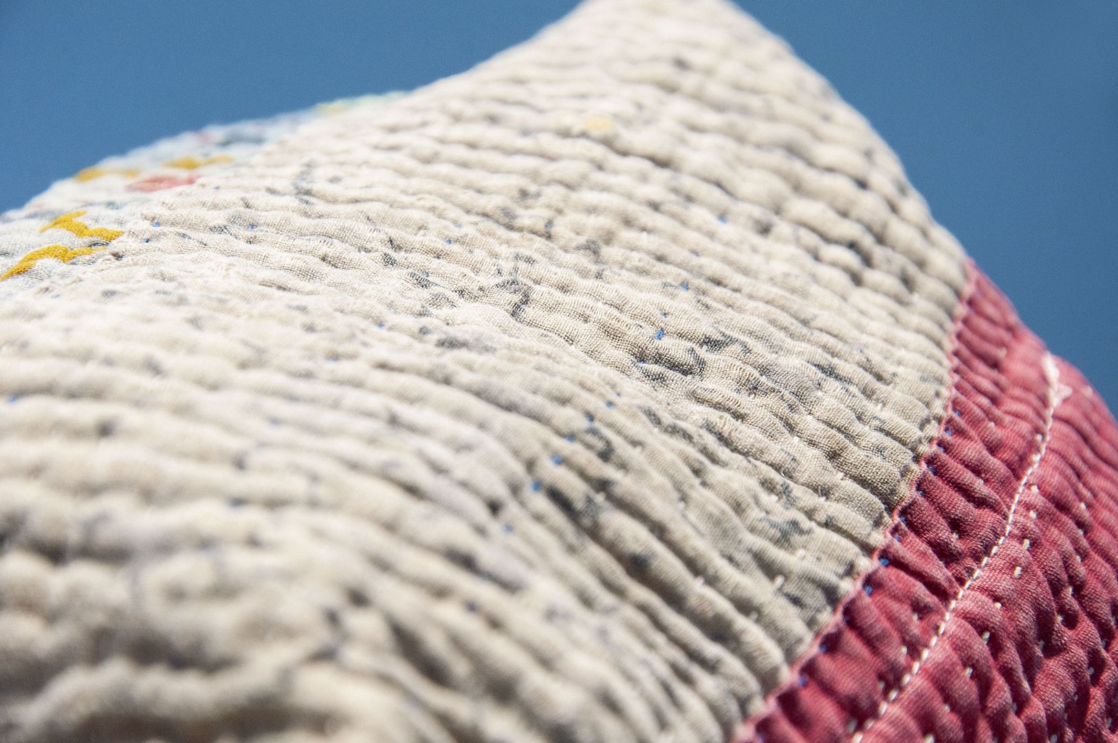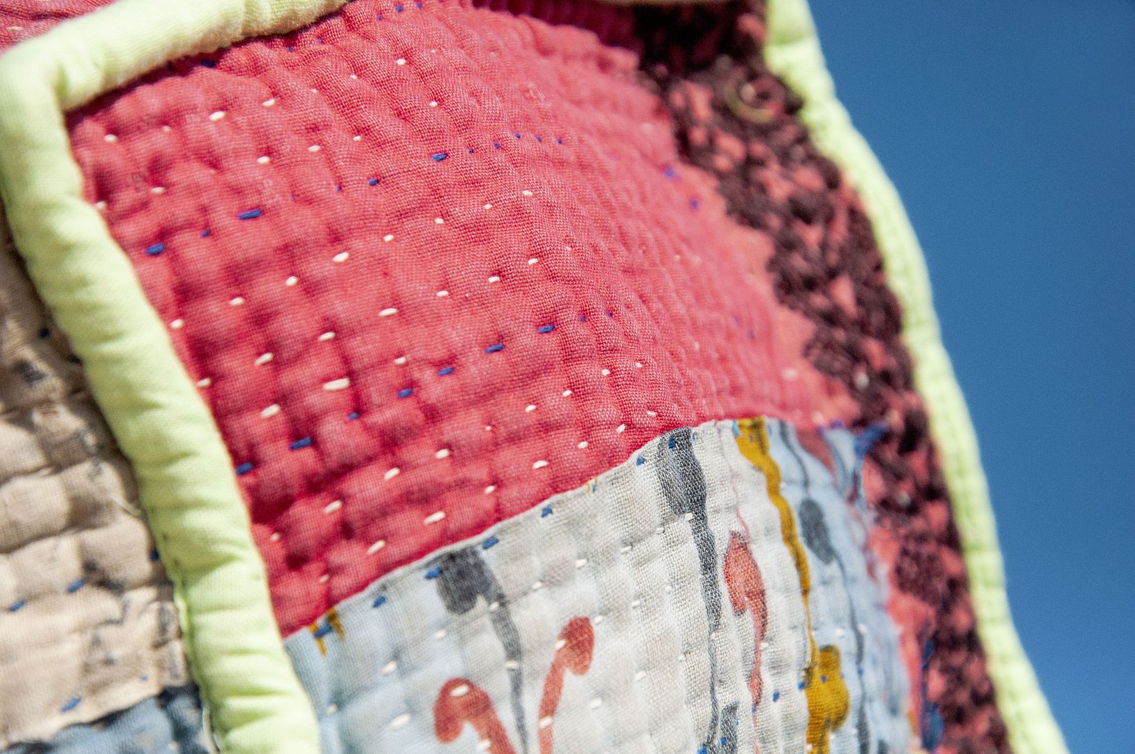 ▲來自印度沙漠地區的gudri刺繡工法,嚴選印度回收紗麗布+棉線刺繡