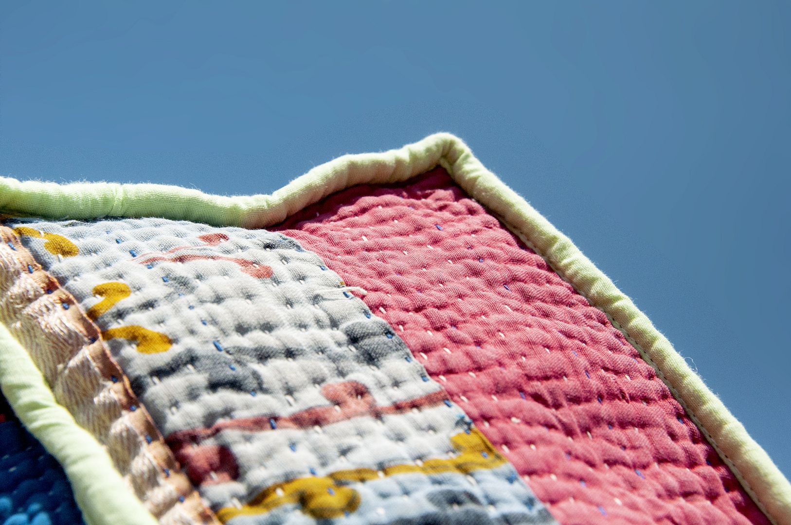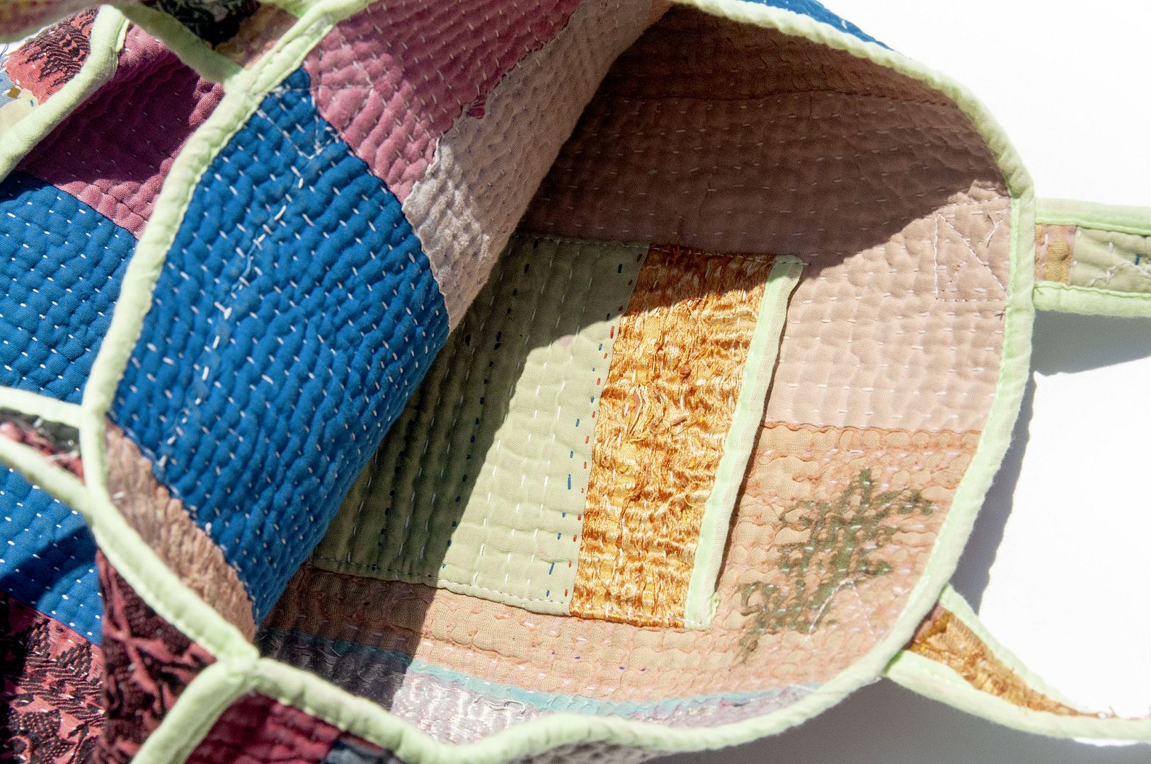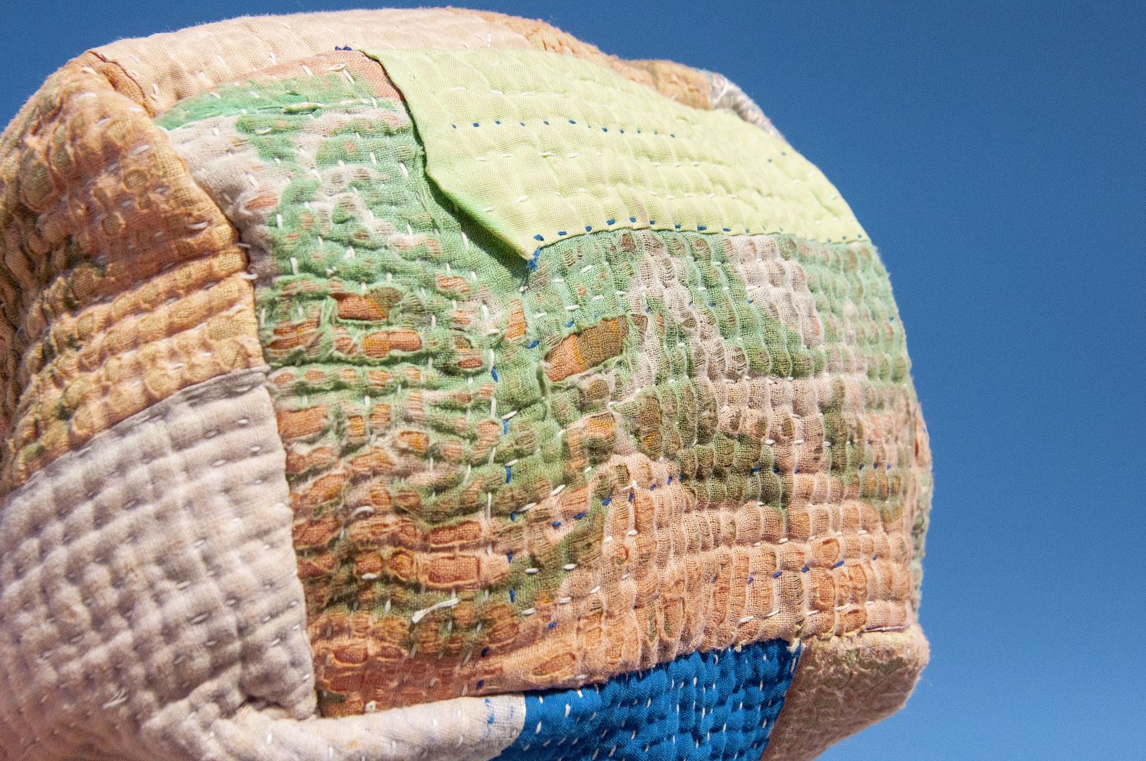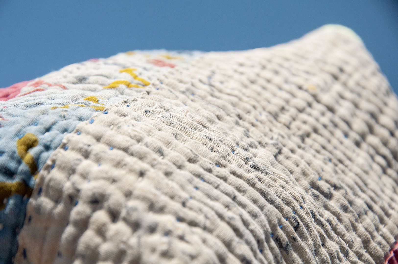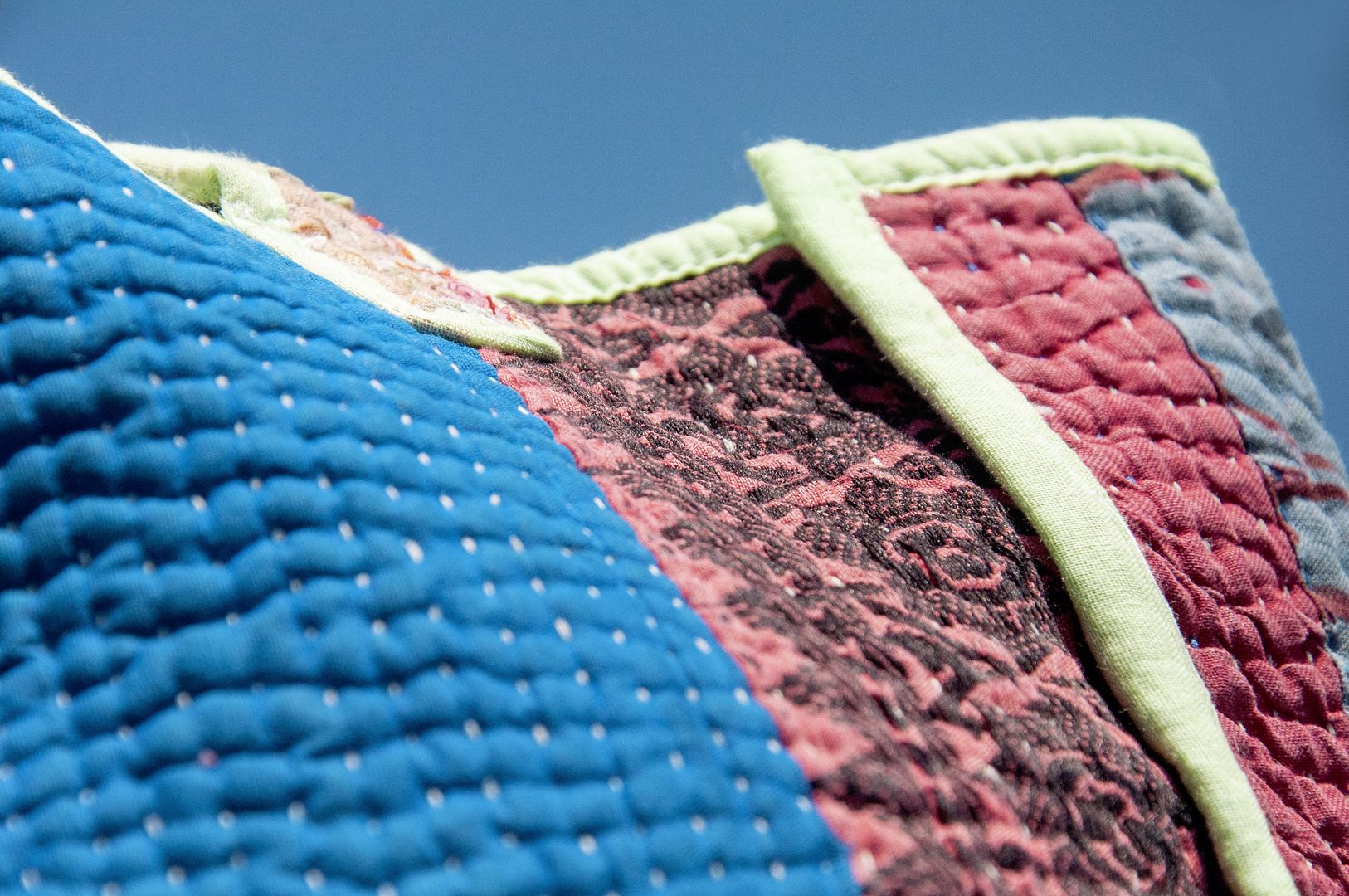 ▲來自印度沙漠地區的gudri刺繡工法,嚴選印度回收紗麗布+棉線刺繡