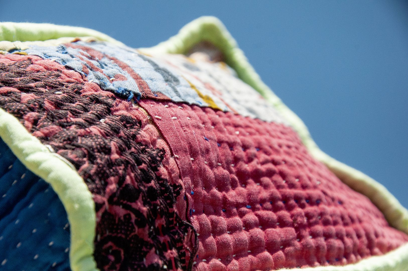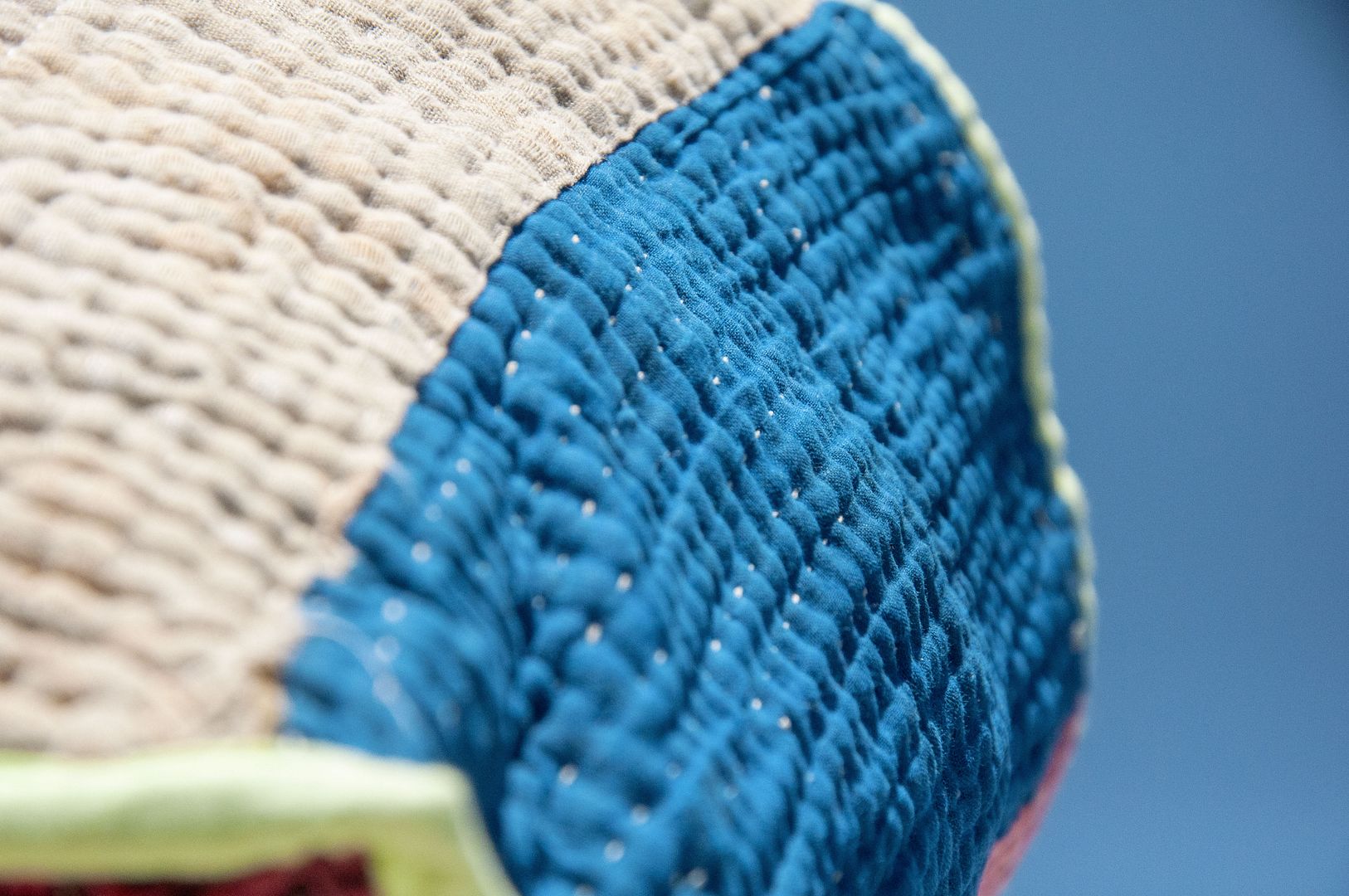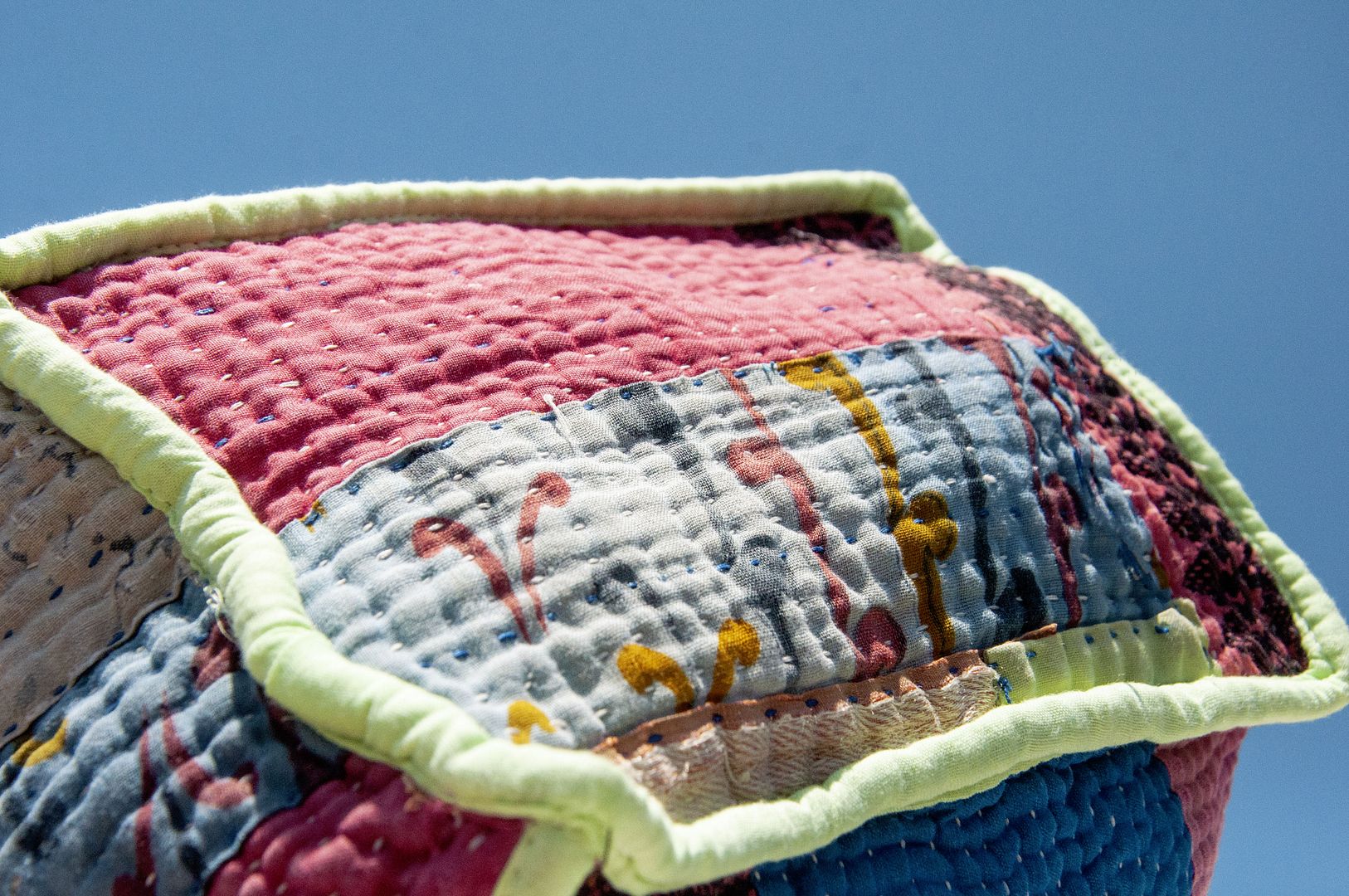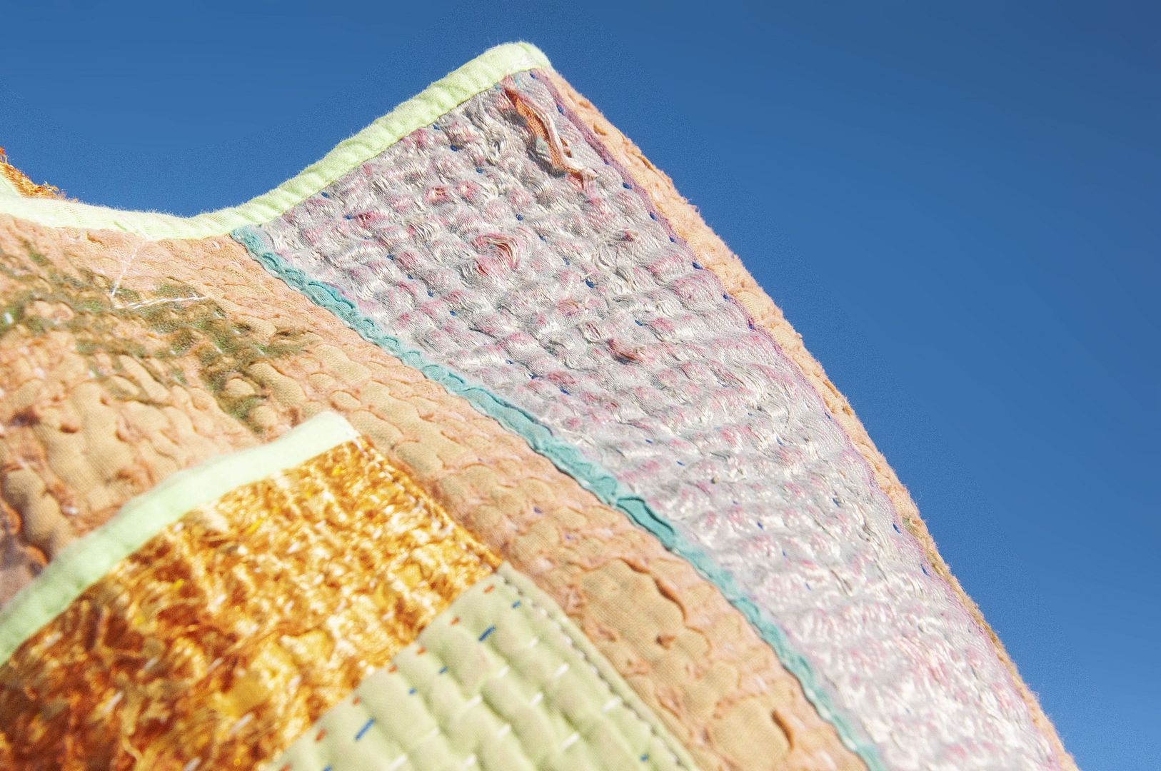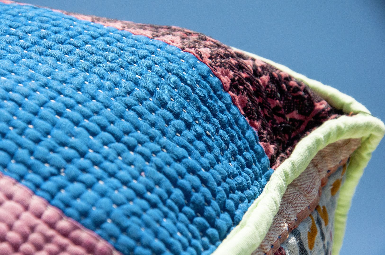 ▲來自印度沙漠地區的gudri刺繡工法,嚴選印度回收紗麗布+棉線刺繡