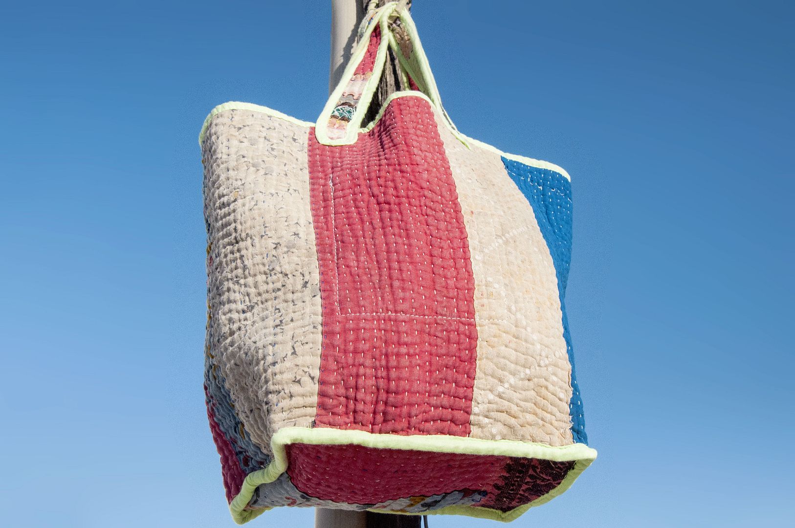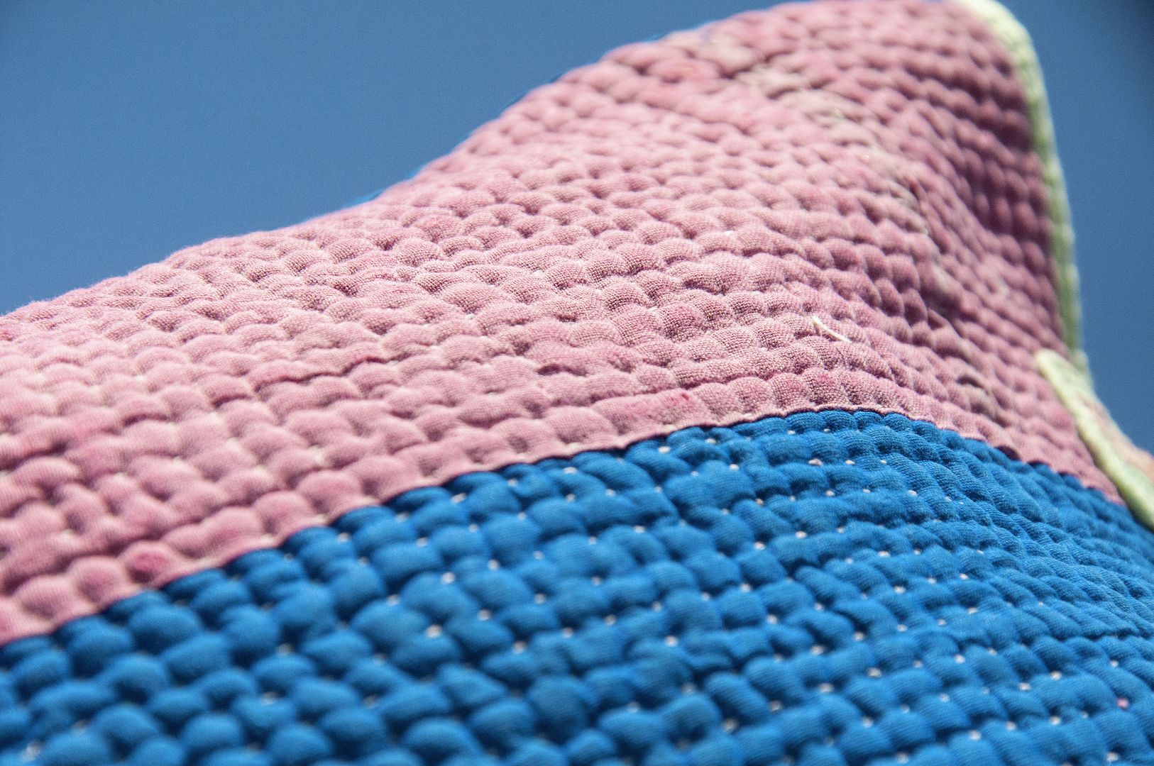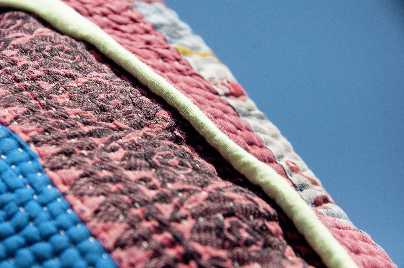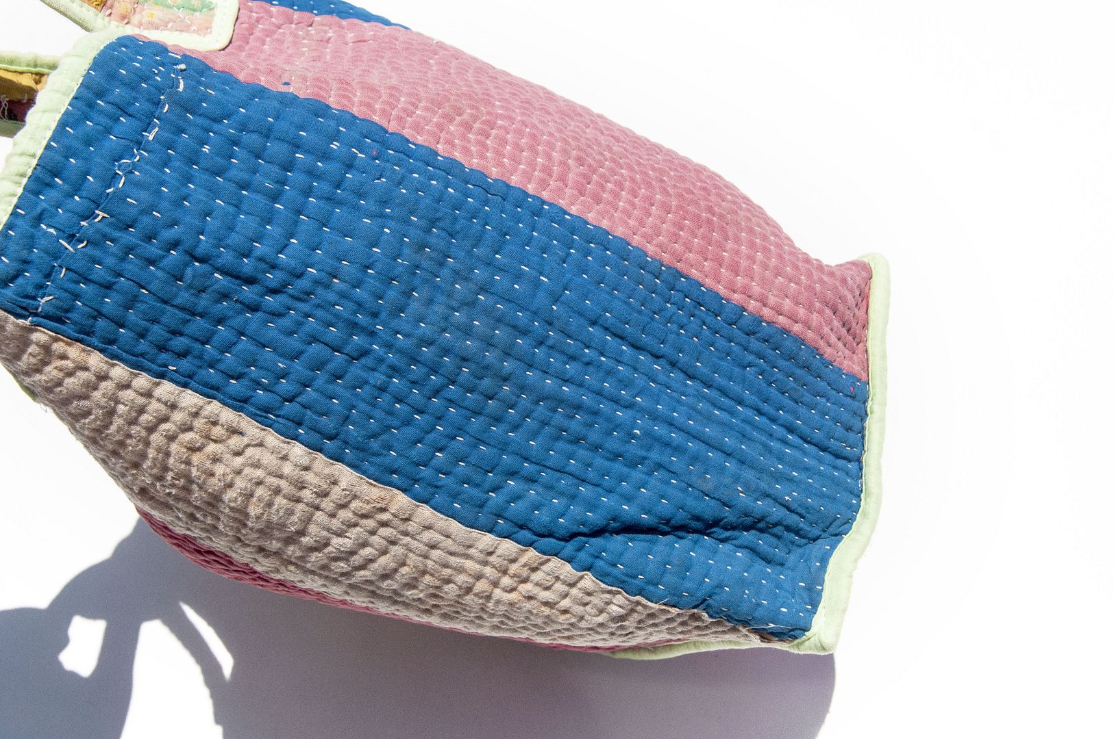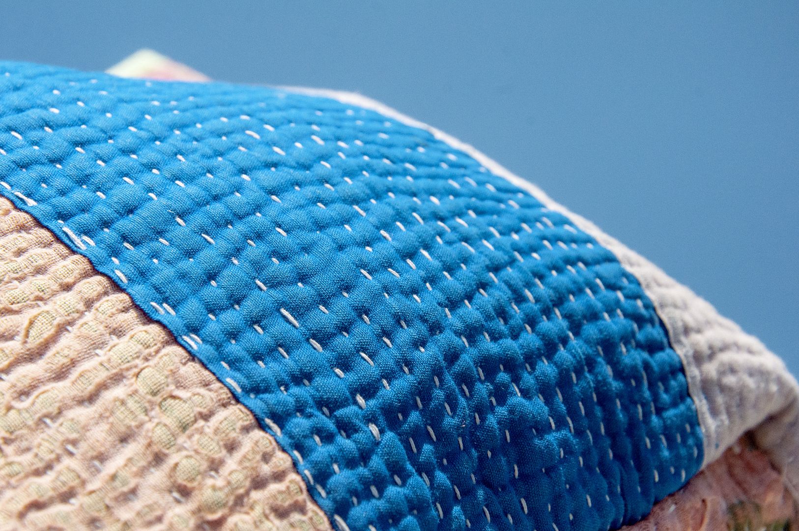 ▲來自印度沙漠地區的gudri刺繡工法,嚴選印度回收紗麗布+棉線刺繡