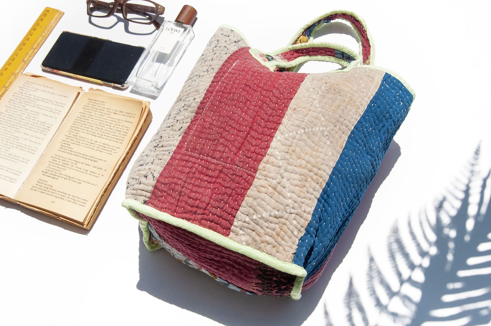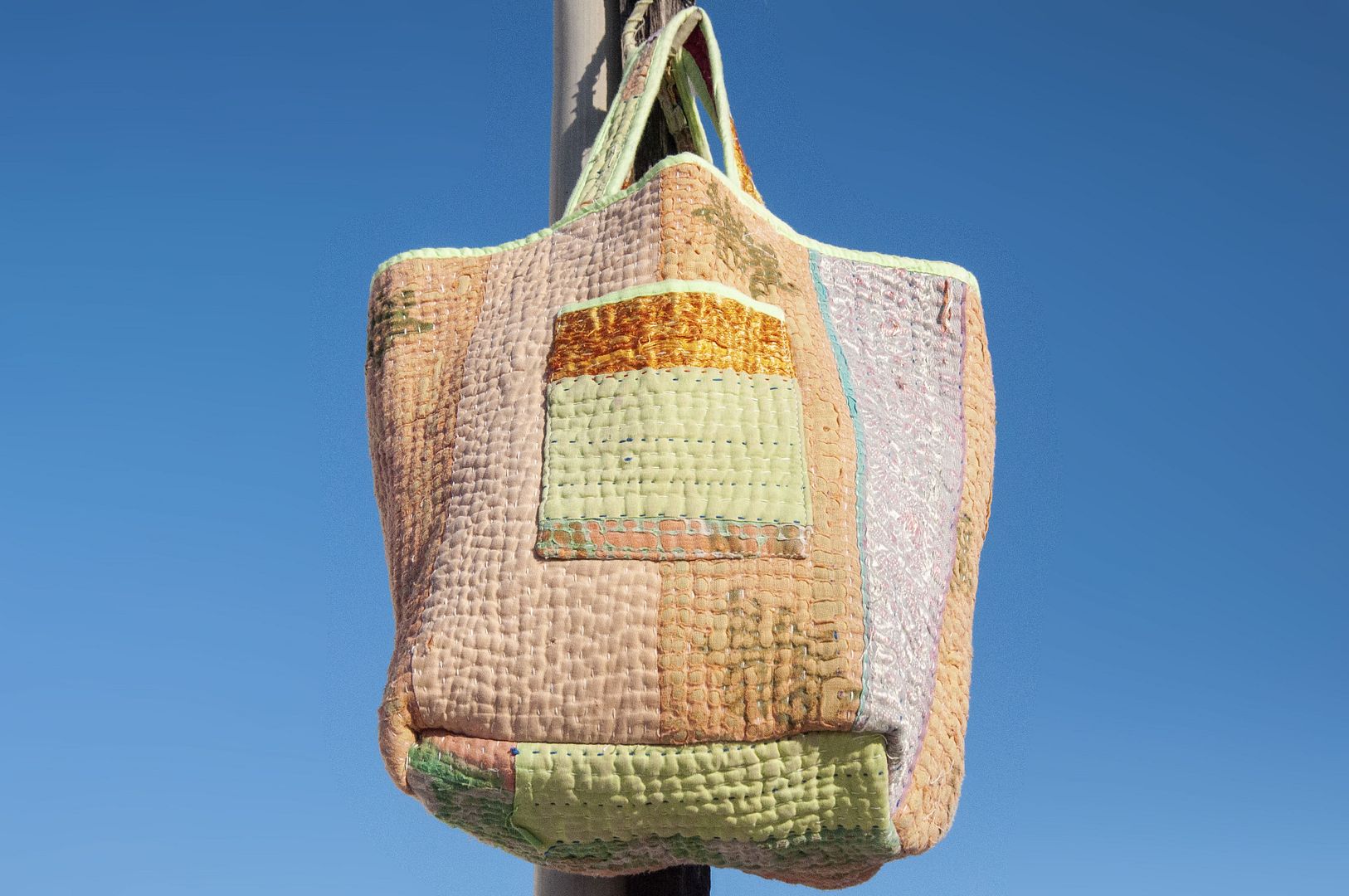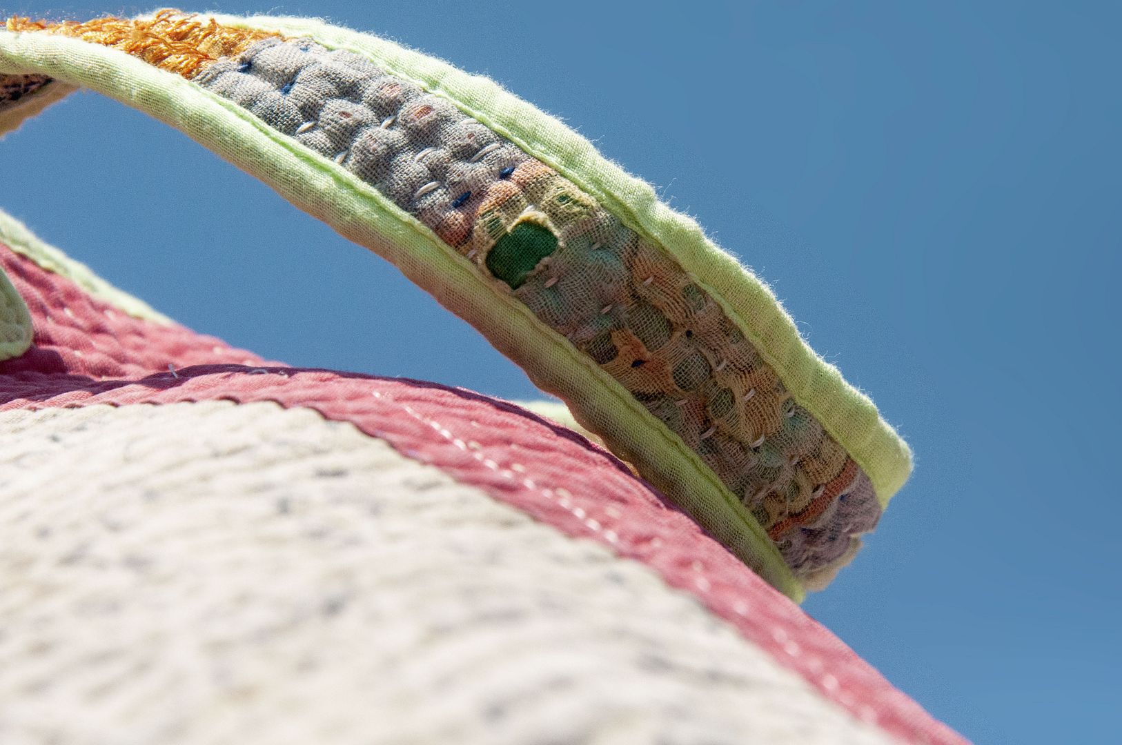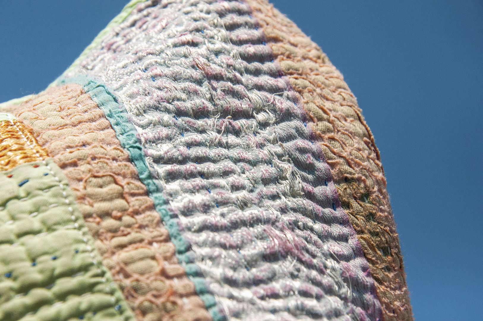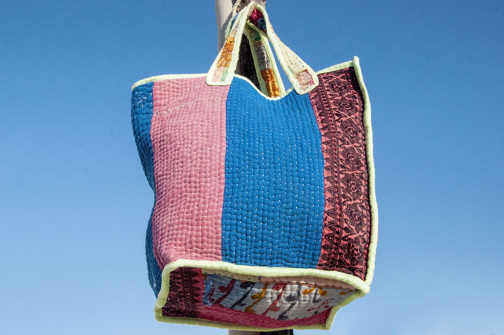 ▲來自印度沙漠地區的gudri刺繡工法,嚴選印度回收紗麗布+棉線刺繡