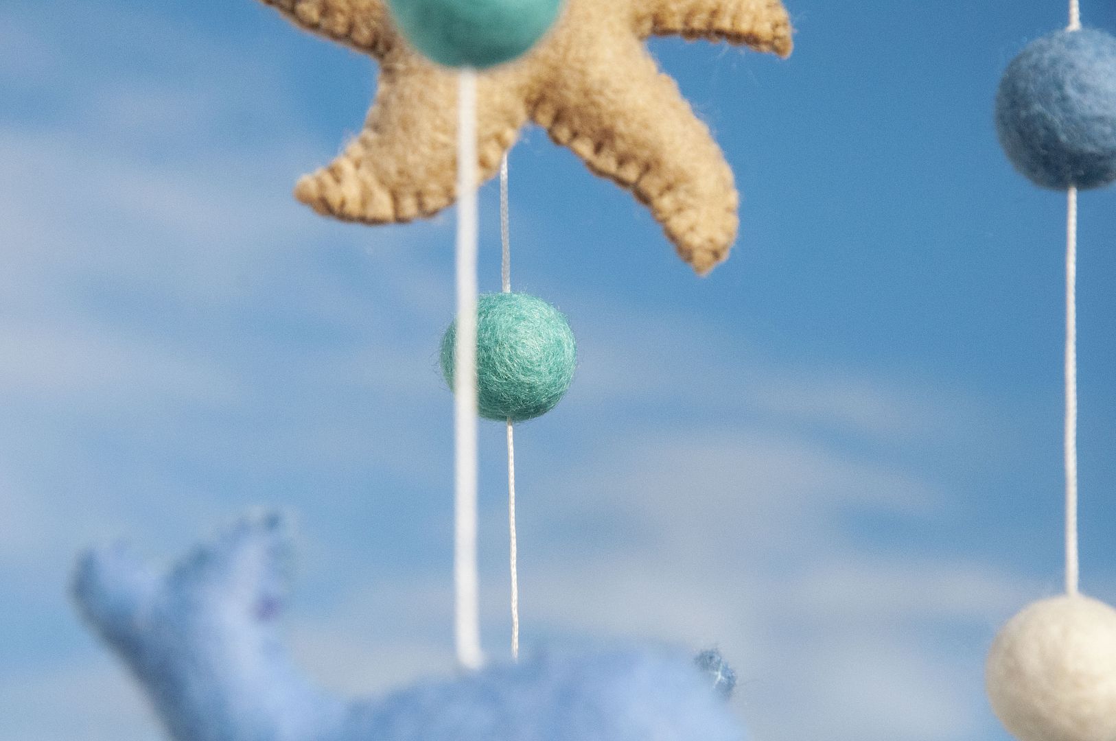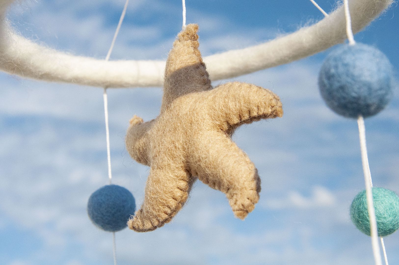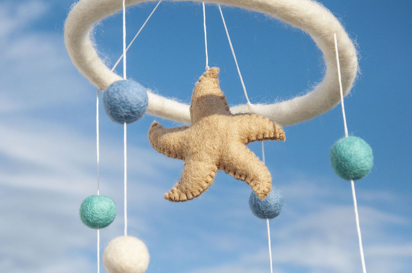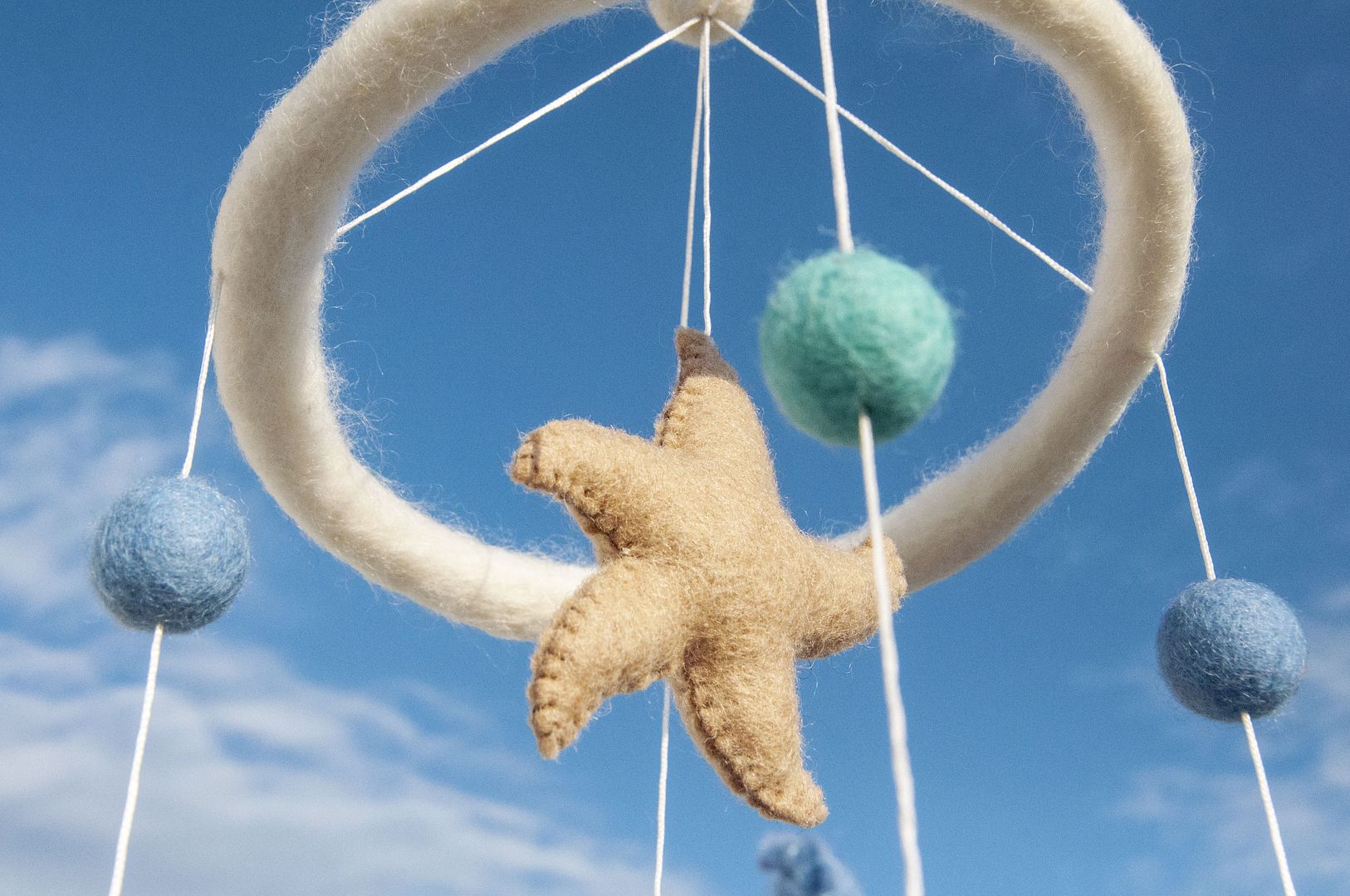 彌月禮物 手工羊毛氈吊飾/Boho嬰兒床吊飾/童房掛飾-海星鯨魚海洋