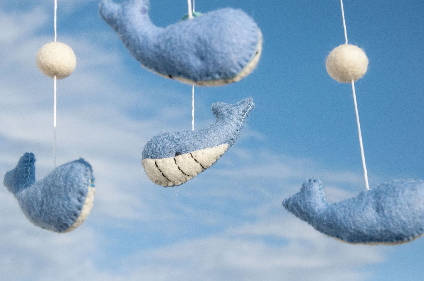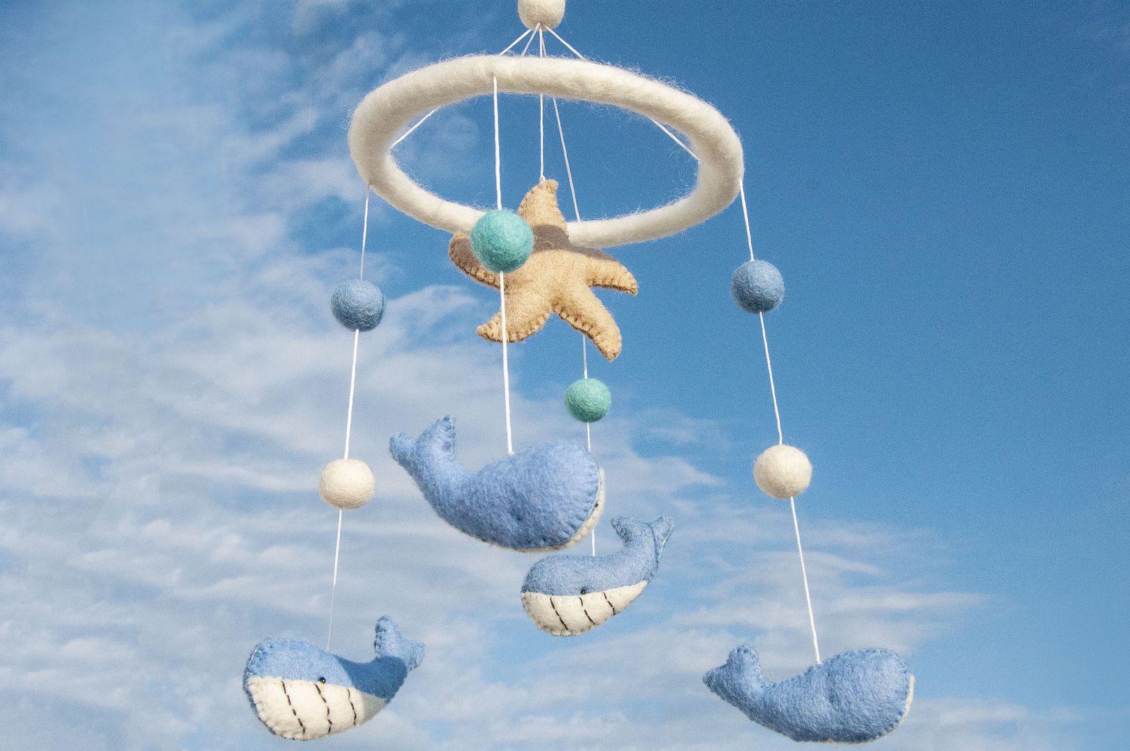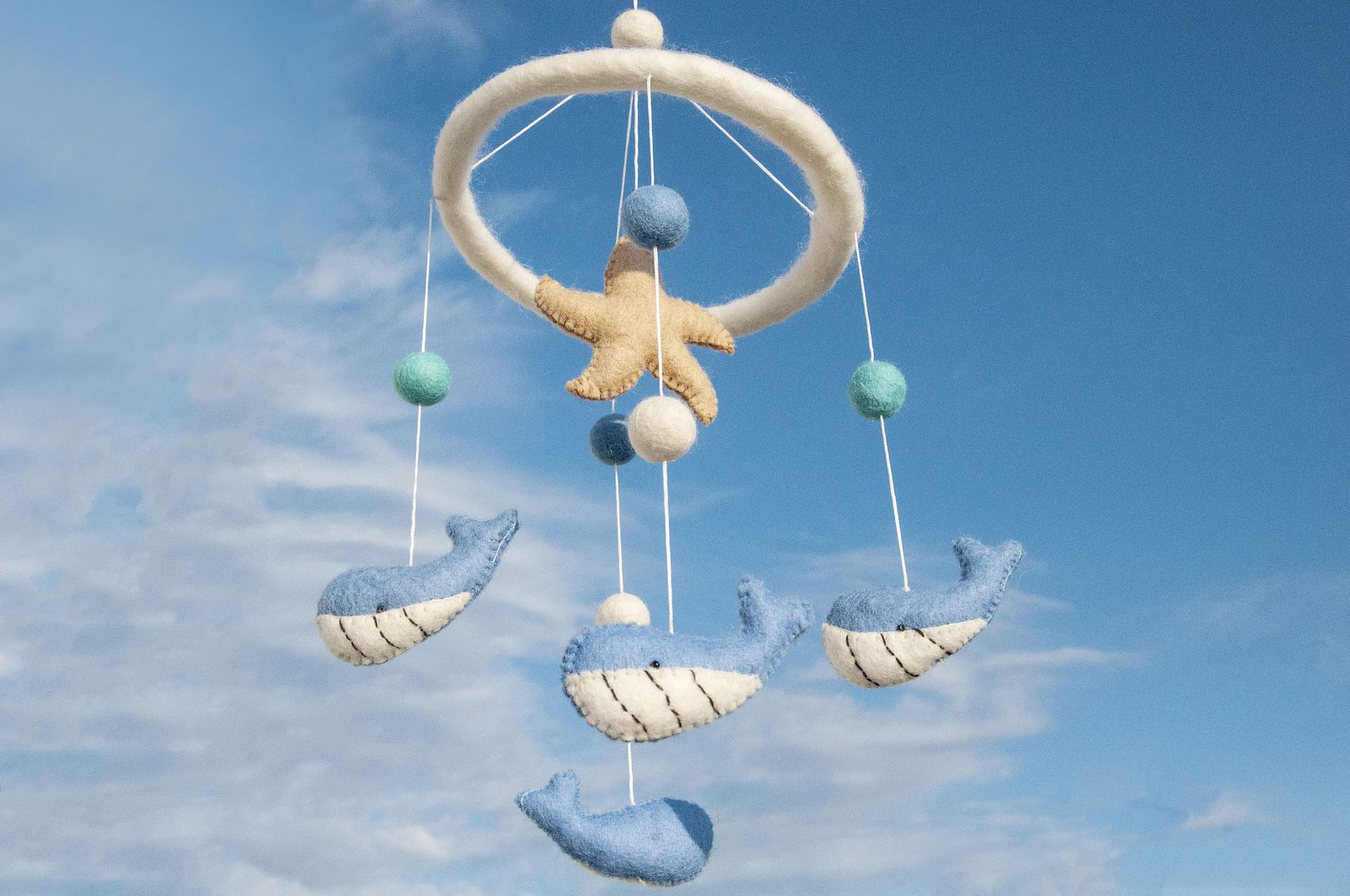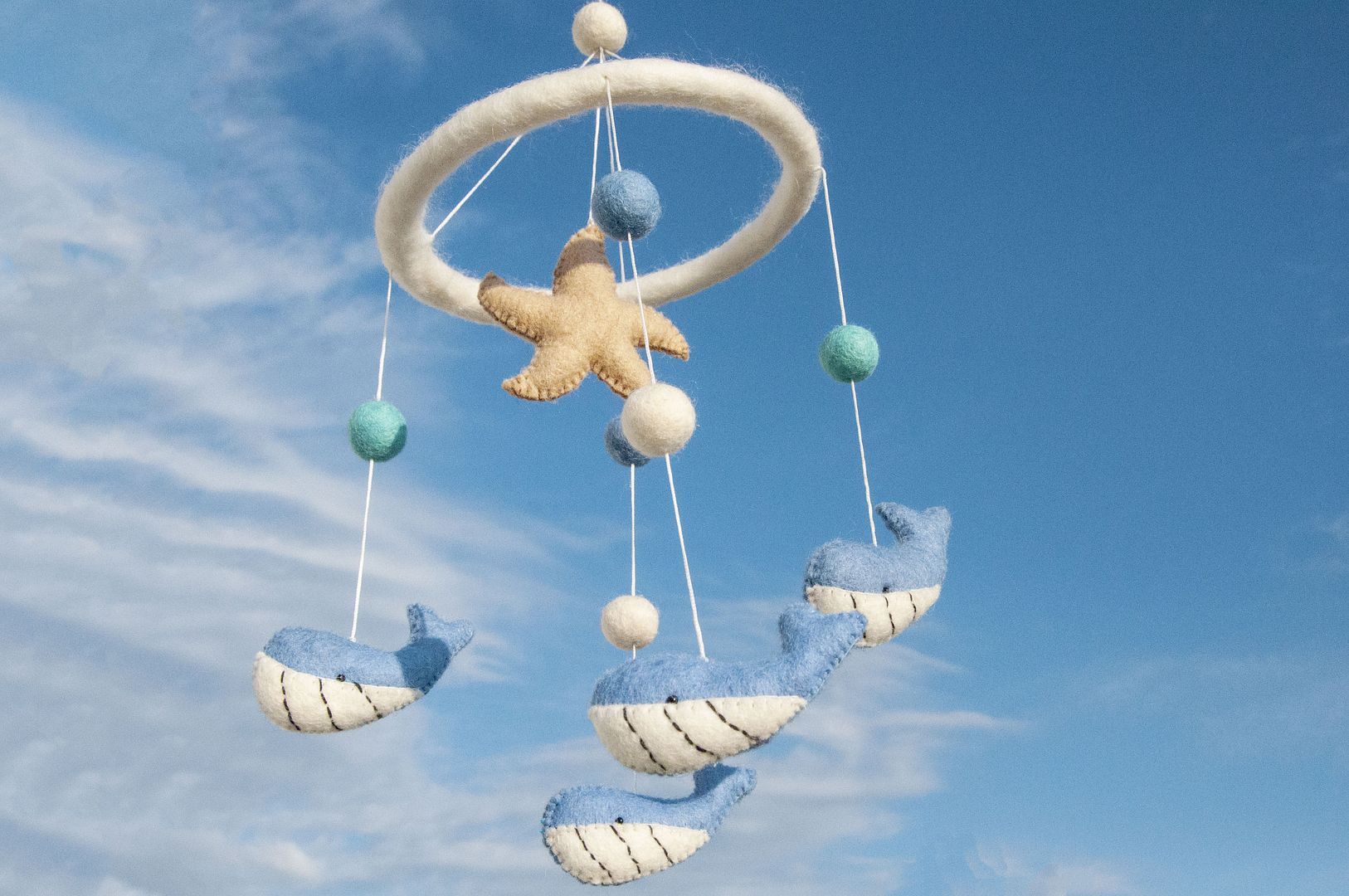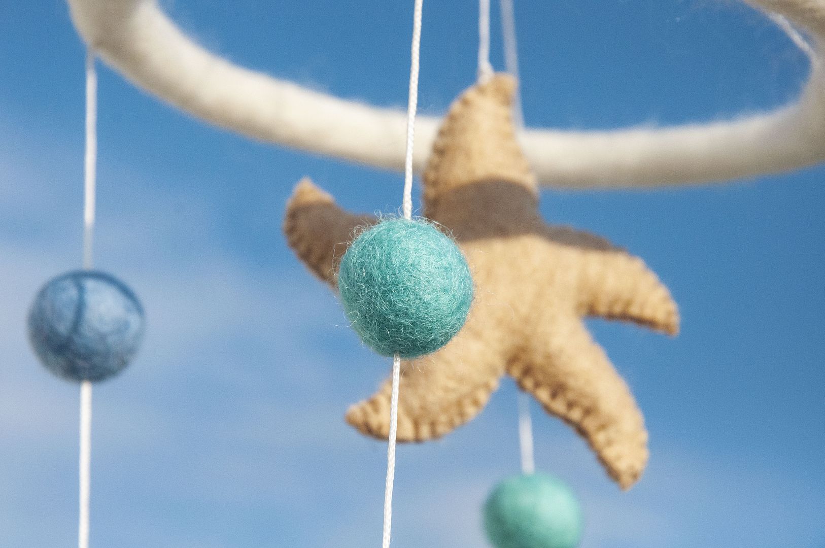 彌月禮物 手工羊毛氈吊飾/Boho嬰兒床吊飾/童房掛飾-海星鯨魚海洋