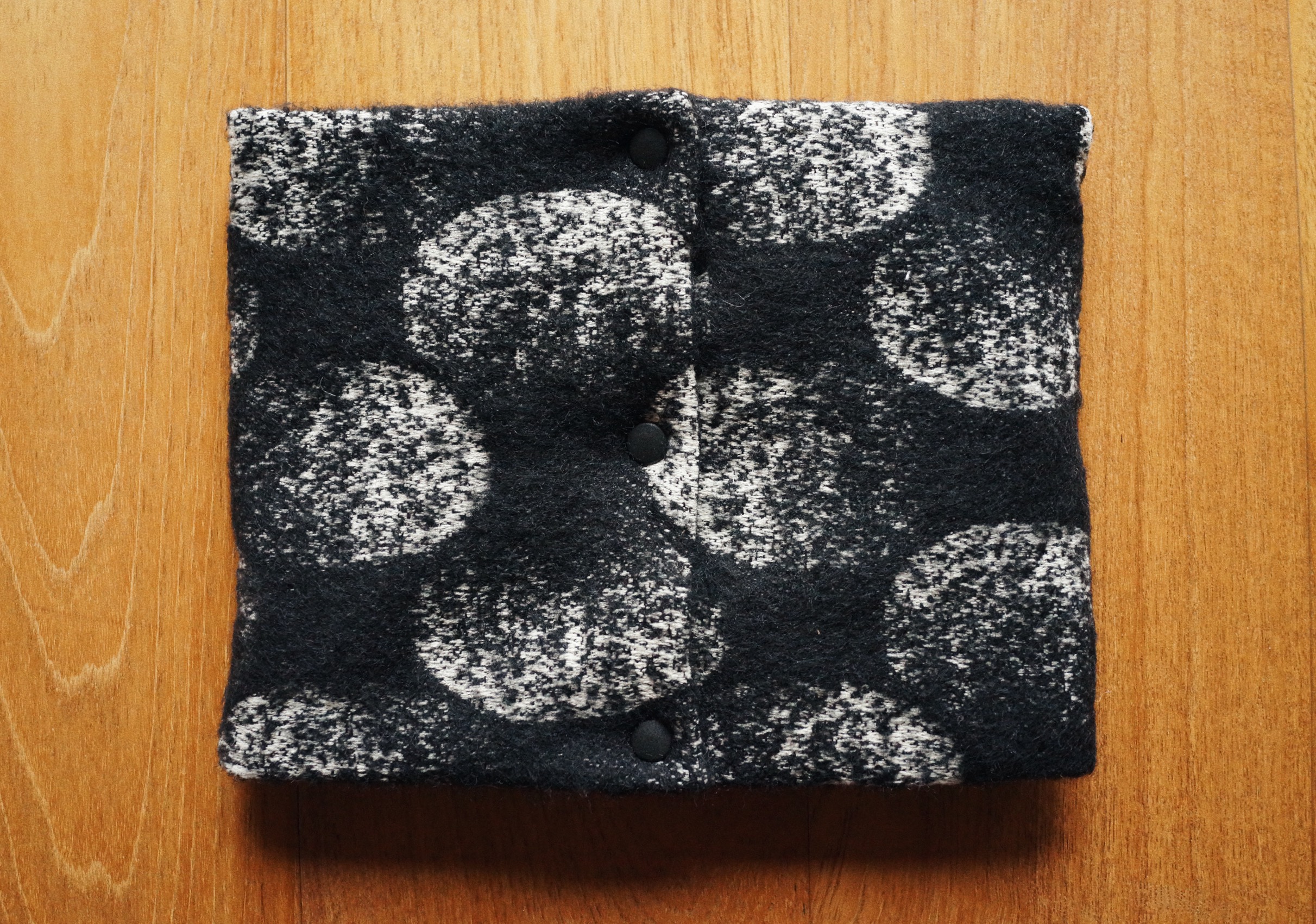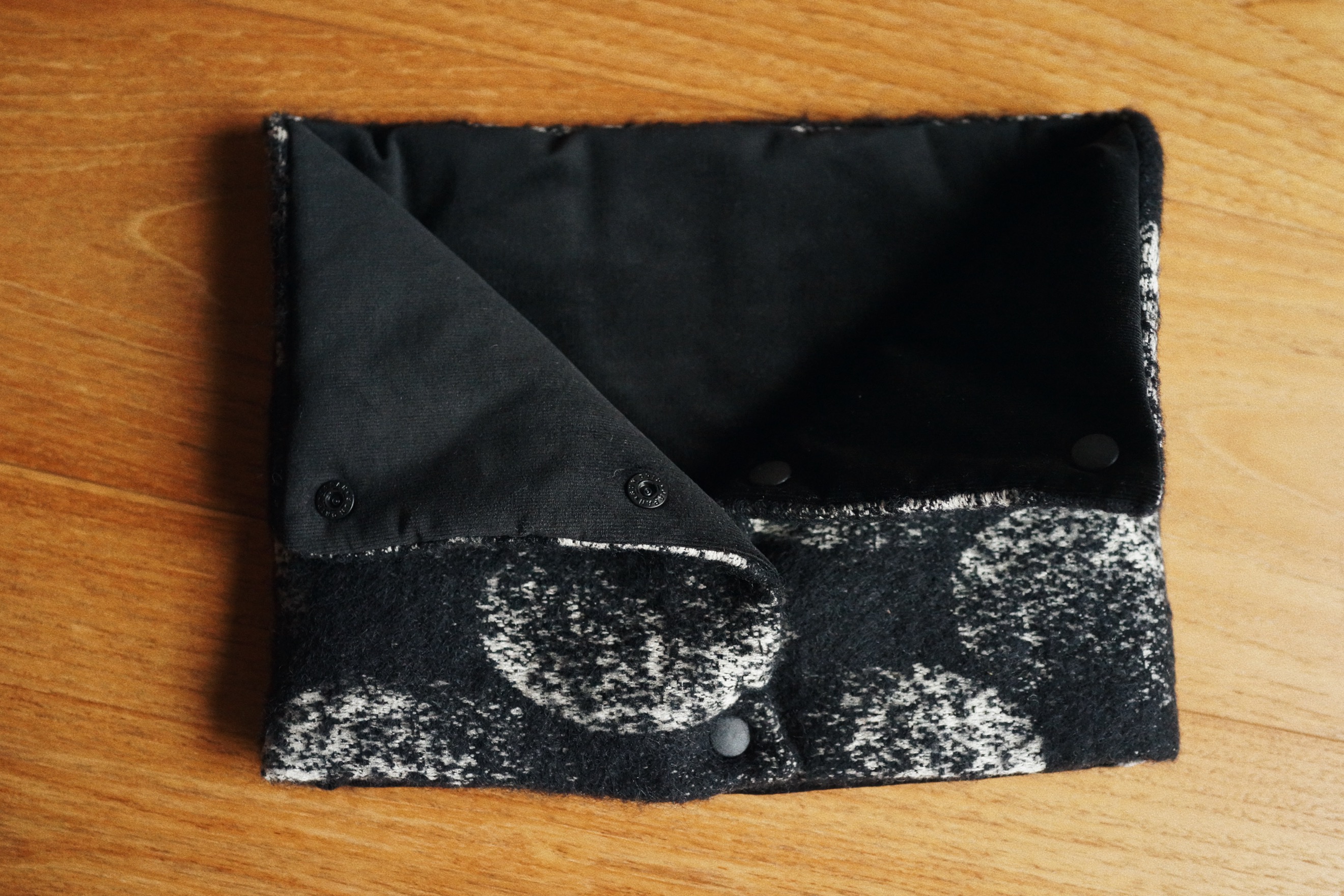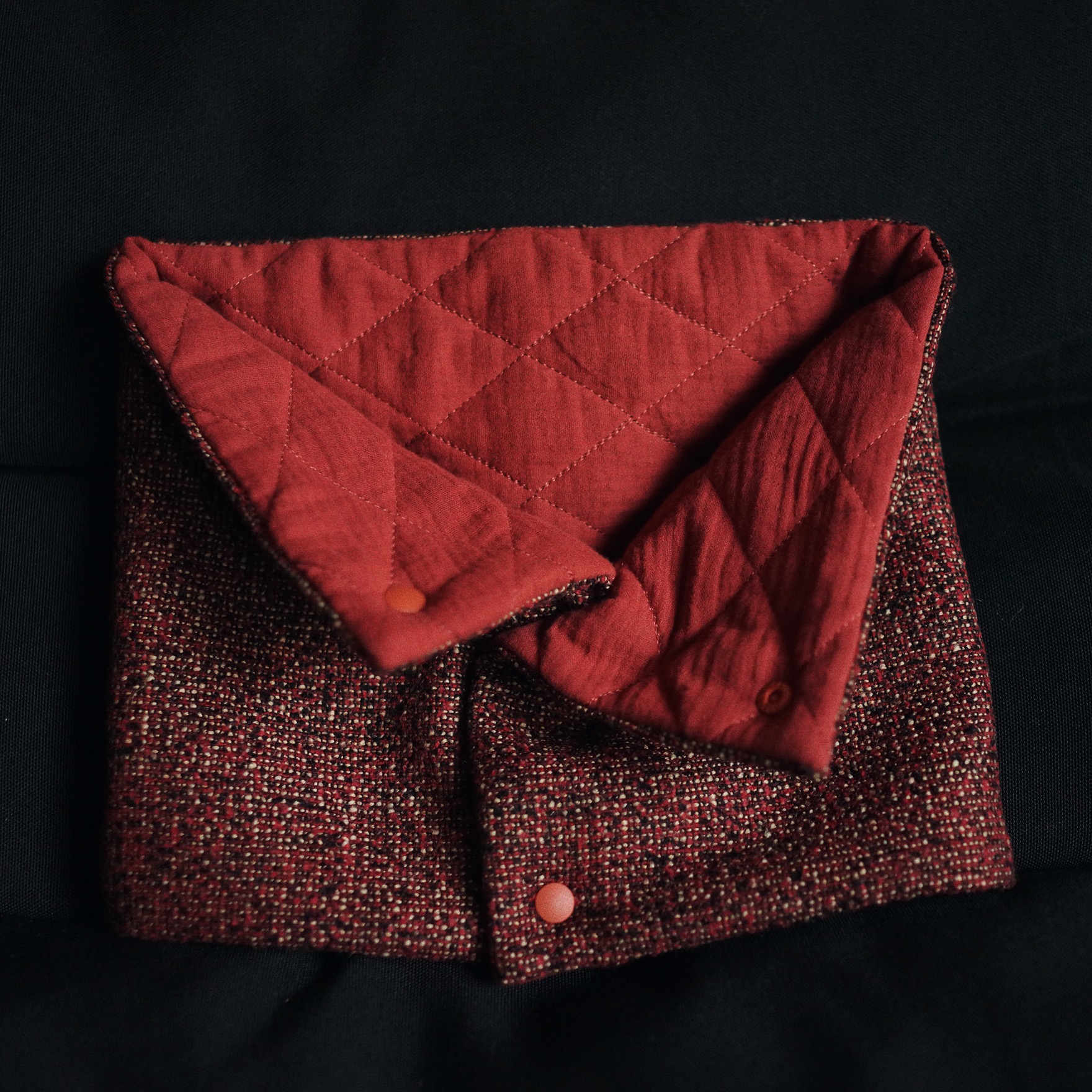 黑白漸變和紅色 保暖脖套圍巾圍脖 立體編織羊毛 夾棉拼布