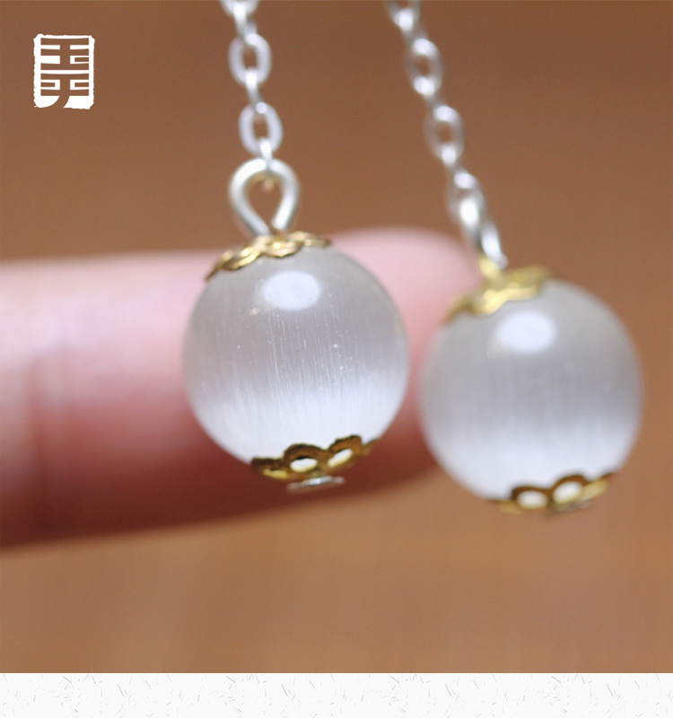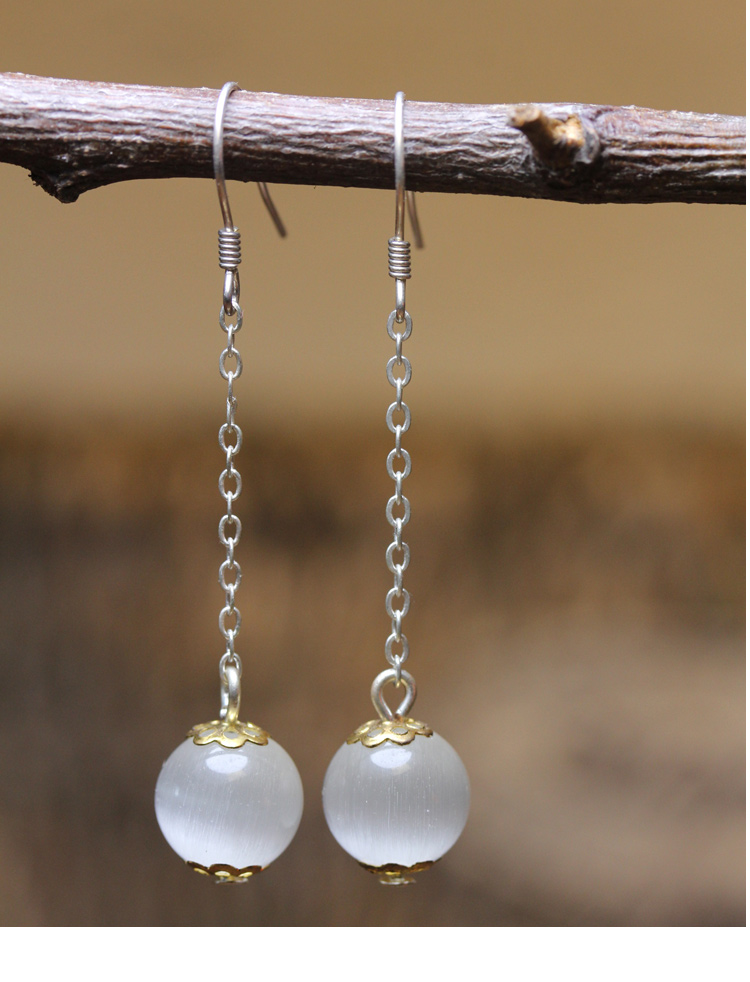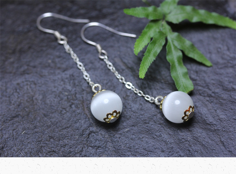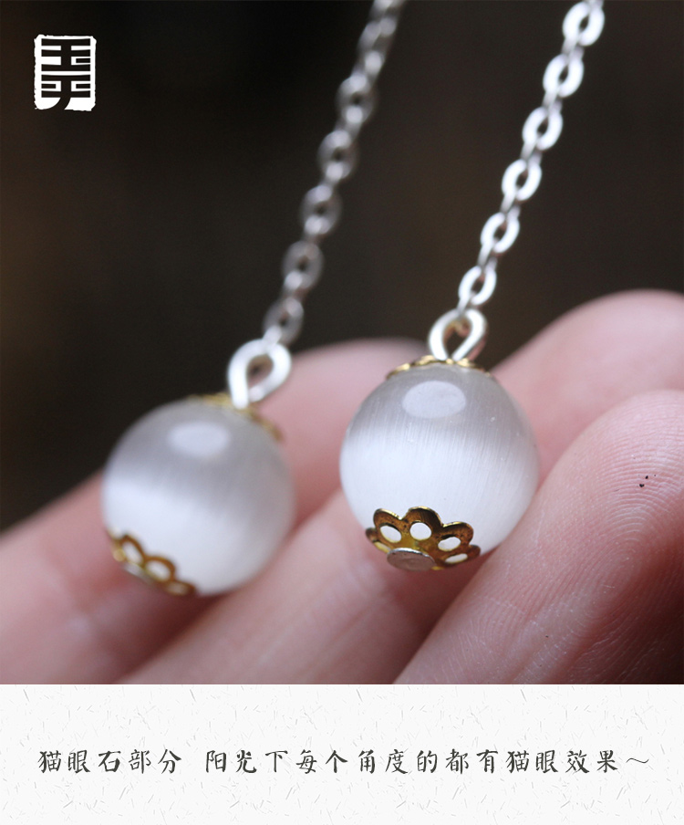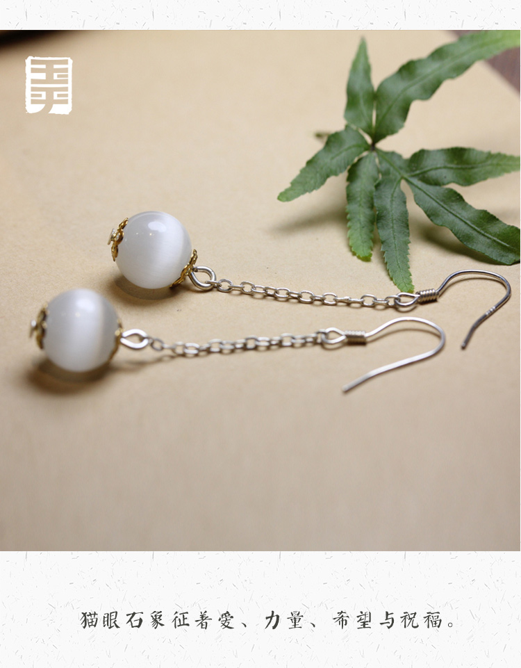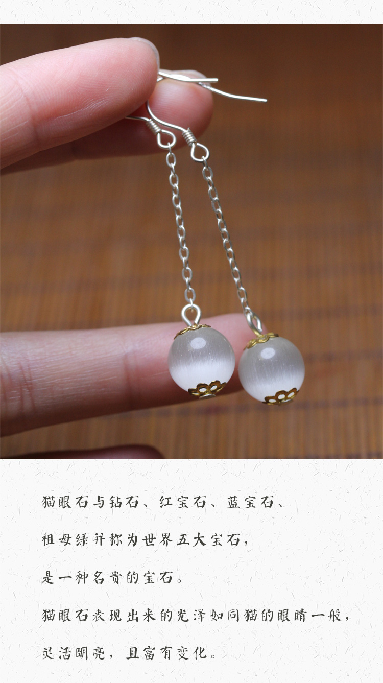 長款白貓眼石 耳環女氣質 仙女款貓眼石 簡約小巧耳墜