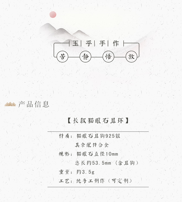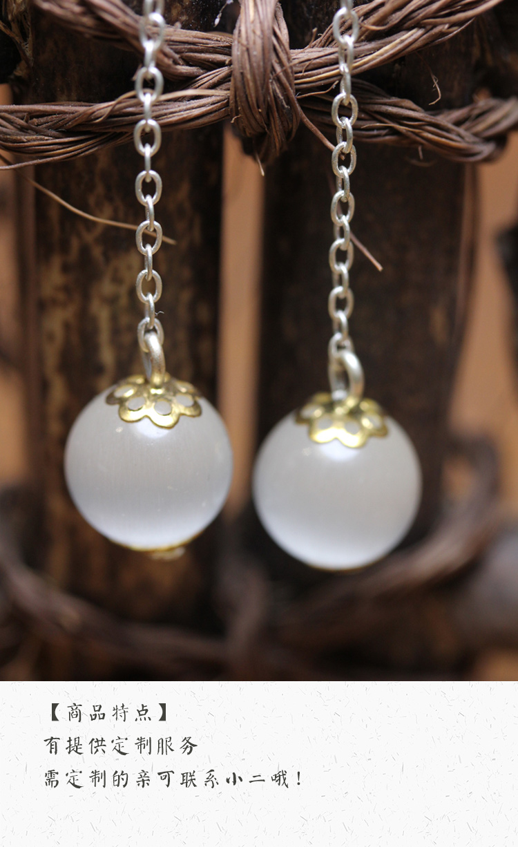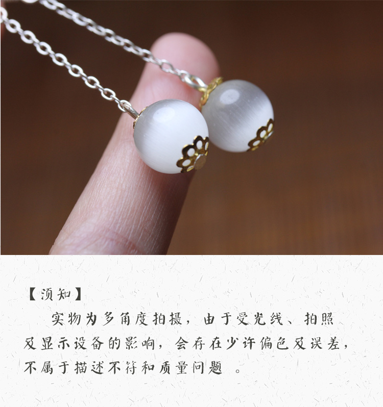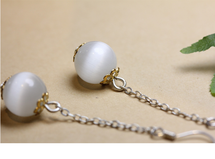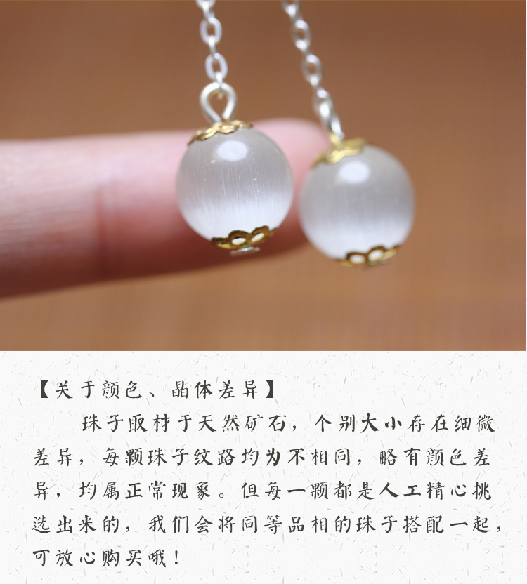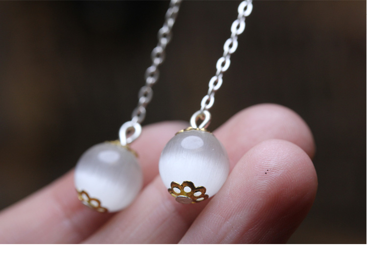長款白貓眼石 耳環女氣質 仙女款貓眼石 簡約小巧耳墜