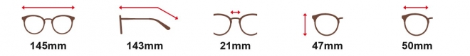 2.鏡框重量皆含原廠壓克力鏡片(平均重量約 5~7 克);如搭配客製化的光學鏡片,重量會依度數深淺、面積厚度而有些許差異。