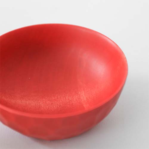 經由拭漆塗裝方式加工的木碗表面,閃耀著滑潤的漂亮光澤。由於漆這種材料在古代也會用於驅魔的儀式之中,因此也有著能夠守護孩子、避免孩子受到不良影響的意義。這種天然塗料除了對身體無害之外,更有不易劣化變質的優點,因此能讓您長久使用。根據漆料的乾燥程度不同,有時也會散發一種獨特的氣味,不過只要將物品收放在通風良好的地方這種氣味就會逐漸消散。此外,由於這項商品的材質不能直接接觸火源,也不能使用微波爐或是烤箱加熱,在利用時請務必遵照正確的使用方式,避免發生危險。
