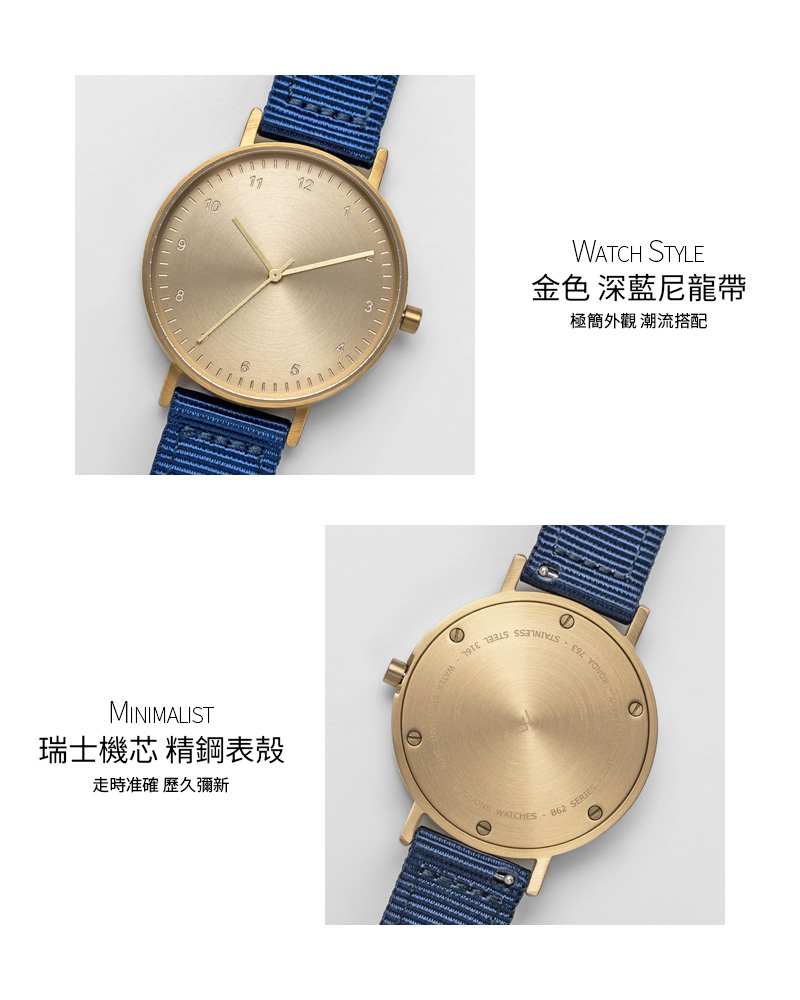 BIJOUONE彼樹灣 B60系列尼龍表帶極簡設計男女款瑞士機芯精鋼手錶