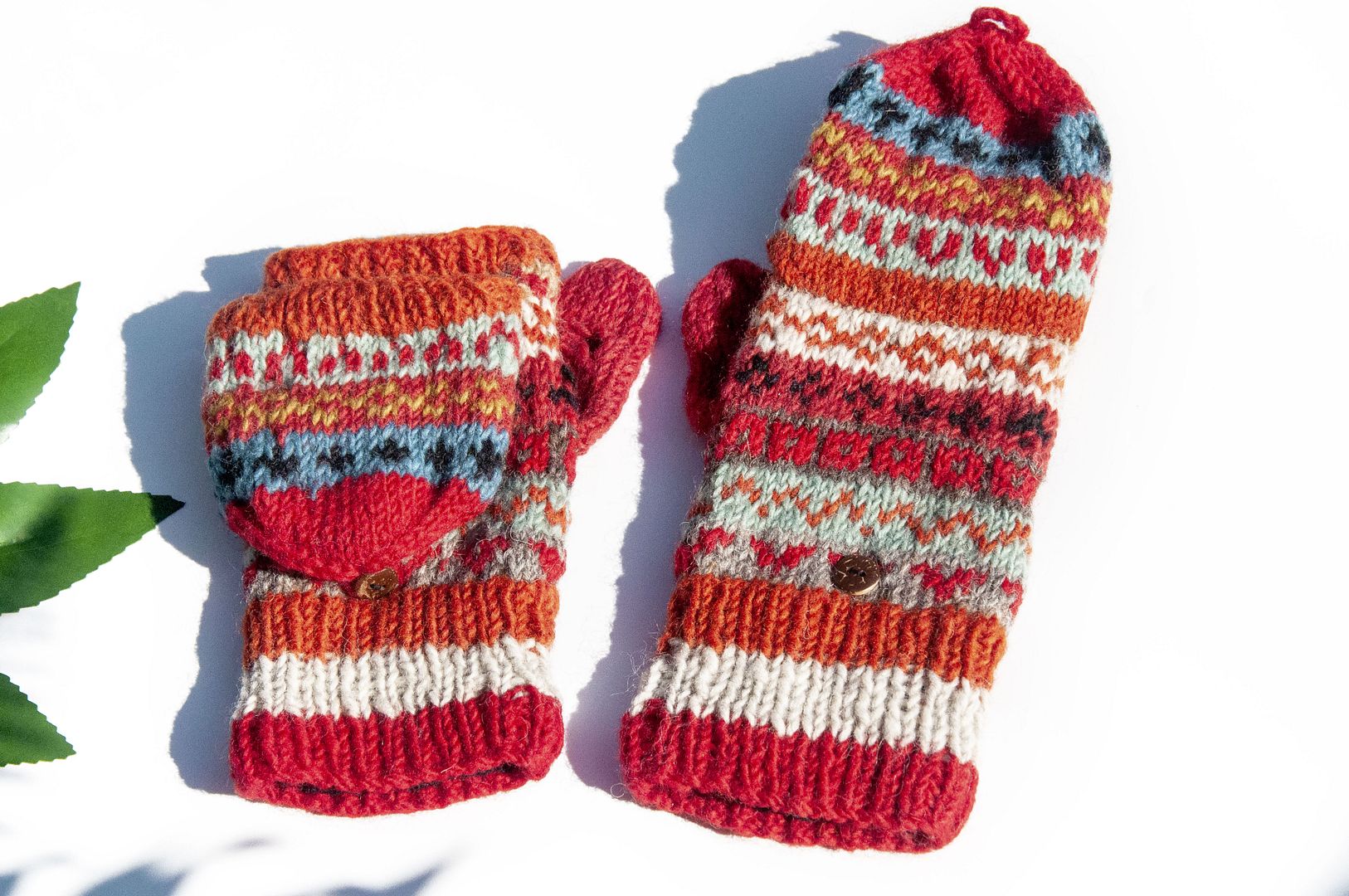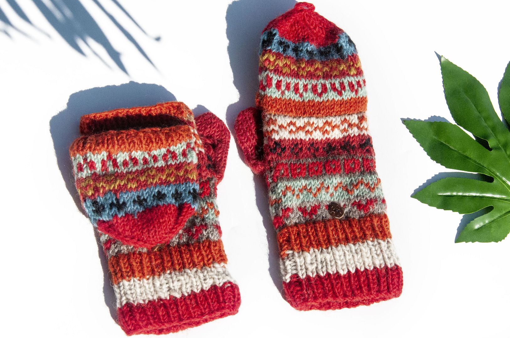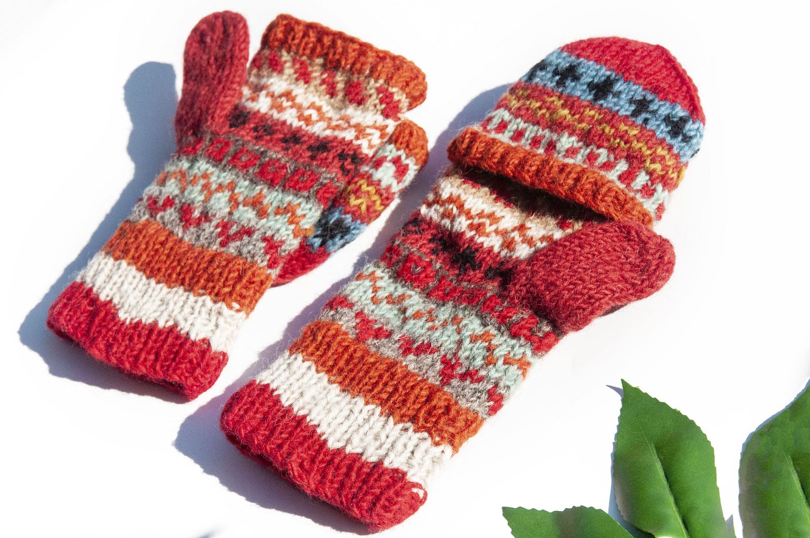 手織純羊毛針織手套/可拆卸保暖手套/內刷毛手套/觸控手套-夕陽