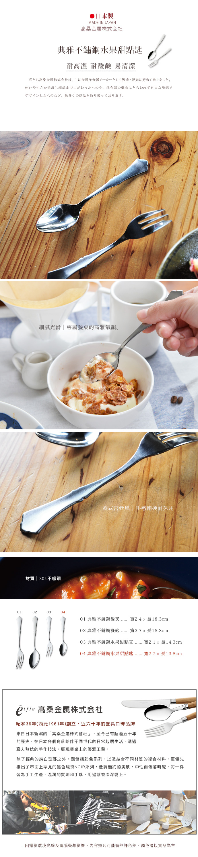 日本高桑金屬 日製典雅不鏽鋼水果甜點匙-4入