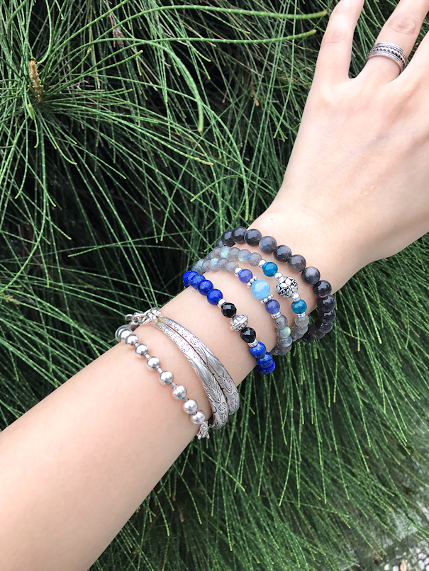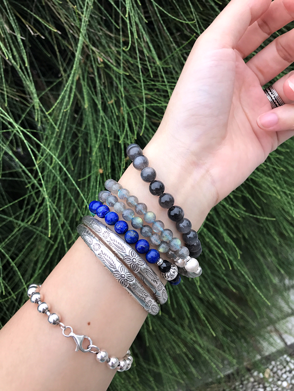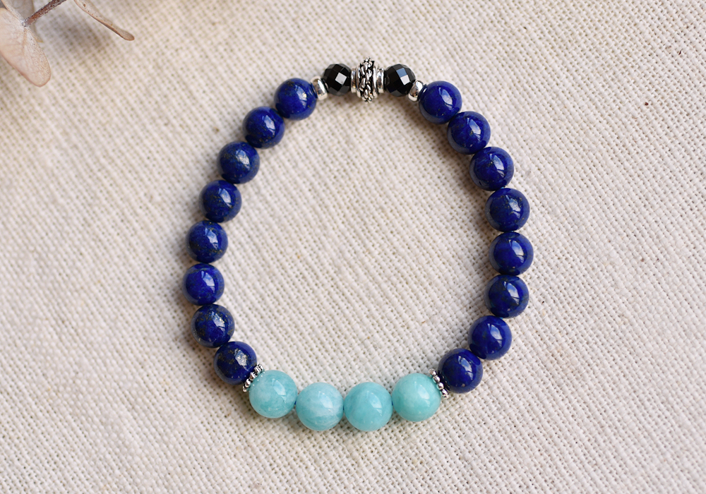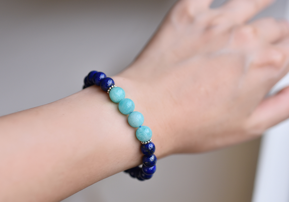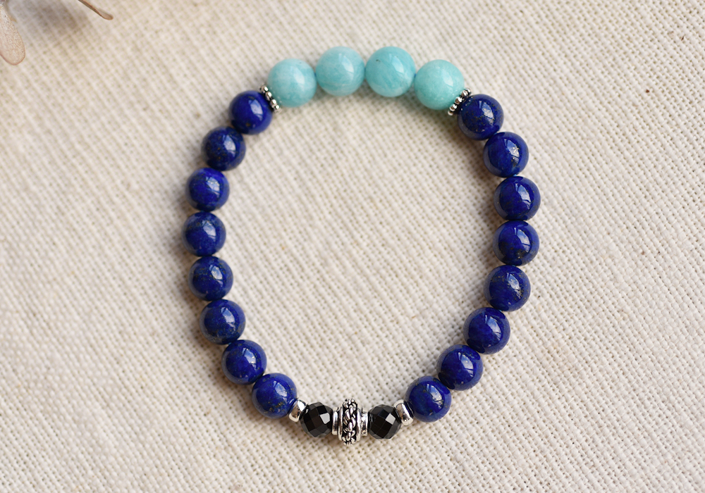 這款手鍊的青金石色澤很美,藍的濃豔飽滿,帶有少許的白斑跟金點