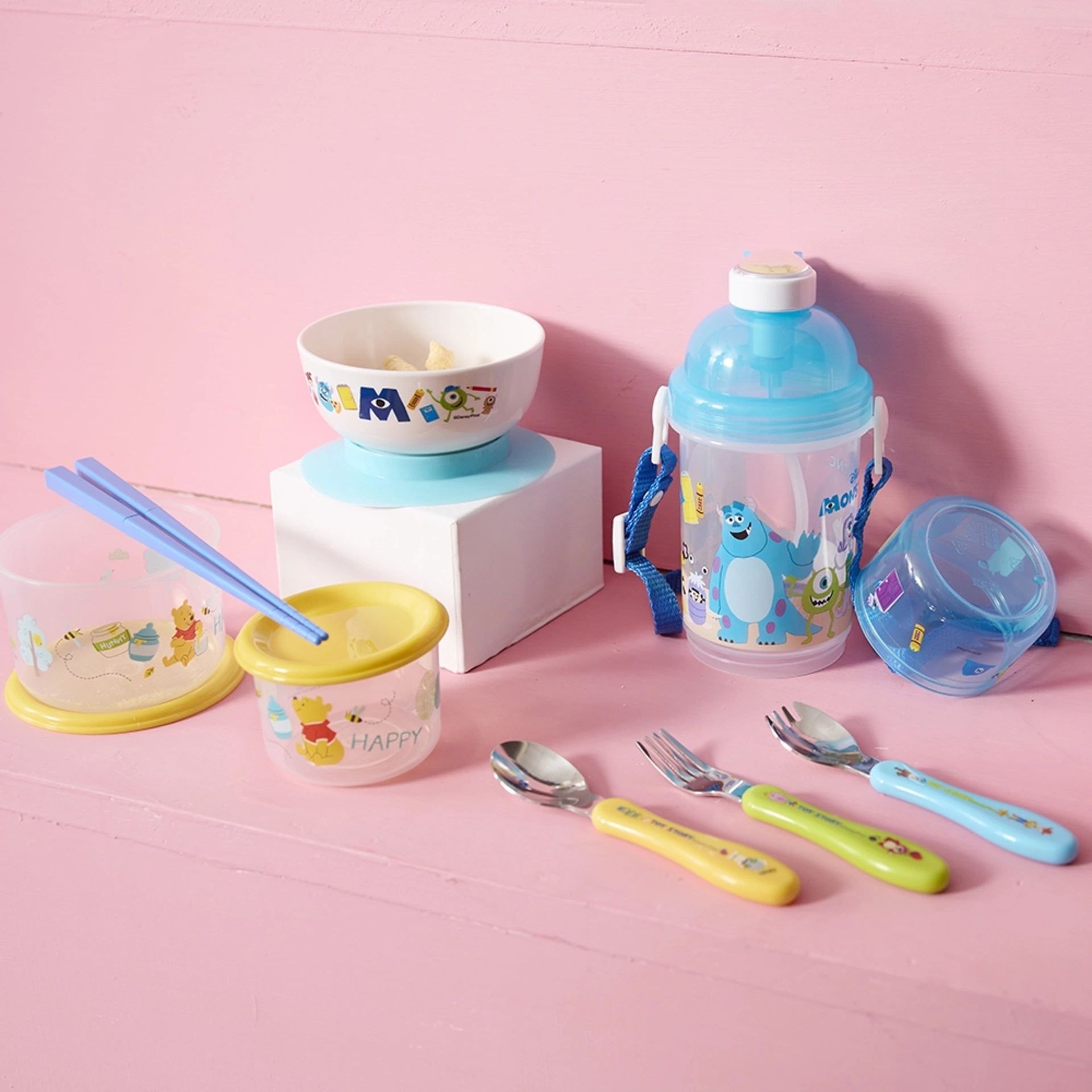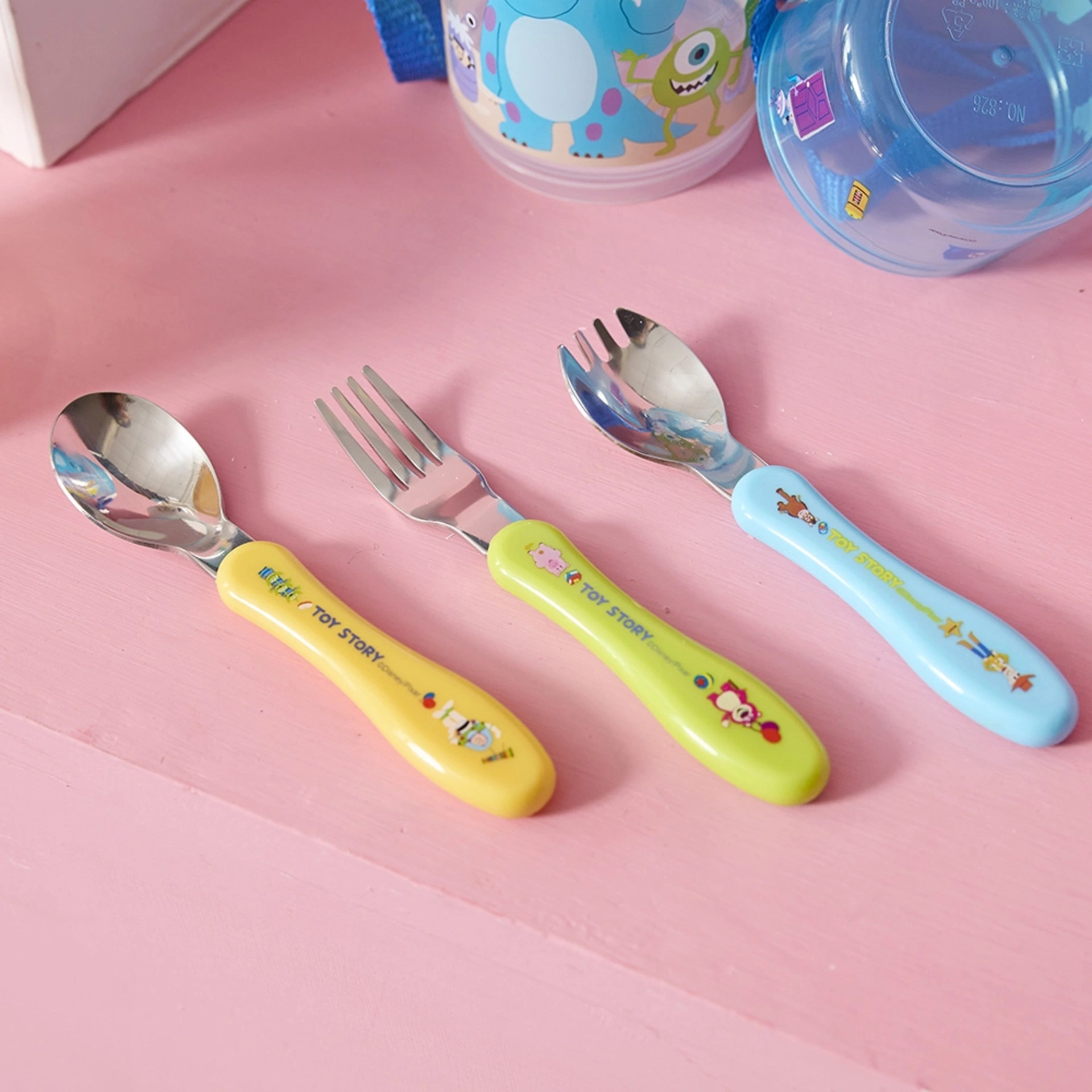 玩具總動員造型設計,讓動畫角色陪伴寶寶用餐時光,增加寶寶自主學習用餐動機。