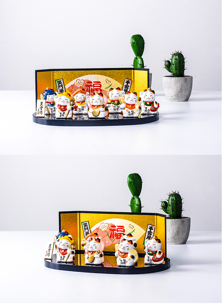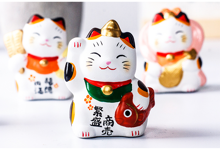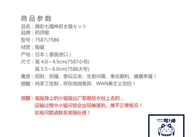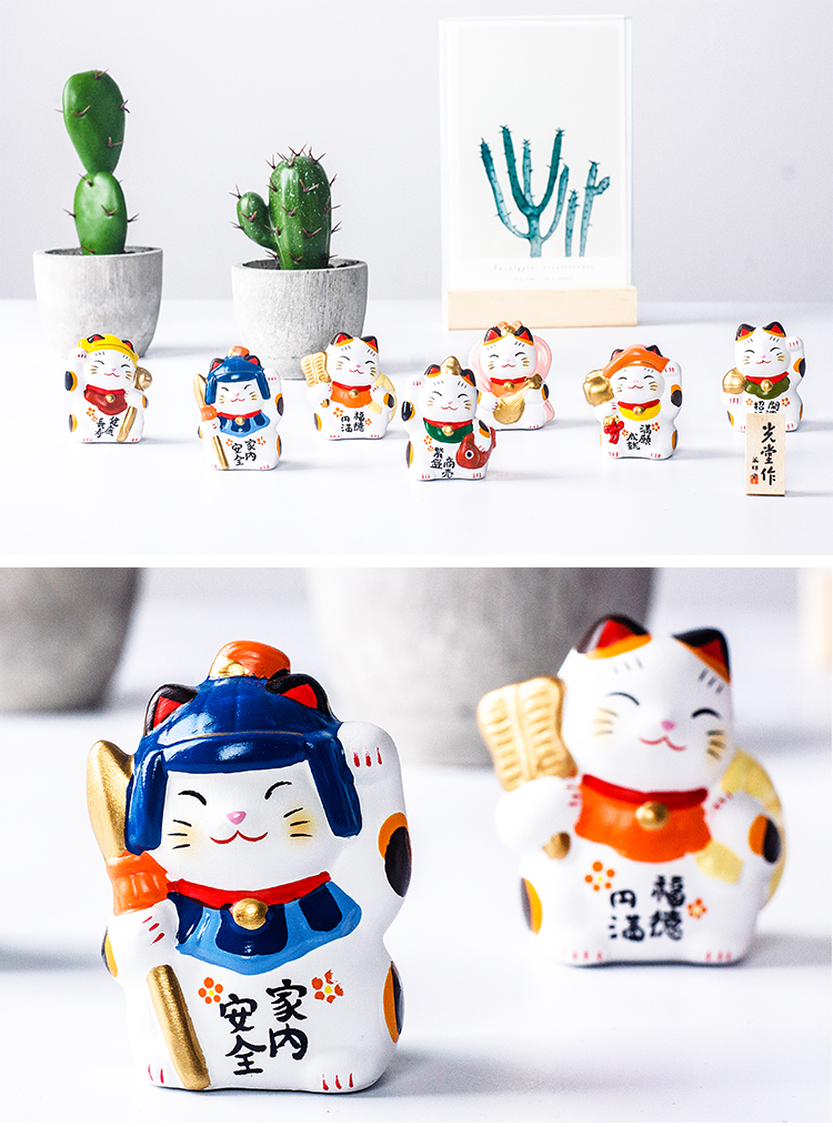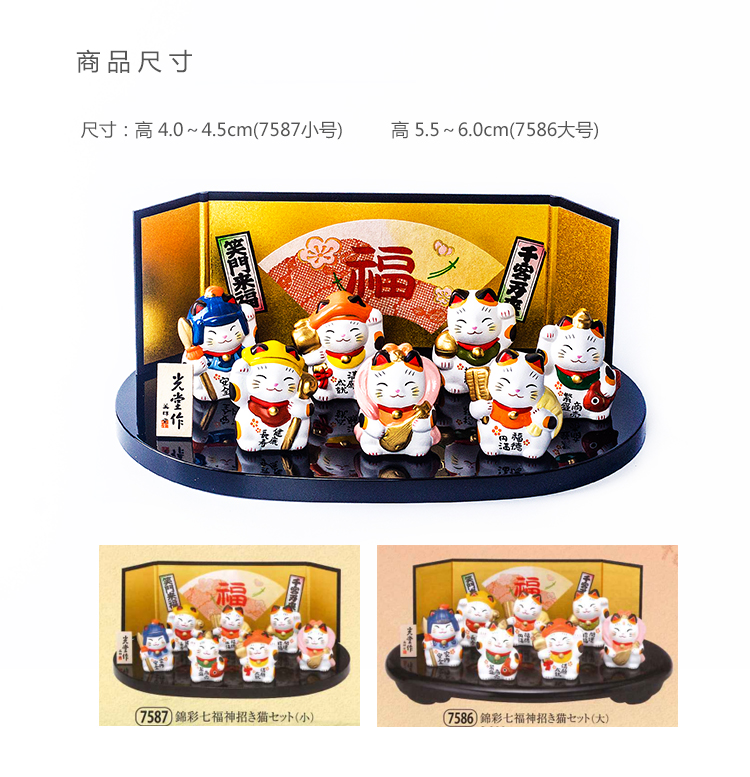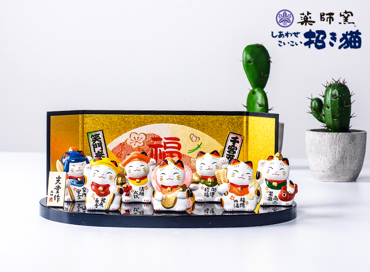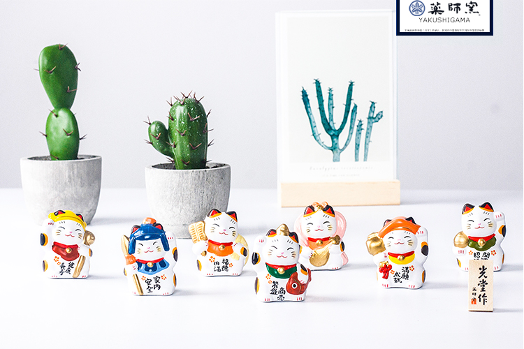 日本藥師窯錦彩七福神招財貓擺件 生日結婚禮物開業 車載原裝進口
