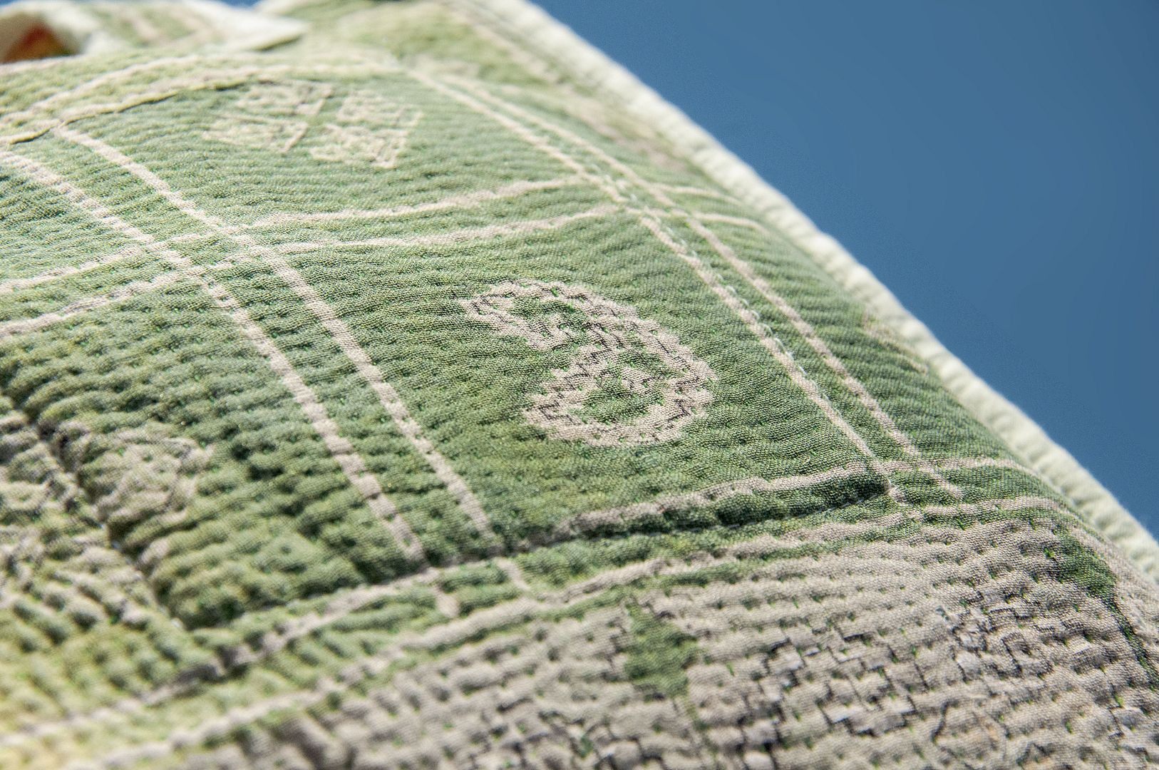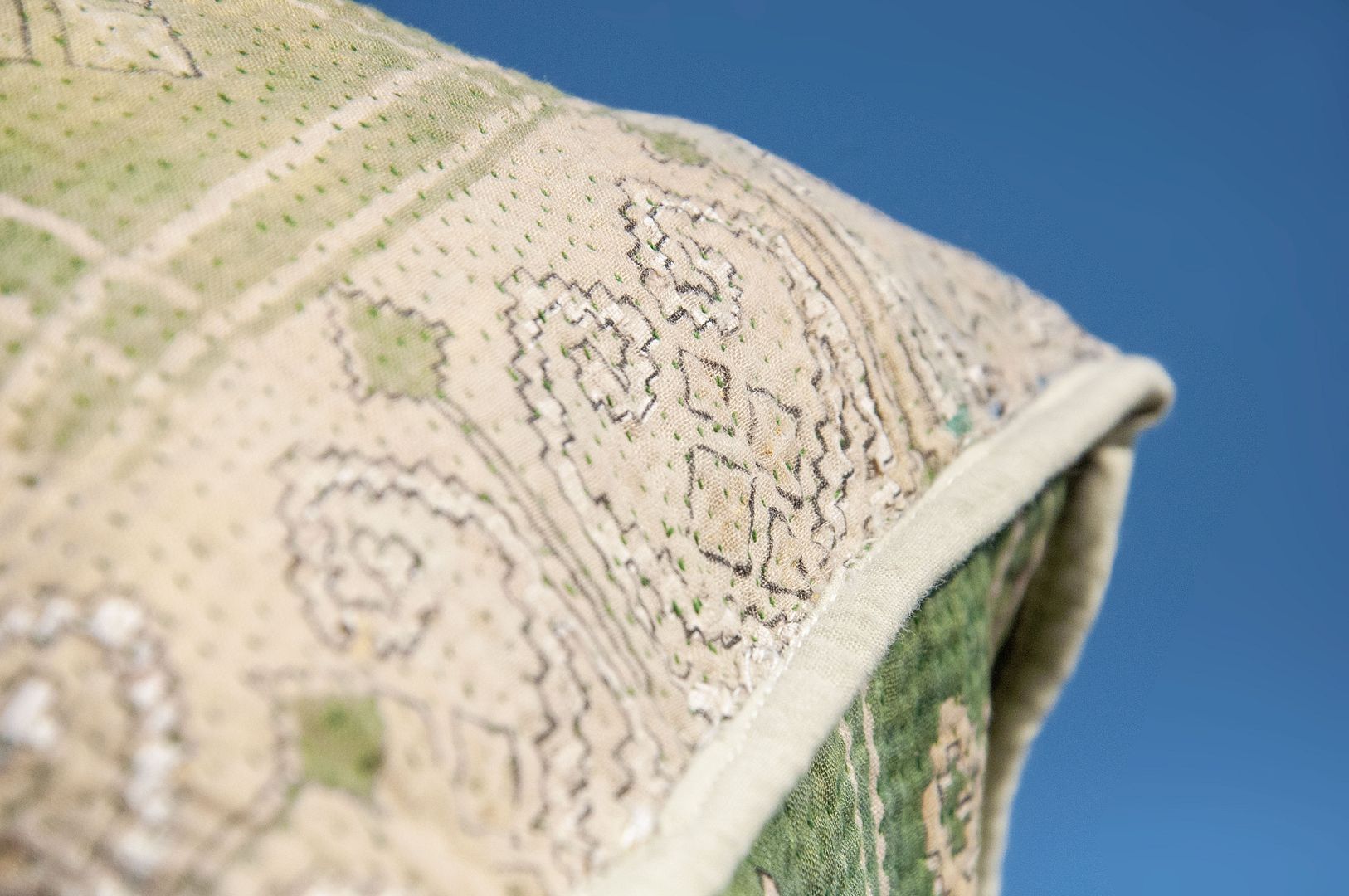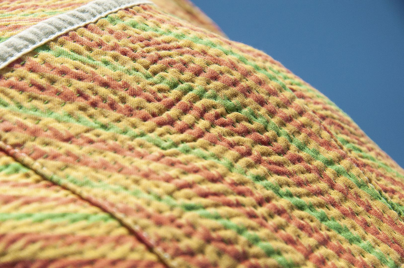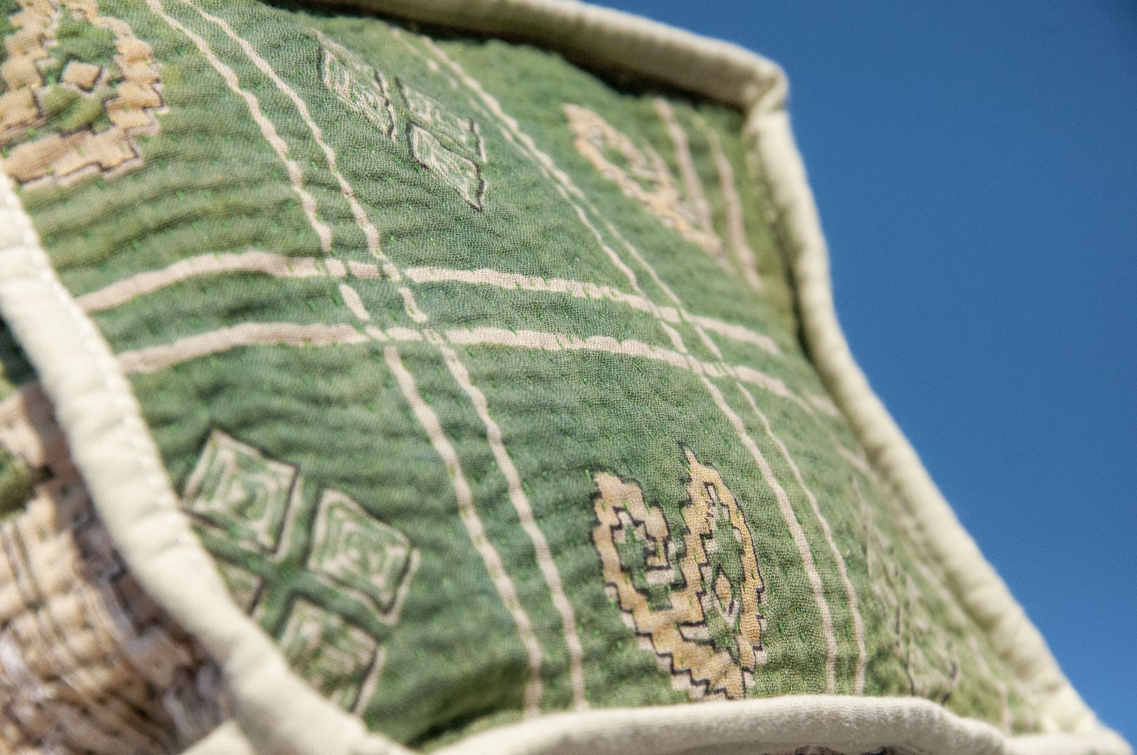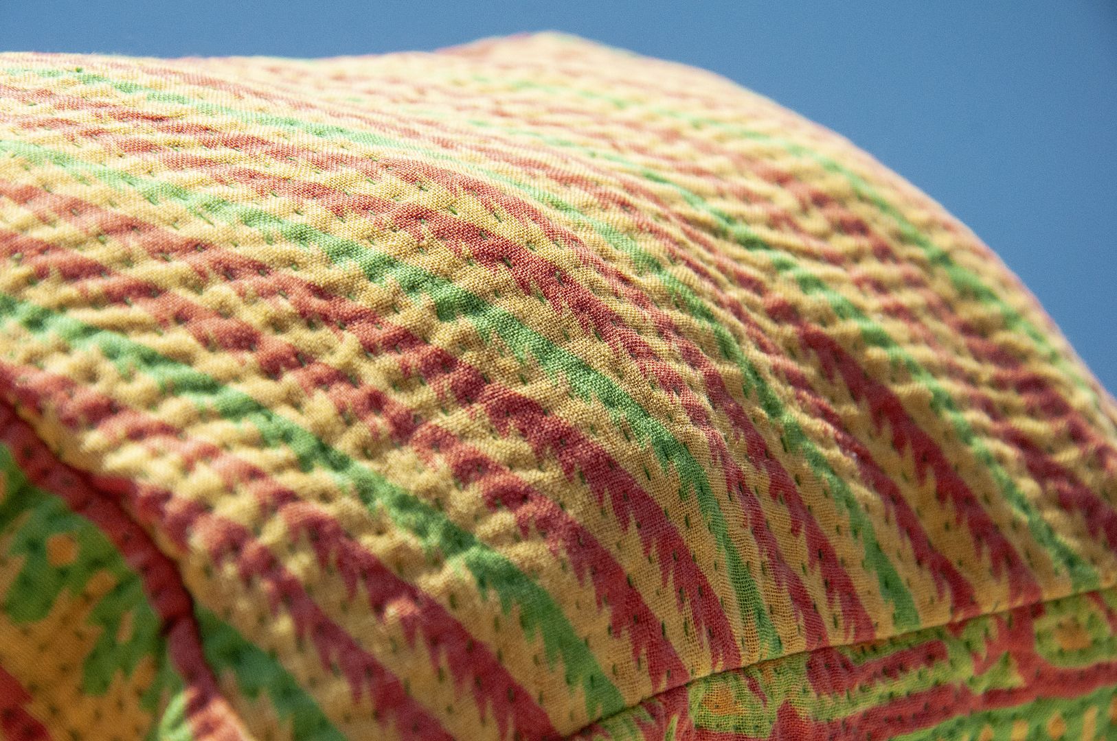 ▲來自印度沙漠地區的gudri刺繡工法,嚴選印度回收紗麗布+棉線刺繡