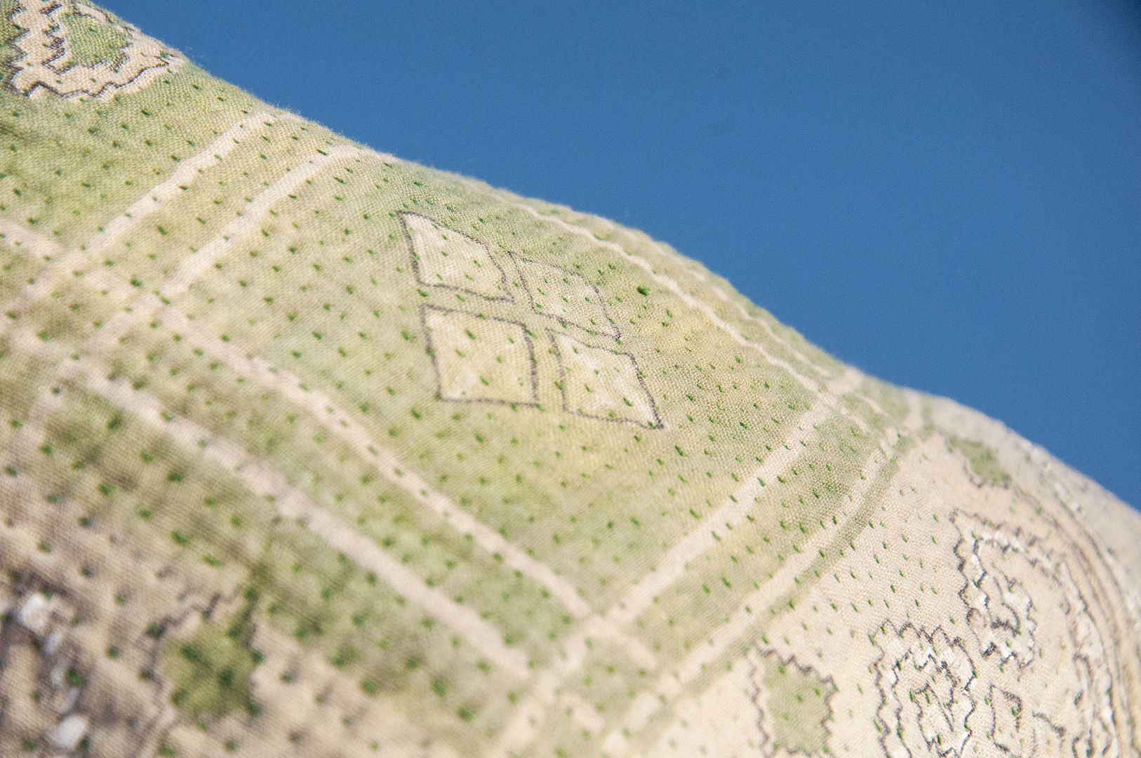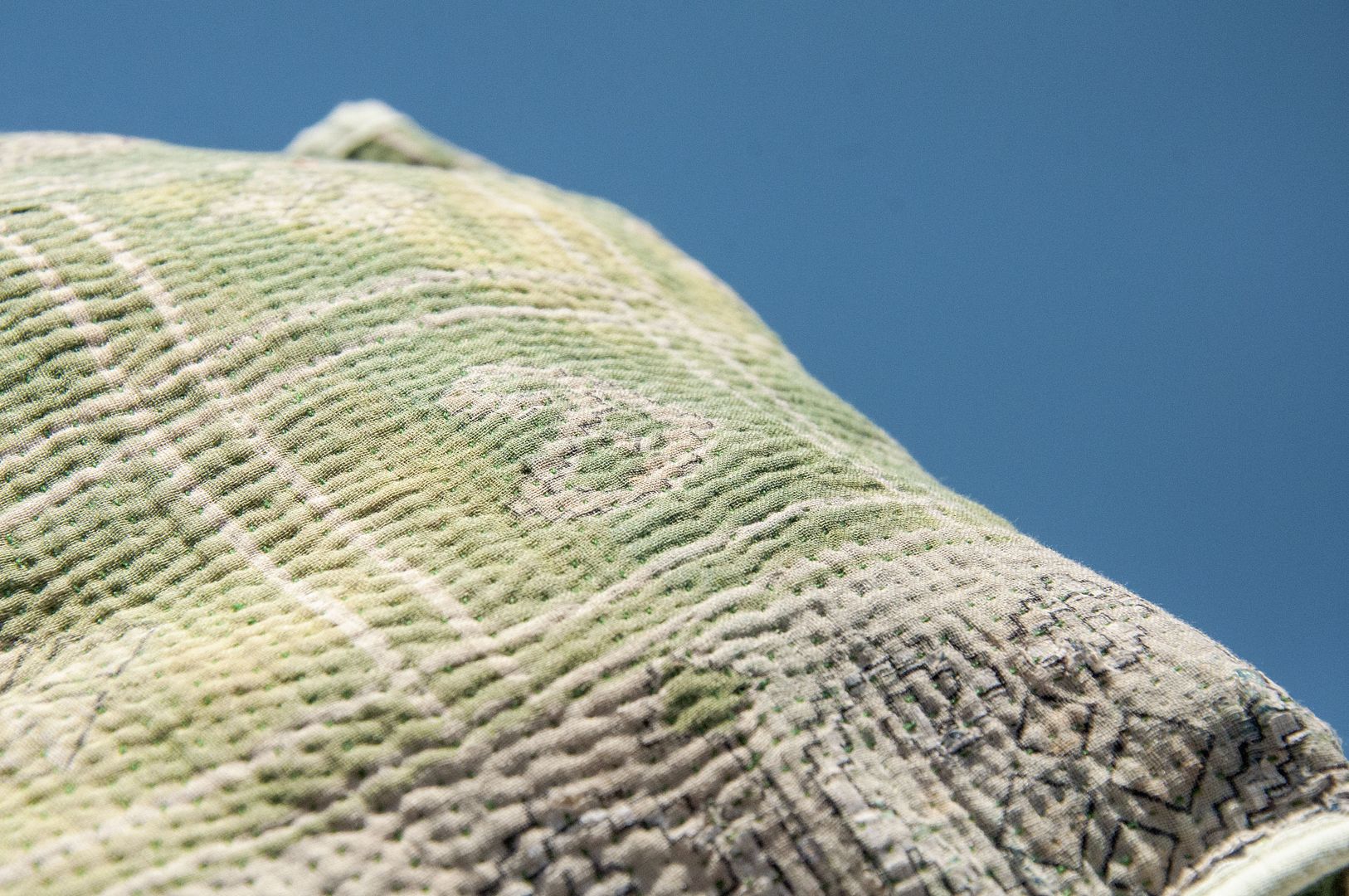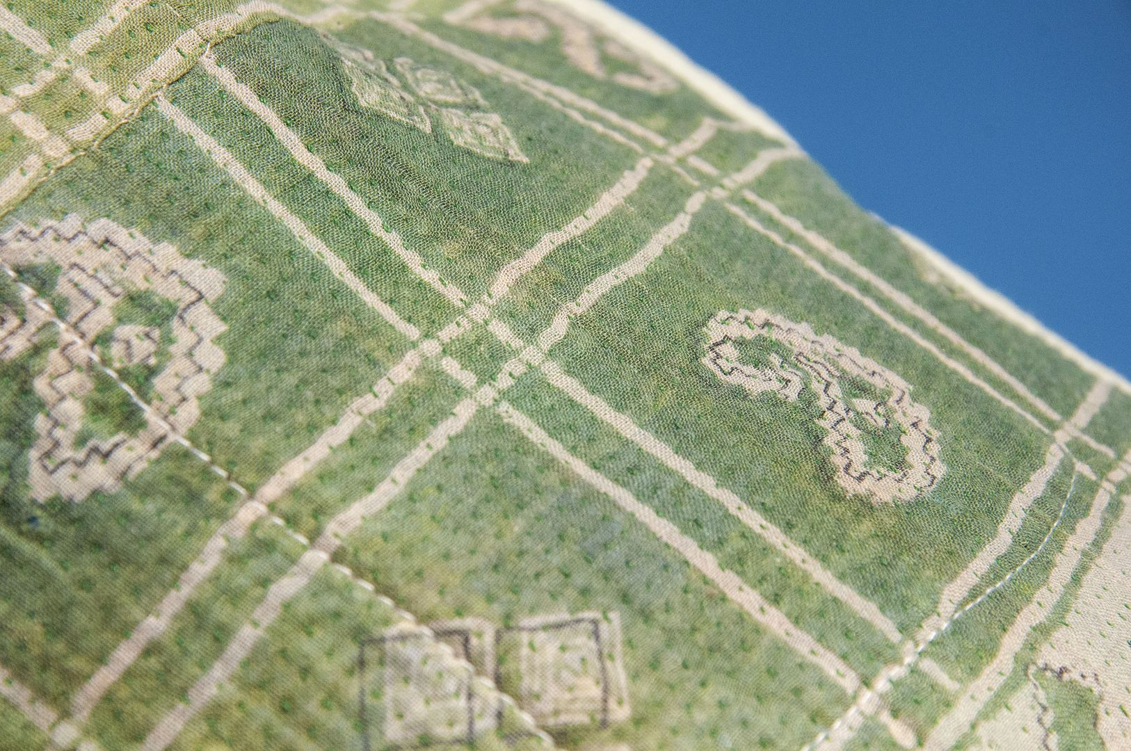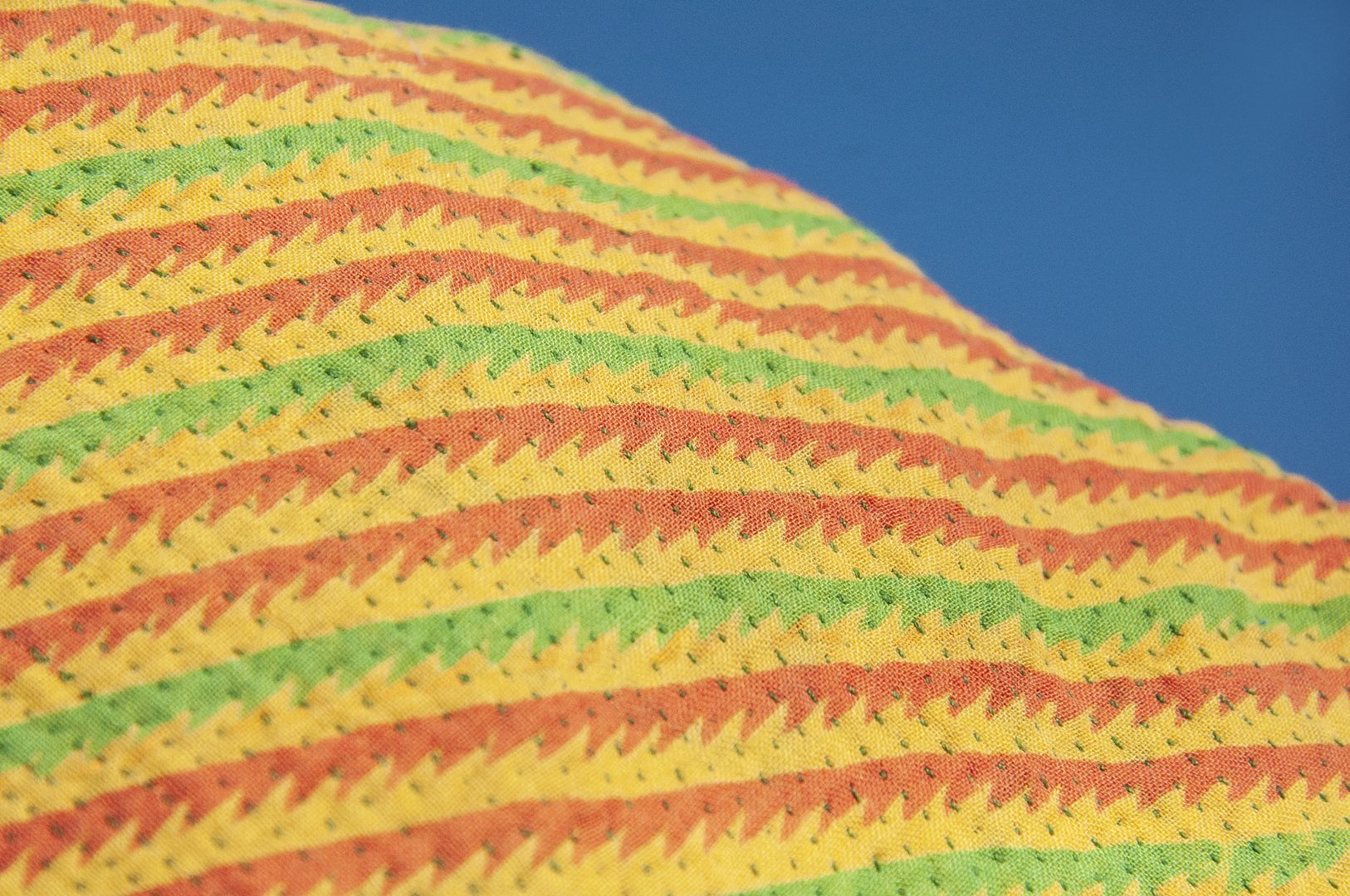 ▲來自印度沙漠地區的gudri刺繡工法,嚴選印度回收紗麗布+棉線刺繡
