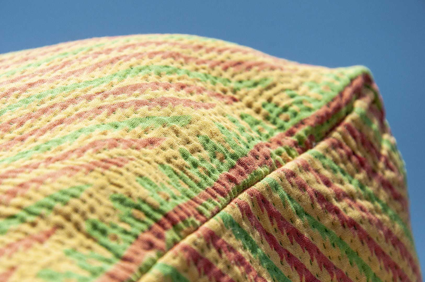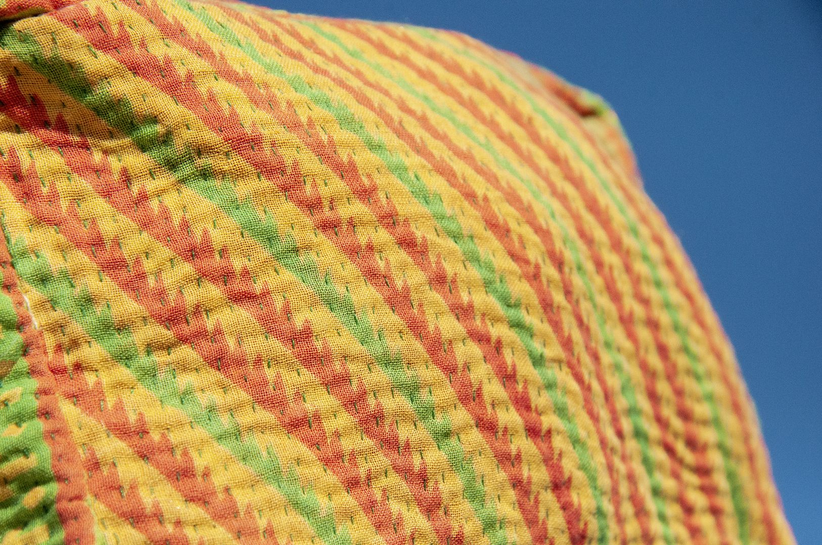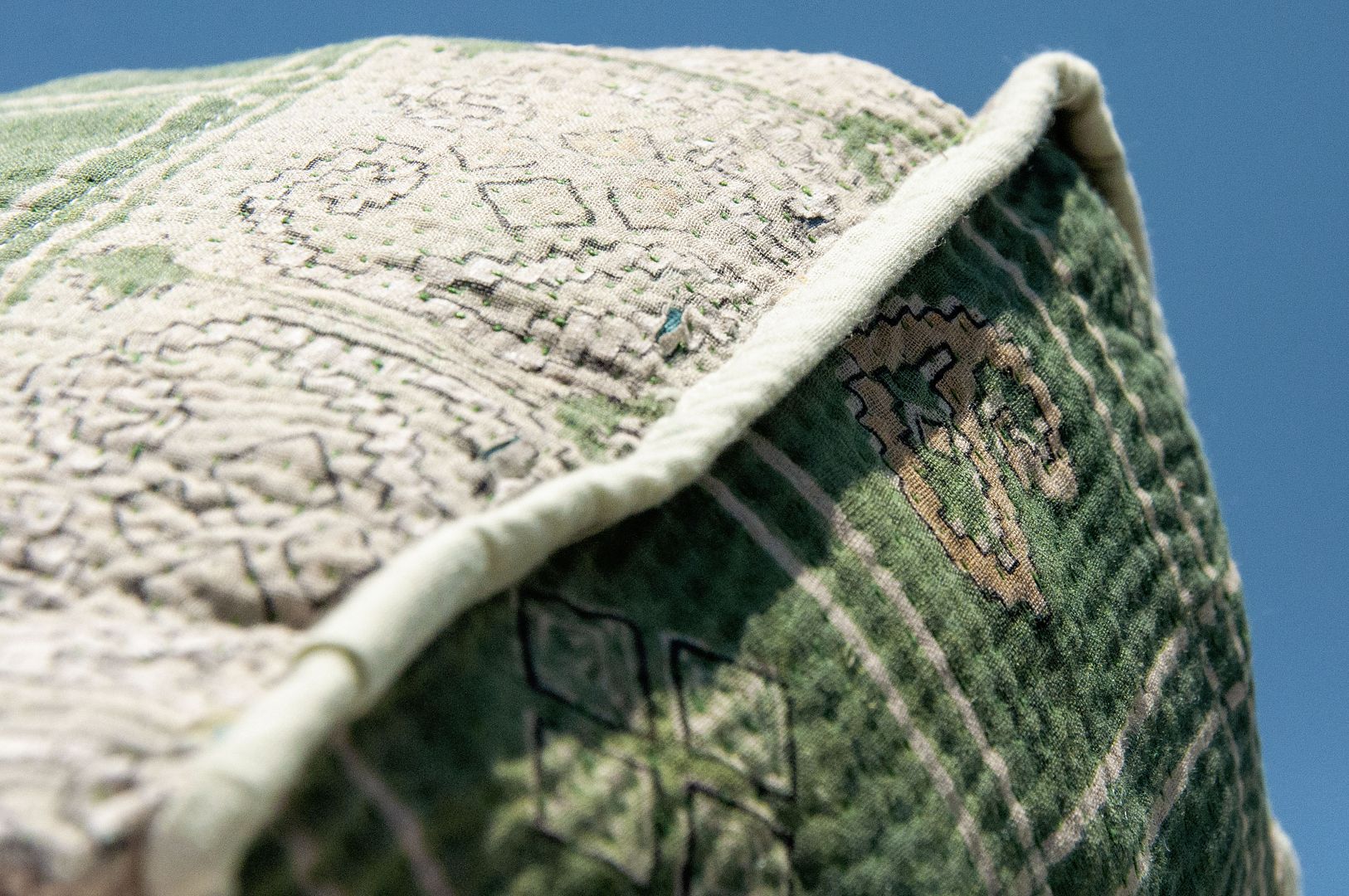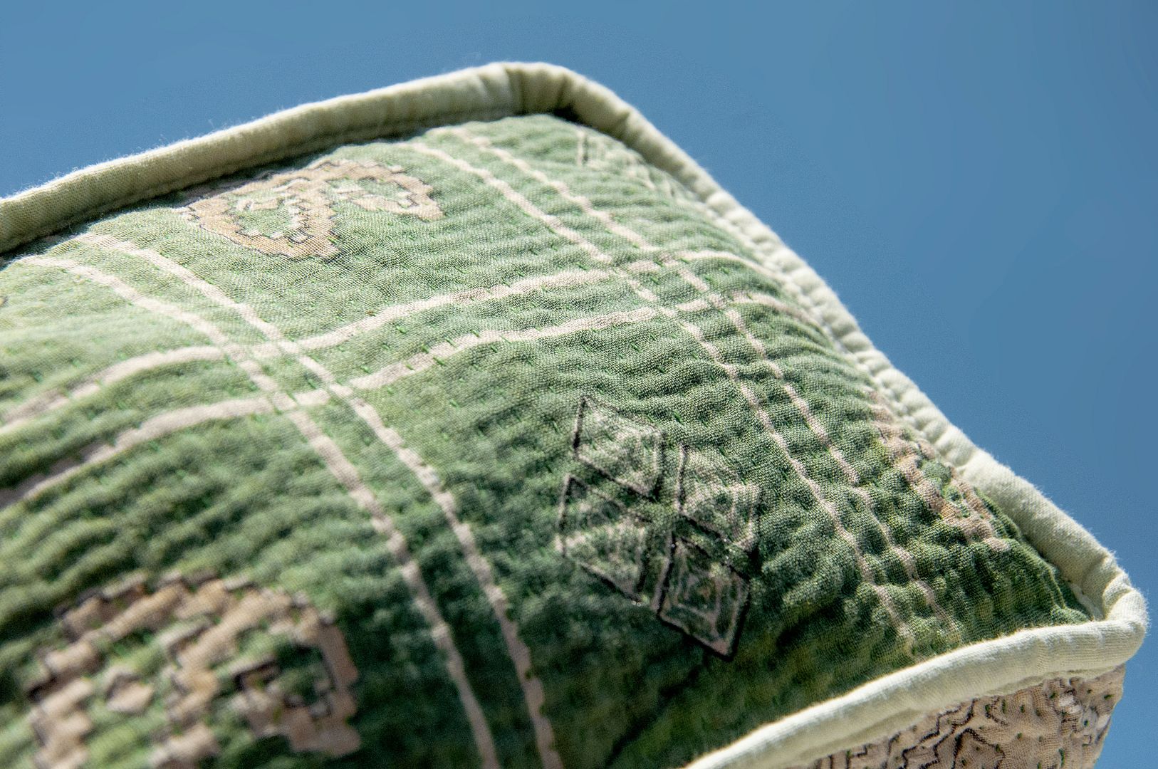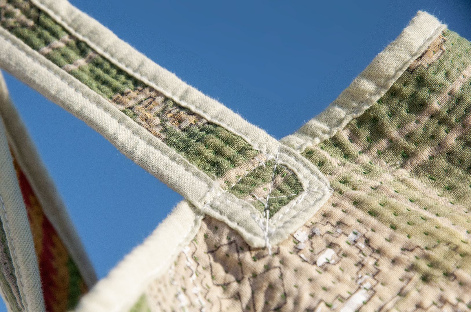 ▲來自印度沙漠地區的gudri刺繡工法,嚴選印度回收紗麗布+棉線刺繡