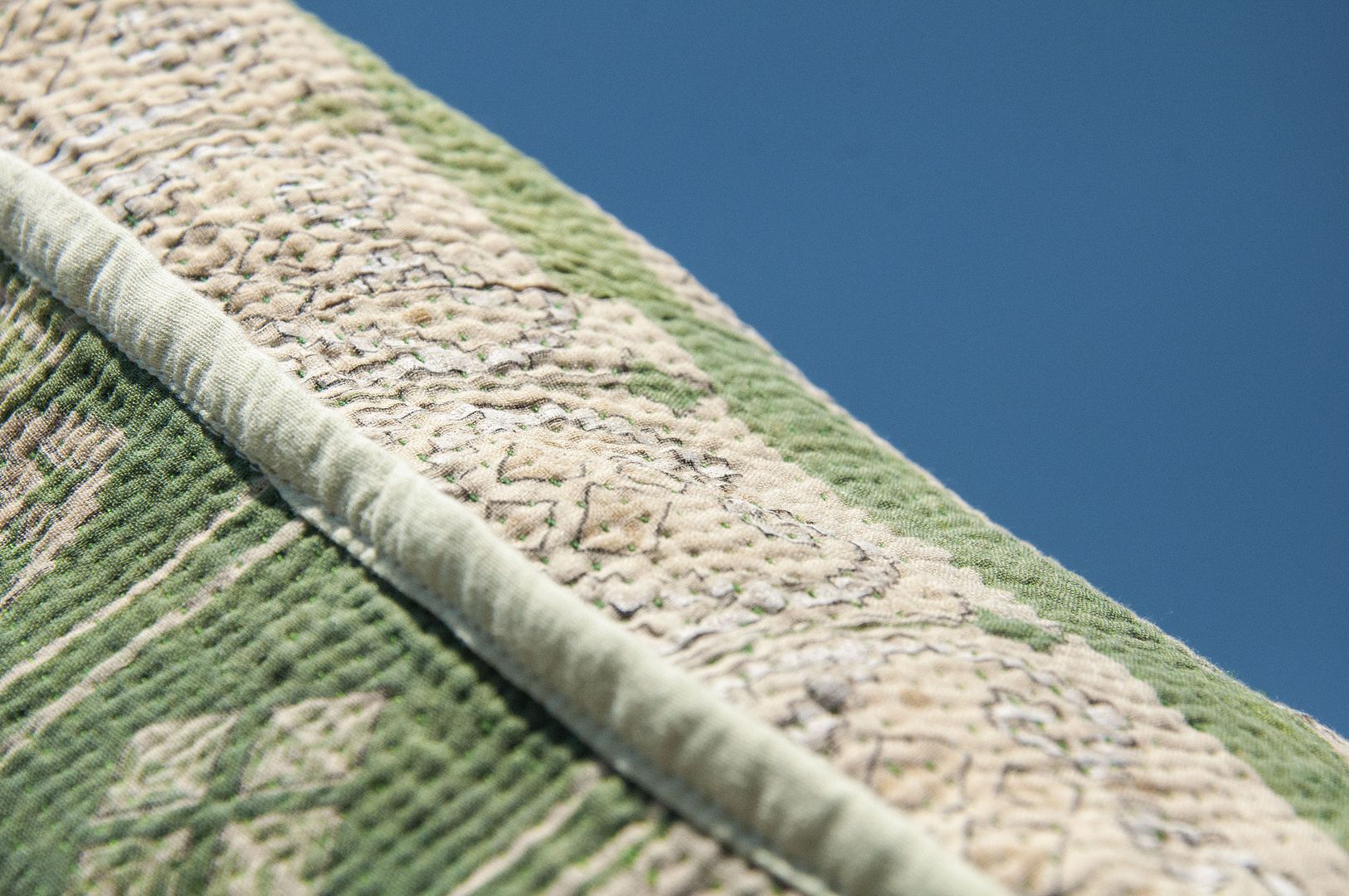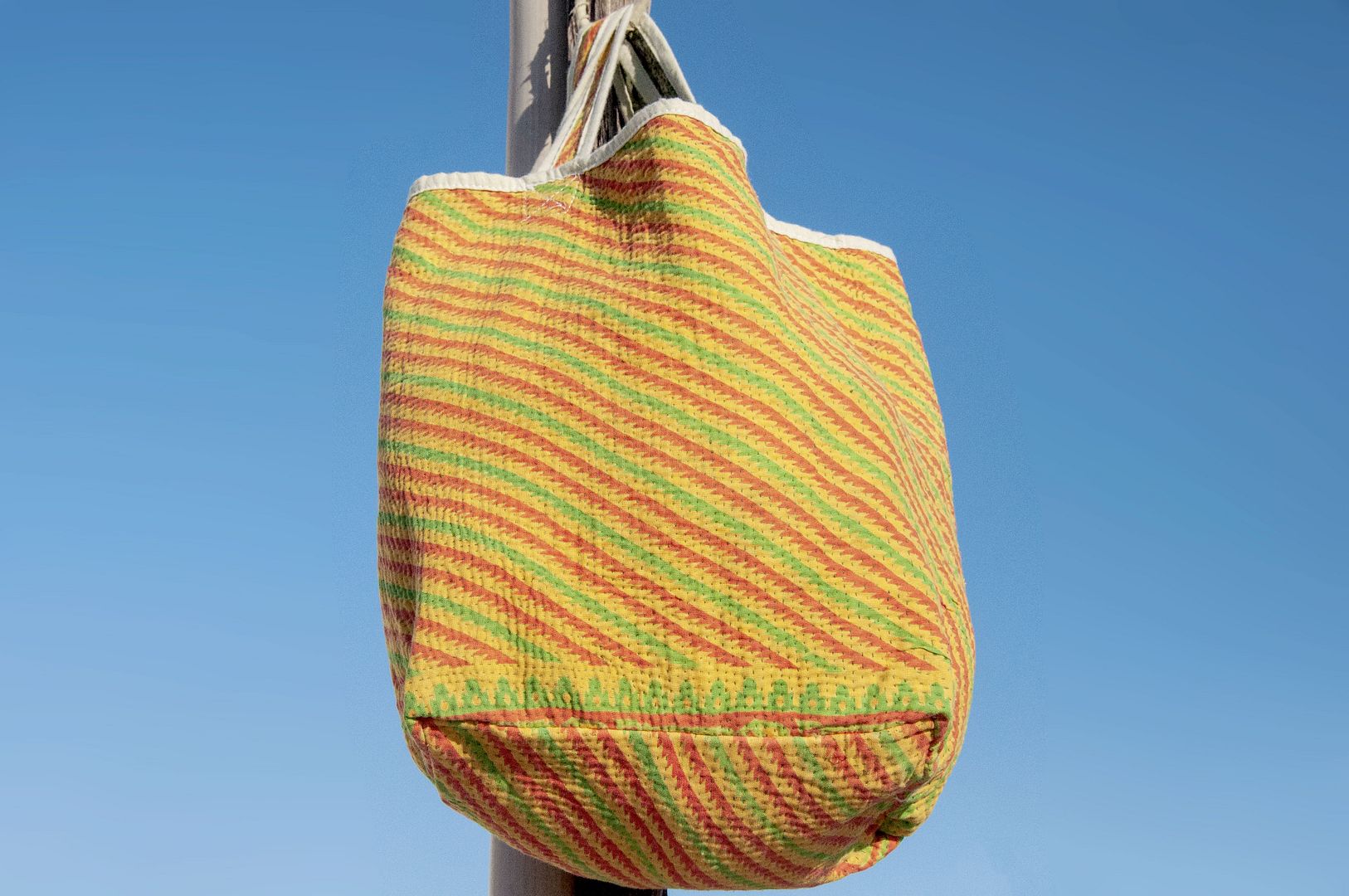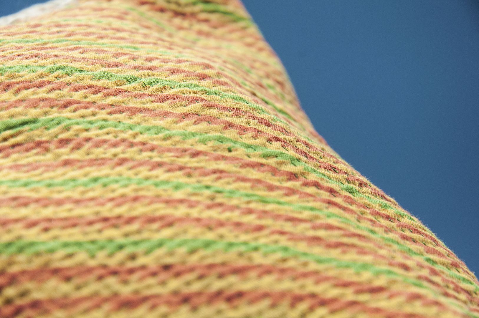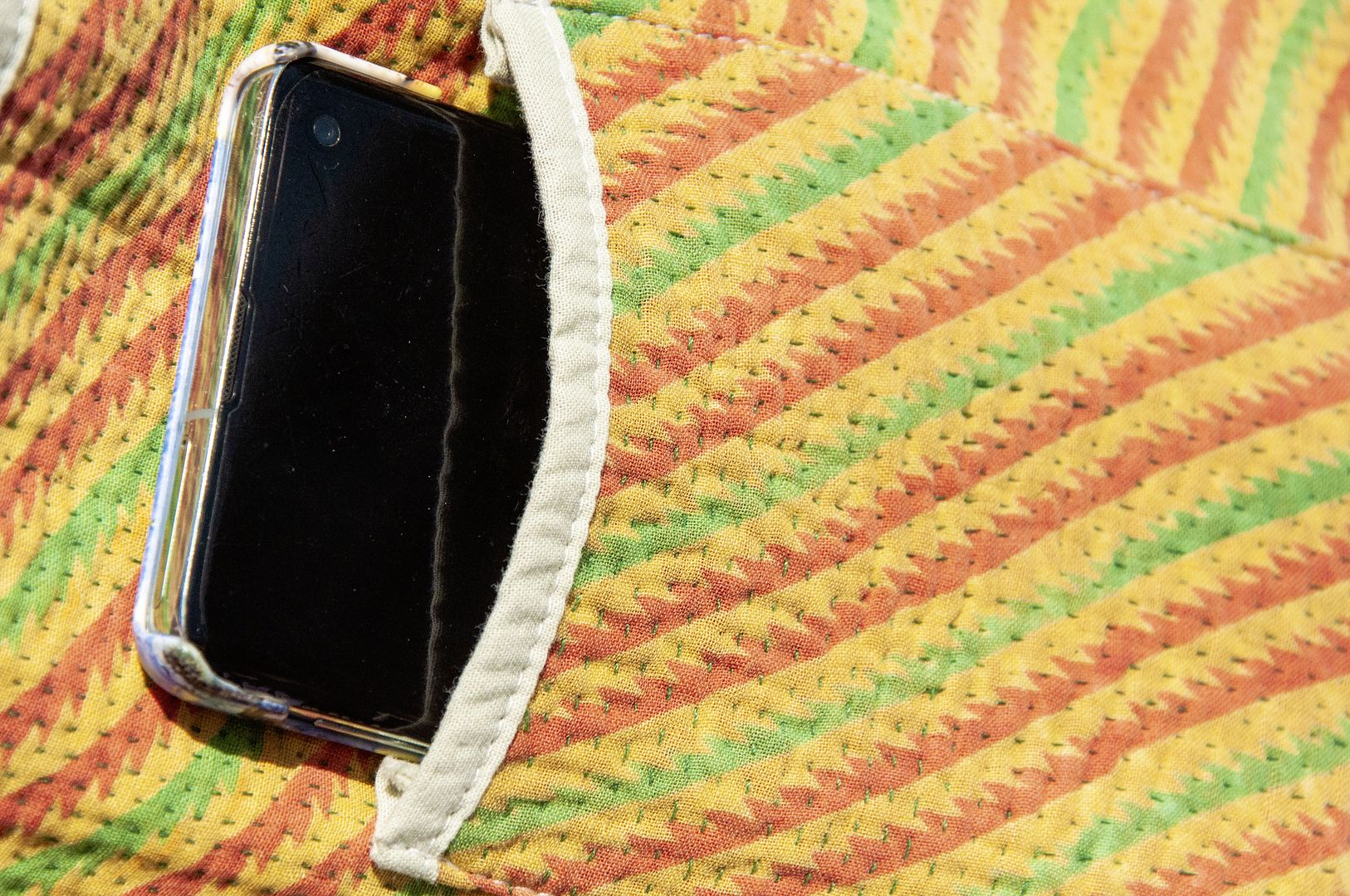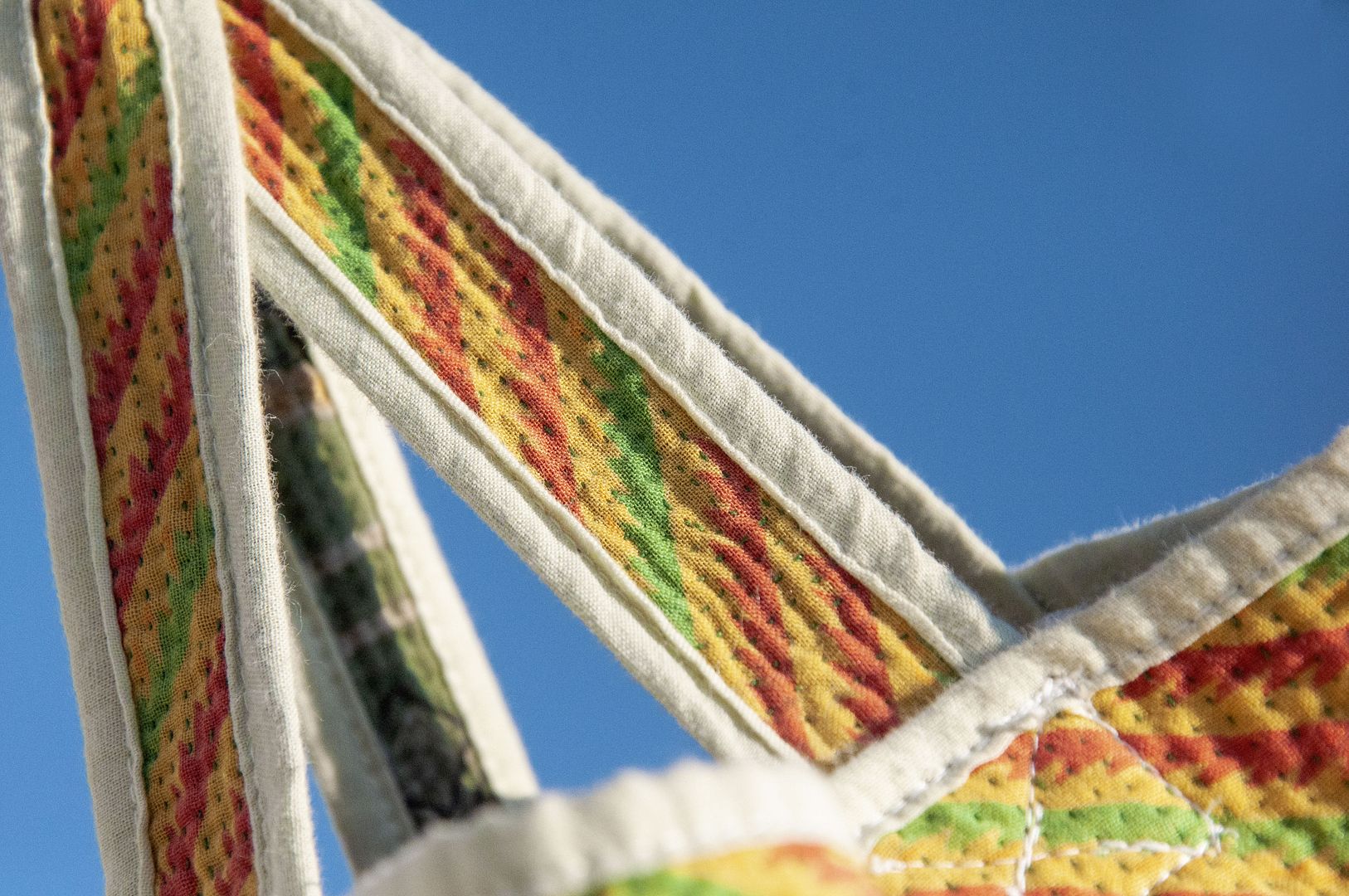 ▲來自印度沙漠地區的gudri刺繡工法,嚴選印度回收紗麗布+棉線刺繡