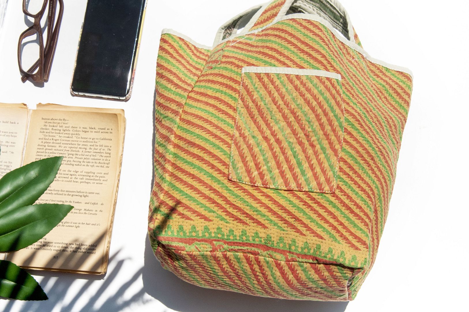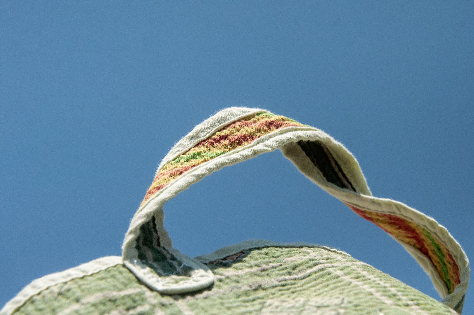 ▲因布料為回收紗麗布料,故有瑕疵或是破洞,屬於ESG永續商品,完美主義者請繞道,狀況如圖,基本上是不影響使用
