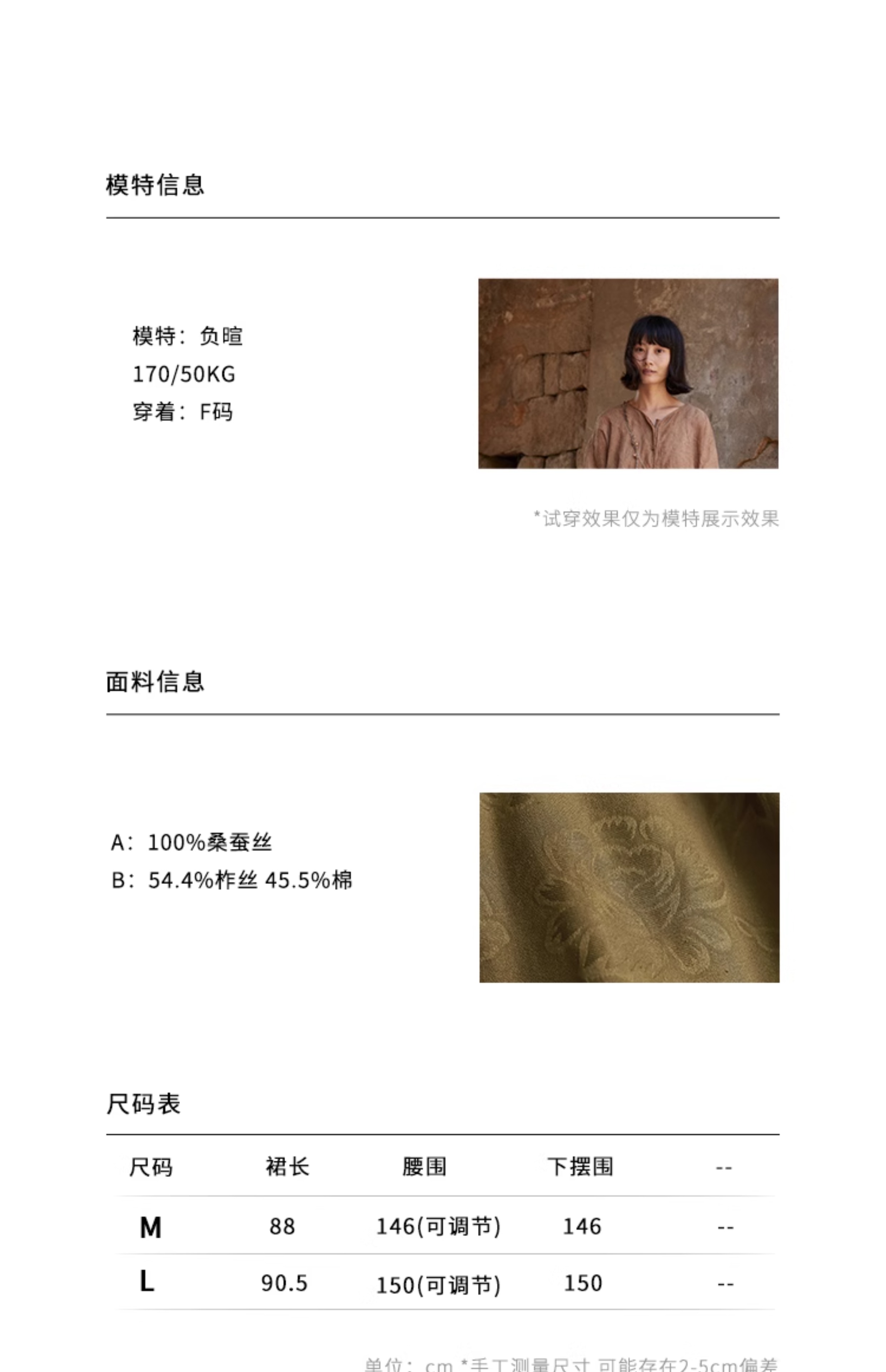 M:裙長88cm 腰圍146cm(可調節) 下擺圍146cm