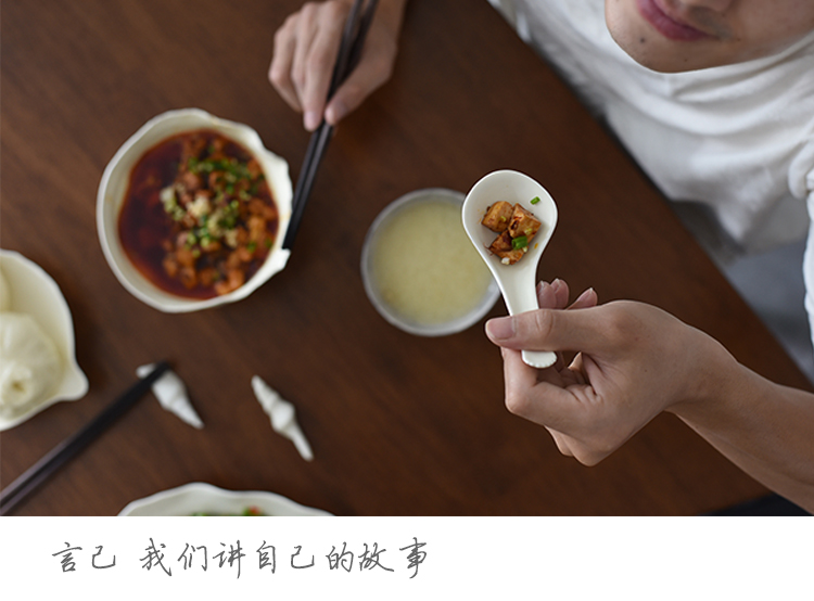 言己生活原創設計勺子 陶瓷湯勺 餐勺 手作餐具 甜品勺 日式 中式