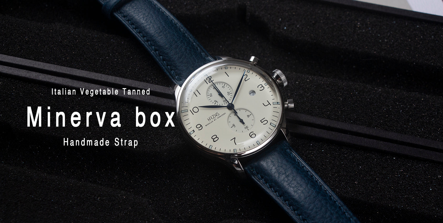 全新推出Minerva Box錶帶所有工序由資深職人手工製作,更採用傳統手工包邊及全帶手縫線工藝,錶帶以貼合手腕帶弧度配戴設計 , 其中錶帶里皮更選用法國HAAS Zermatt小牛皮, HAAS亦為國際品牌H家所使用皮革, Zermatt触感舒適且具有一定防水性。(本款搭配無快拆式生耳)