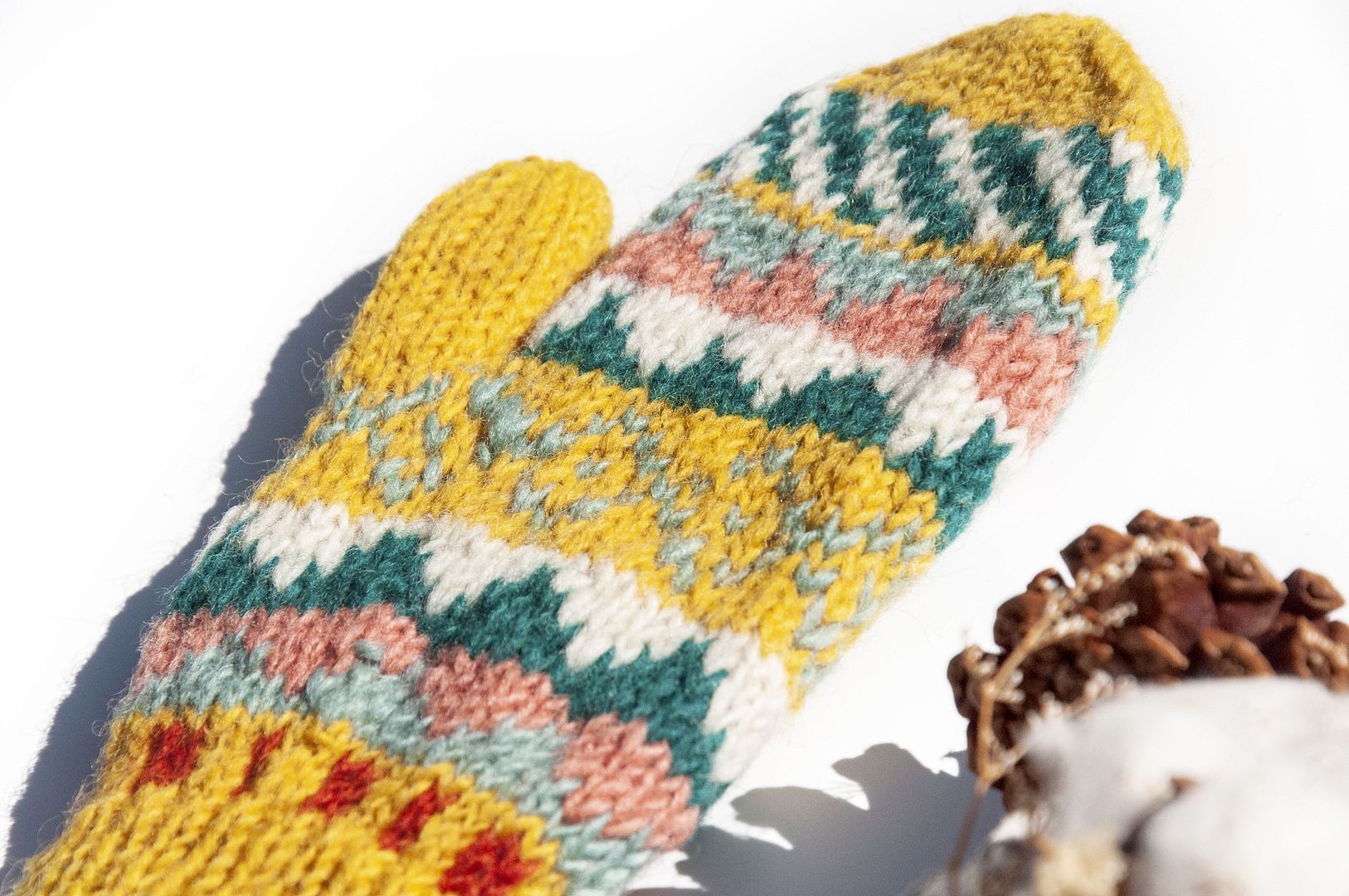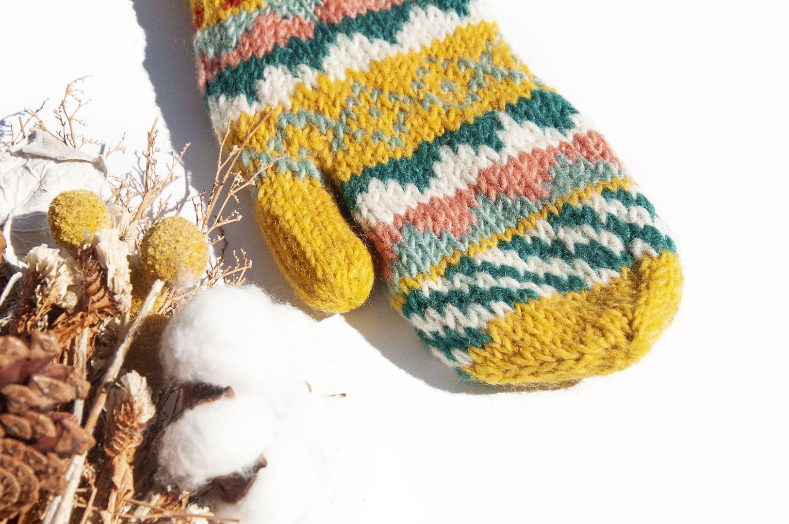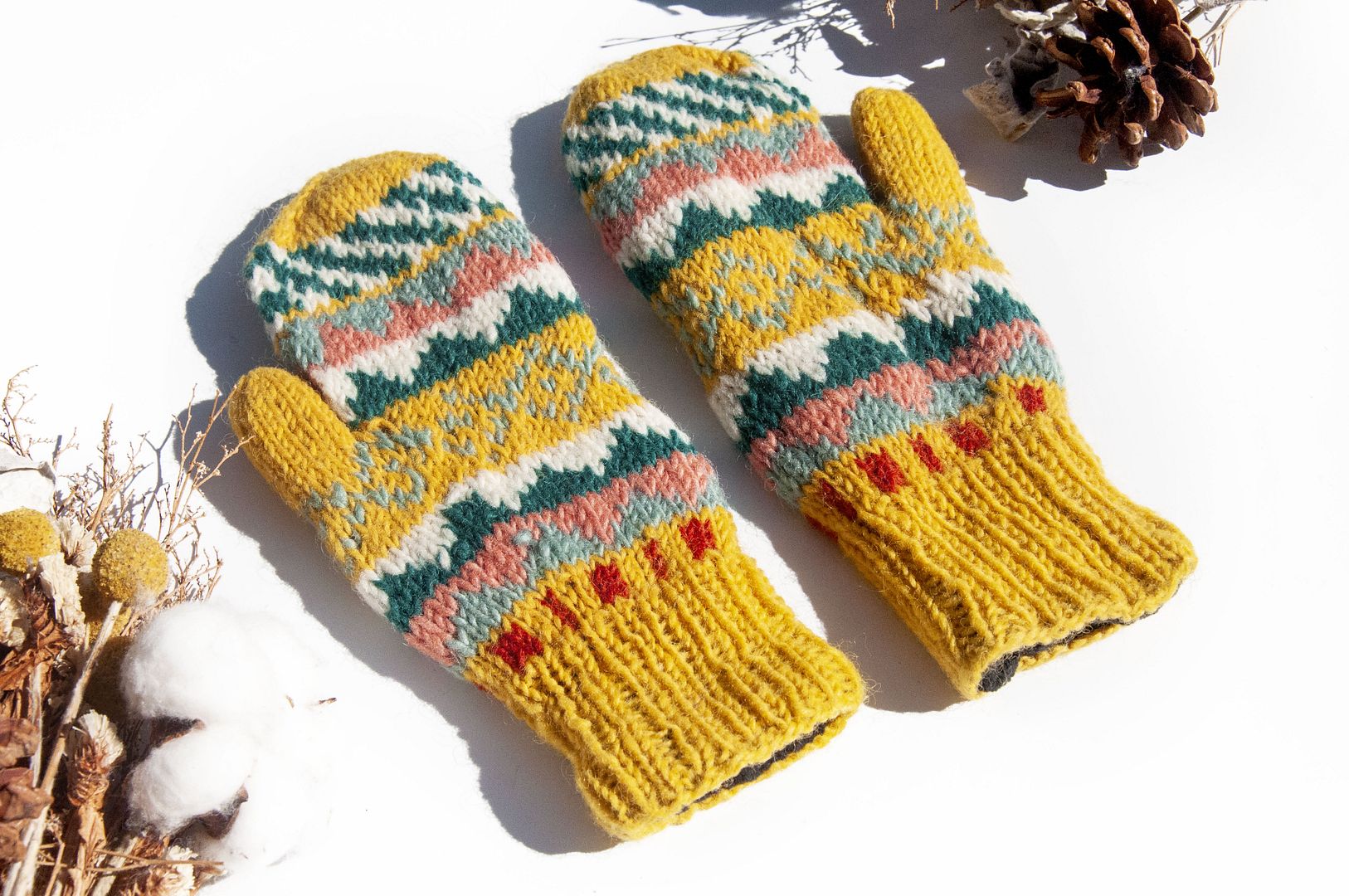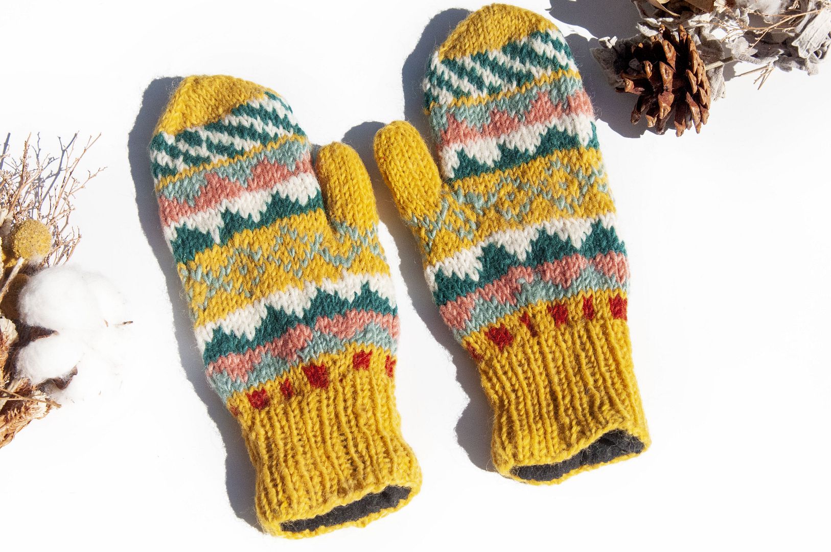 手織純羊毛針織手套/聖誕節保暖手套/內刷毛手套/拳擊手套-北歐風