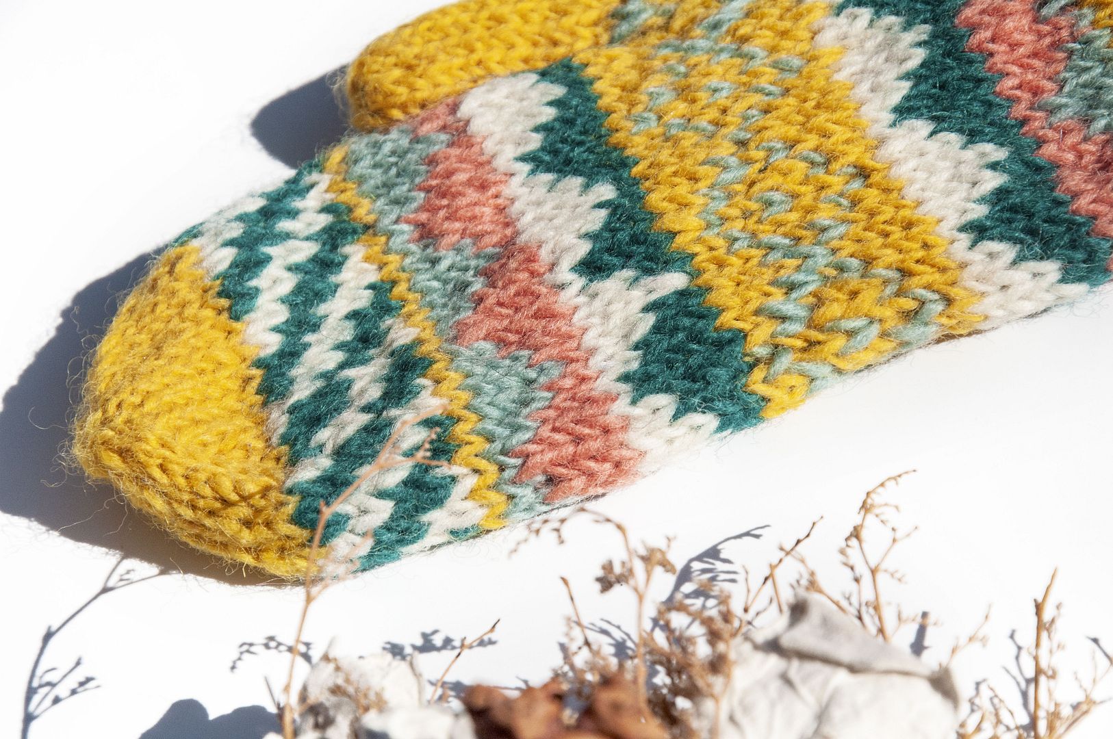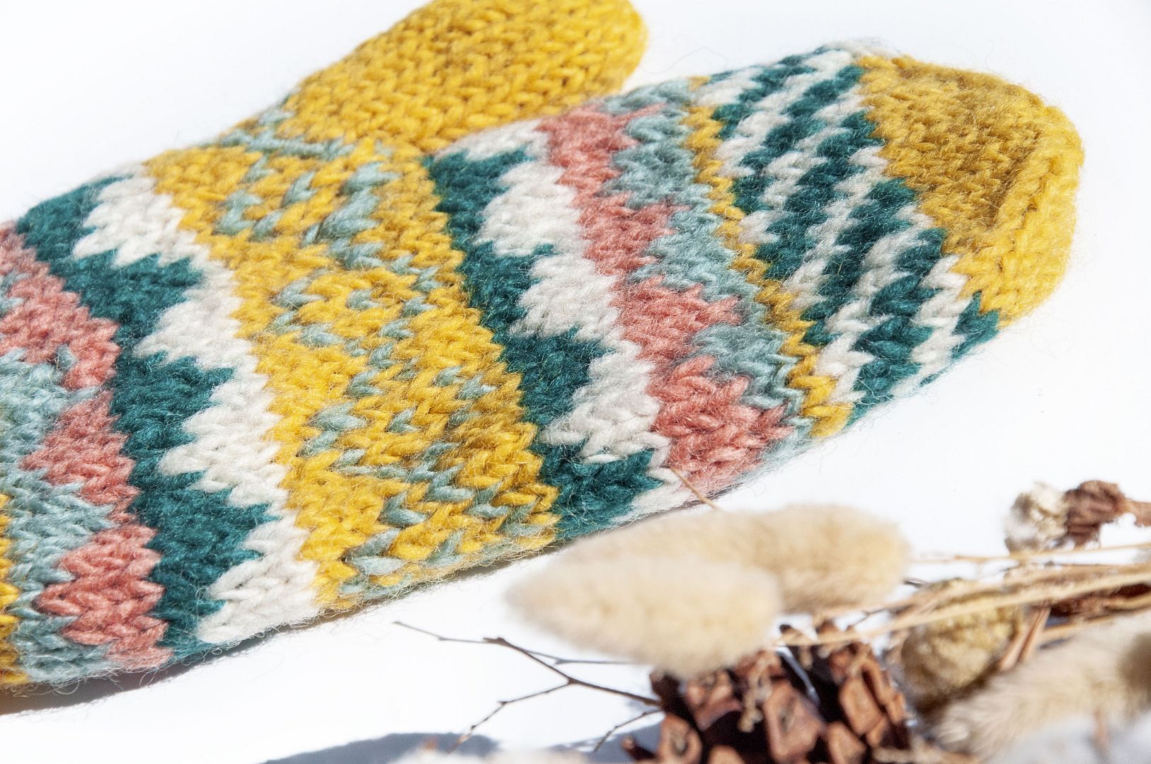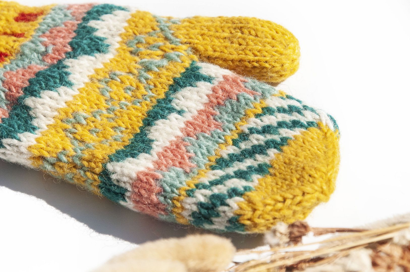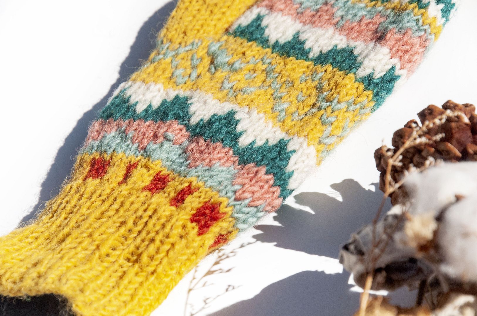 手織純羊毛針織手套/聖誕節保暖手套/內刷毛手套/拳擊手套-北歐風