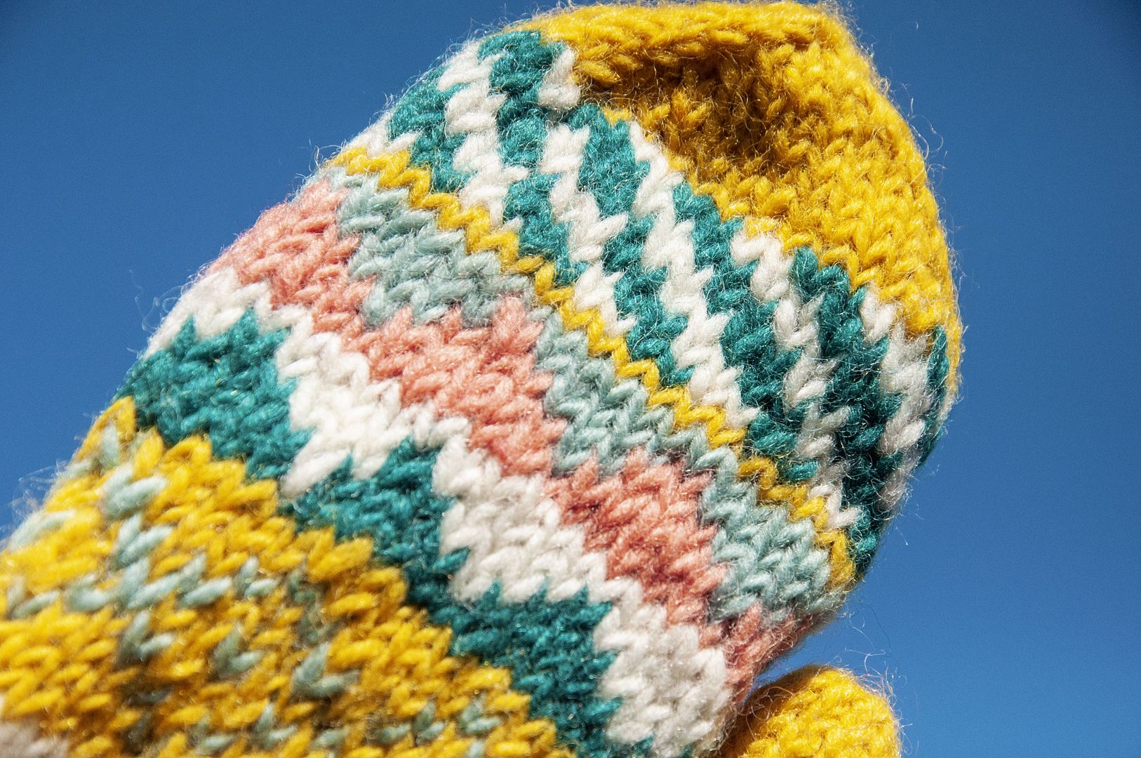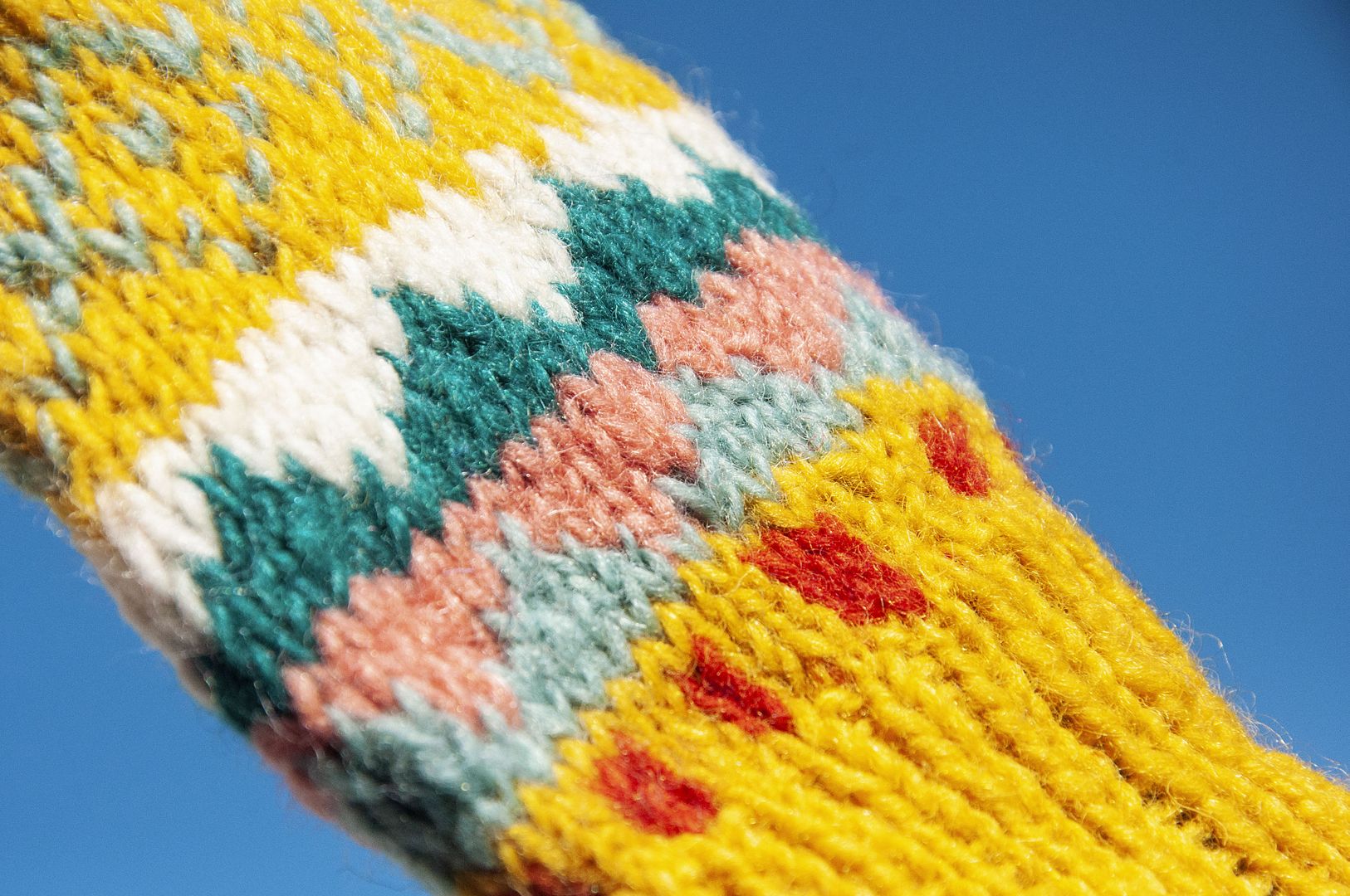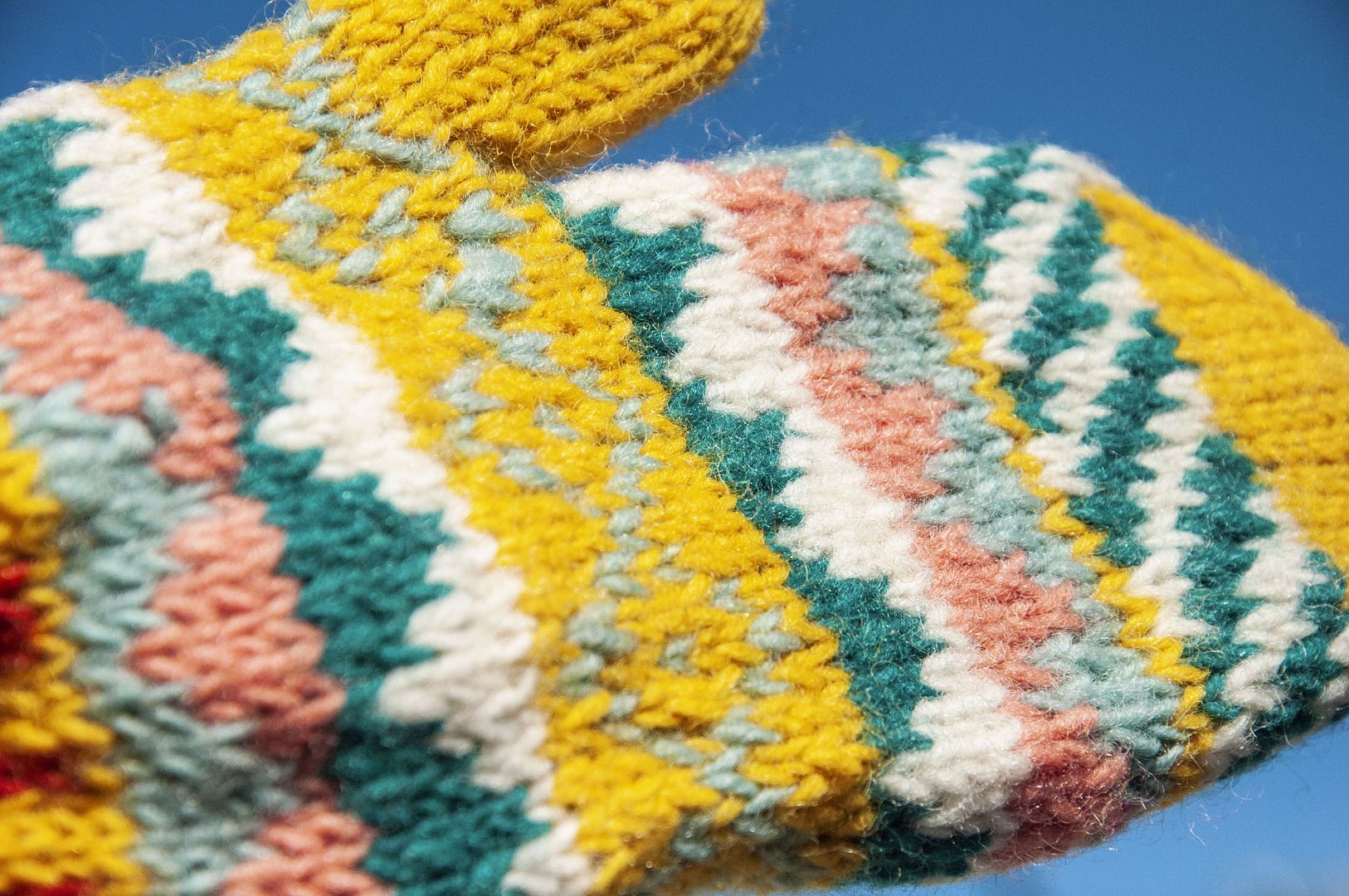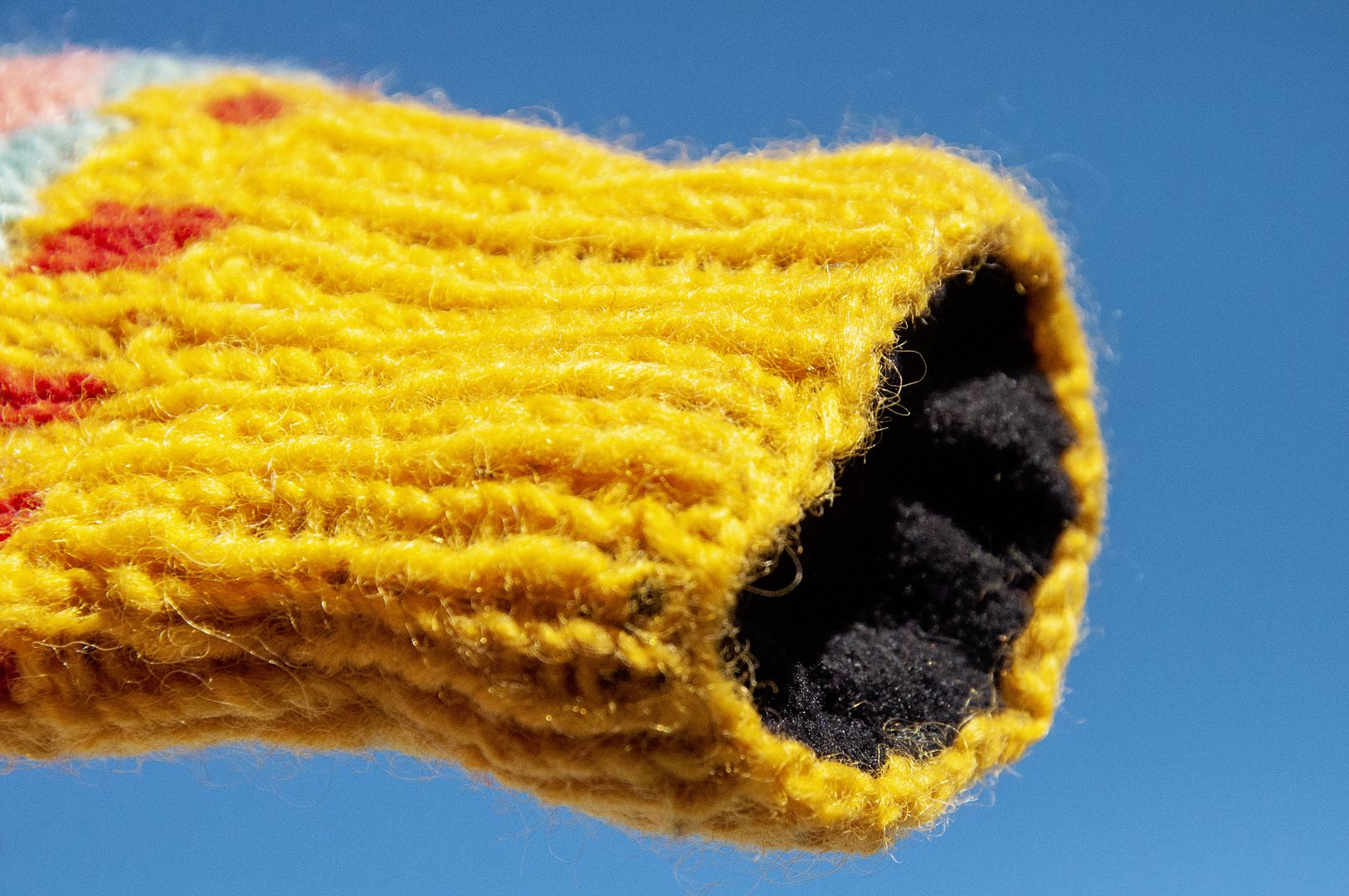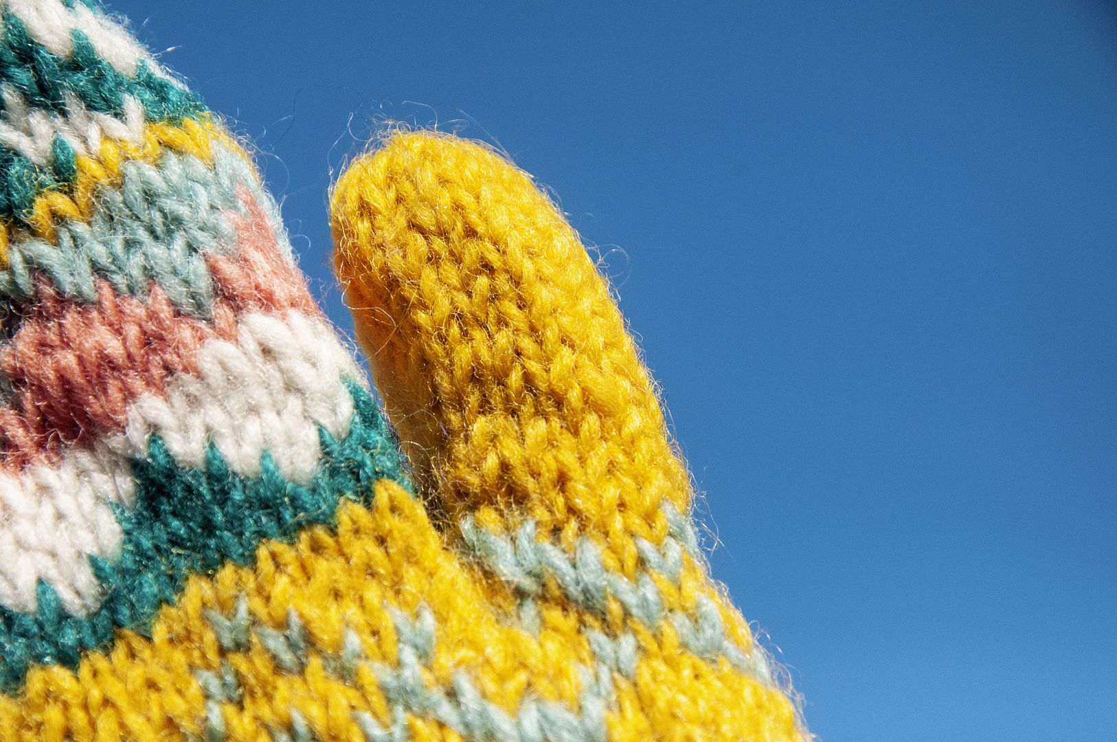 ▲由設計師設計,手工編織的純羊毛手套,帶出春天陽光下的溫暖氛圍