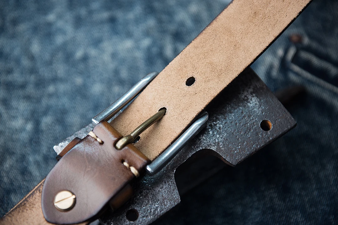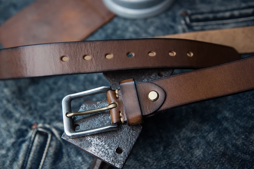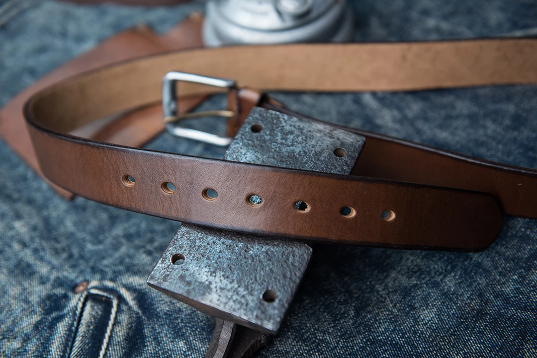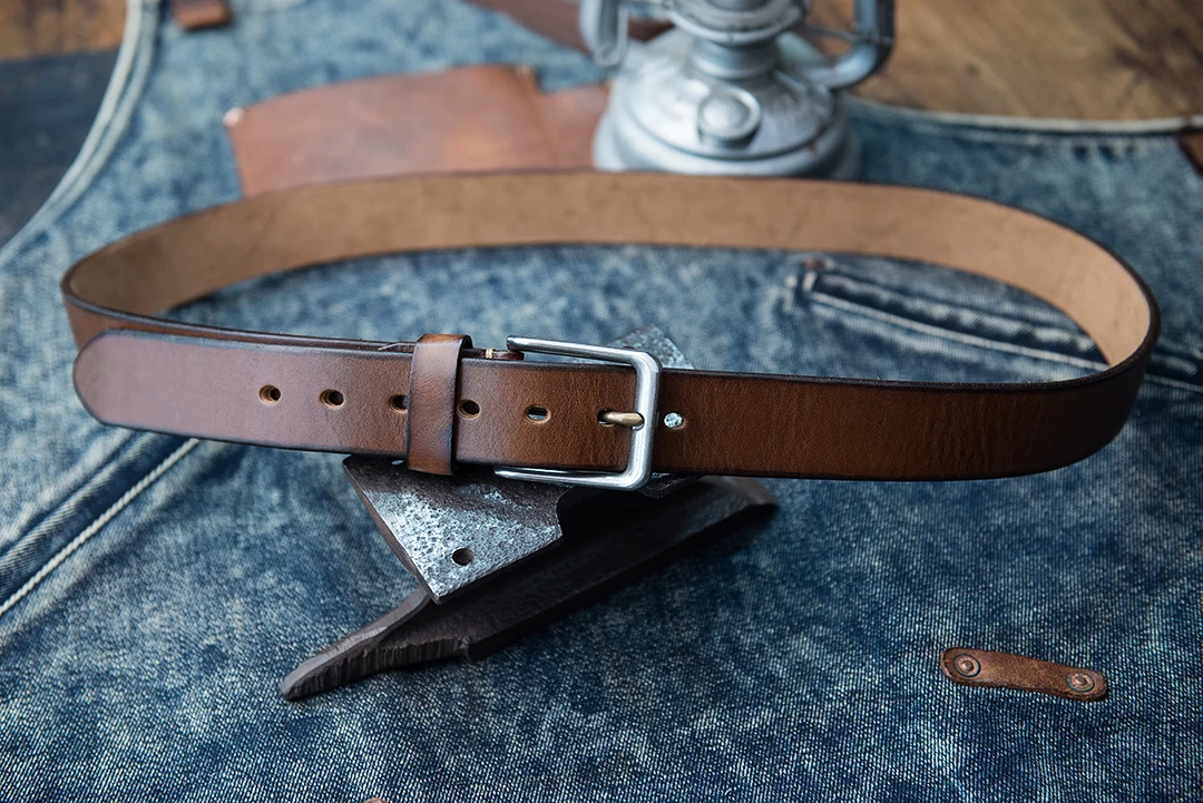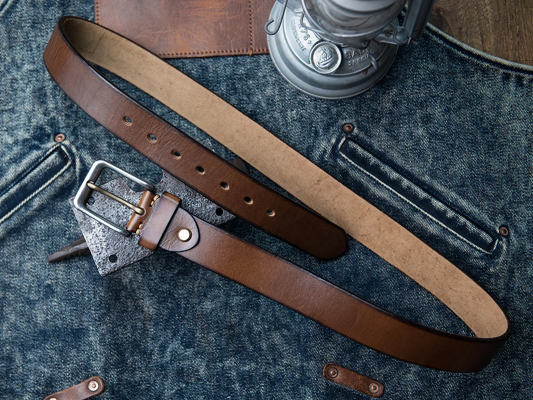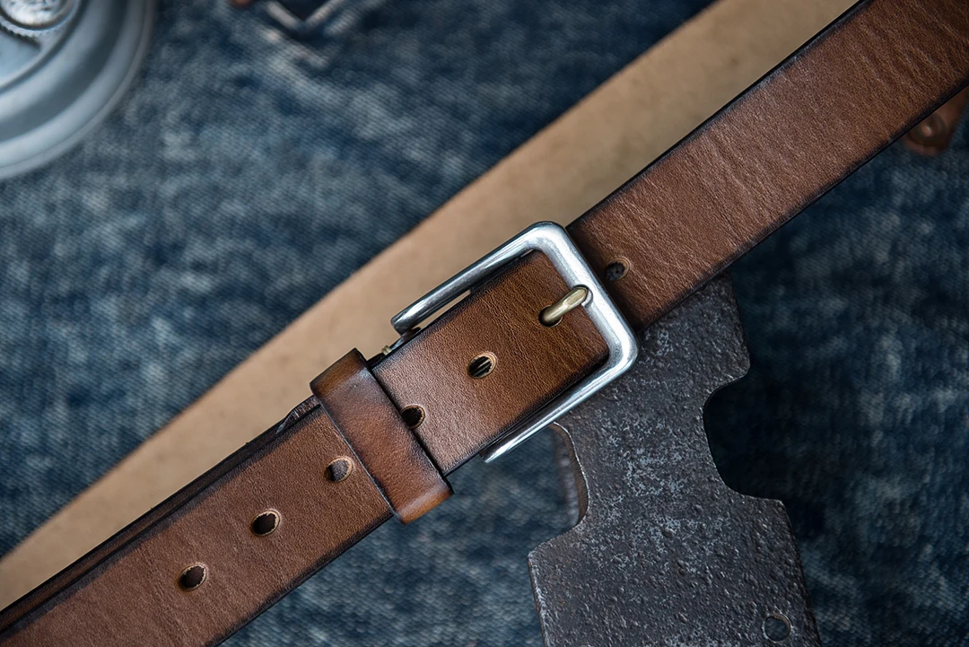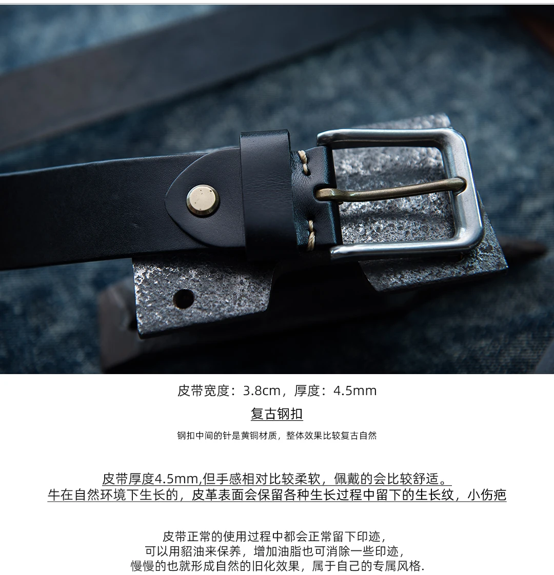 復古男腰帶 3.8寬 植鞣牛皮不鏽鋼針扣皮帶