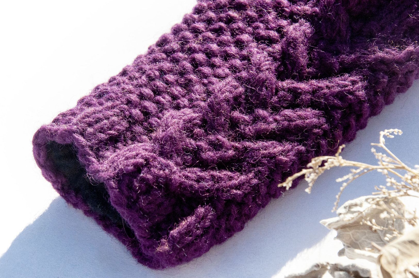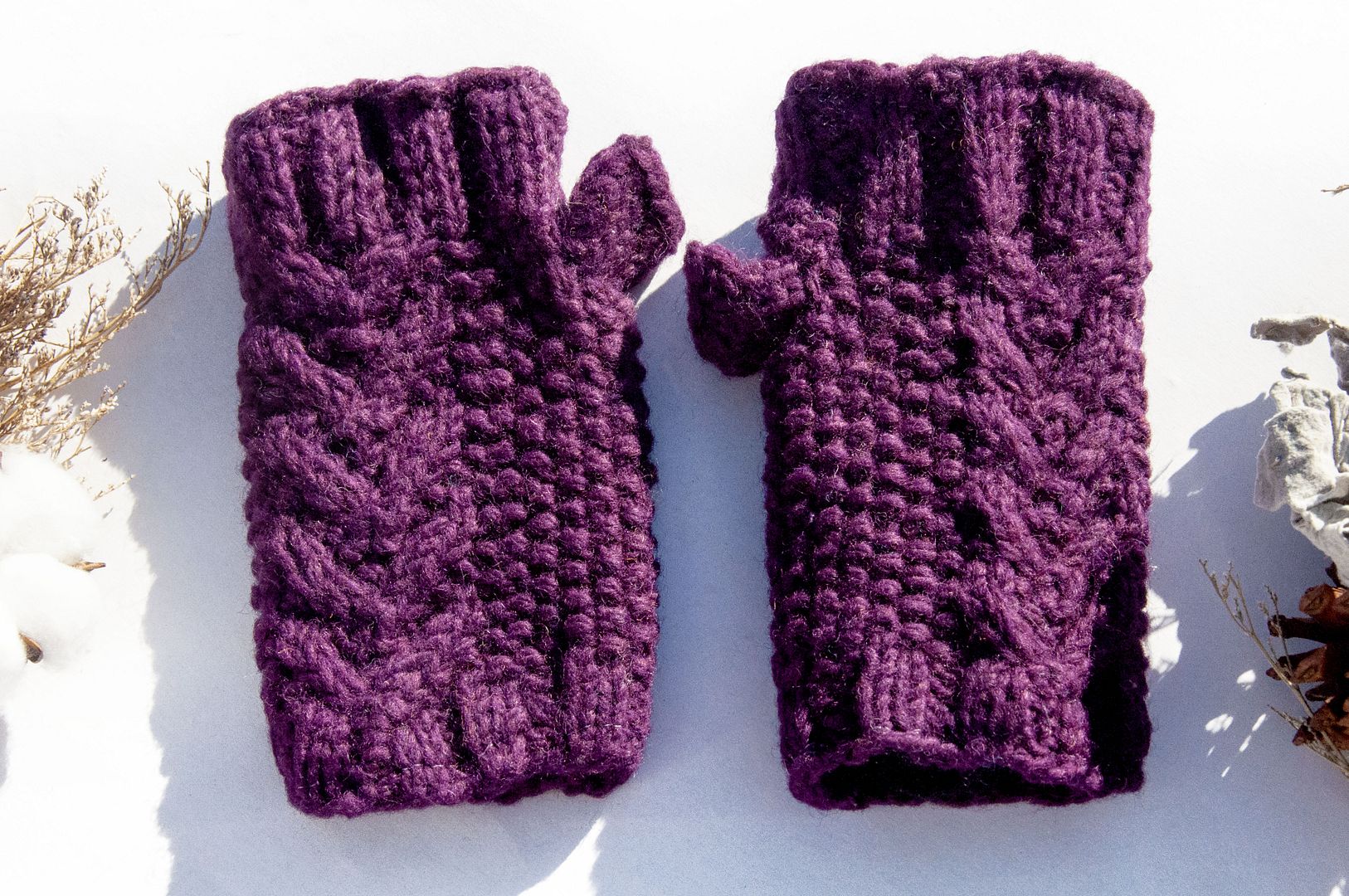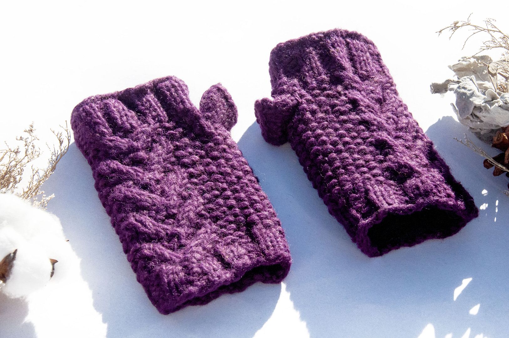 手織純羊毛針織手套/露趾手套/內刷毛手套/保暖手套-北歐紫薰衣草