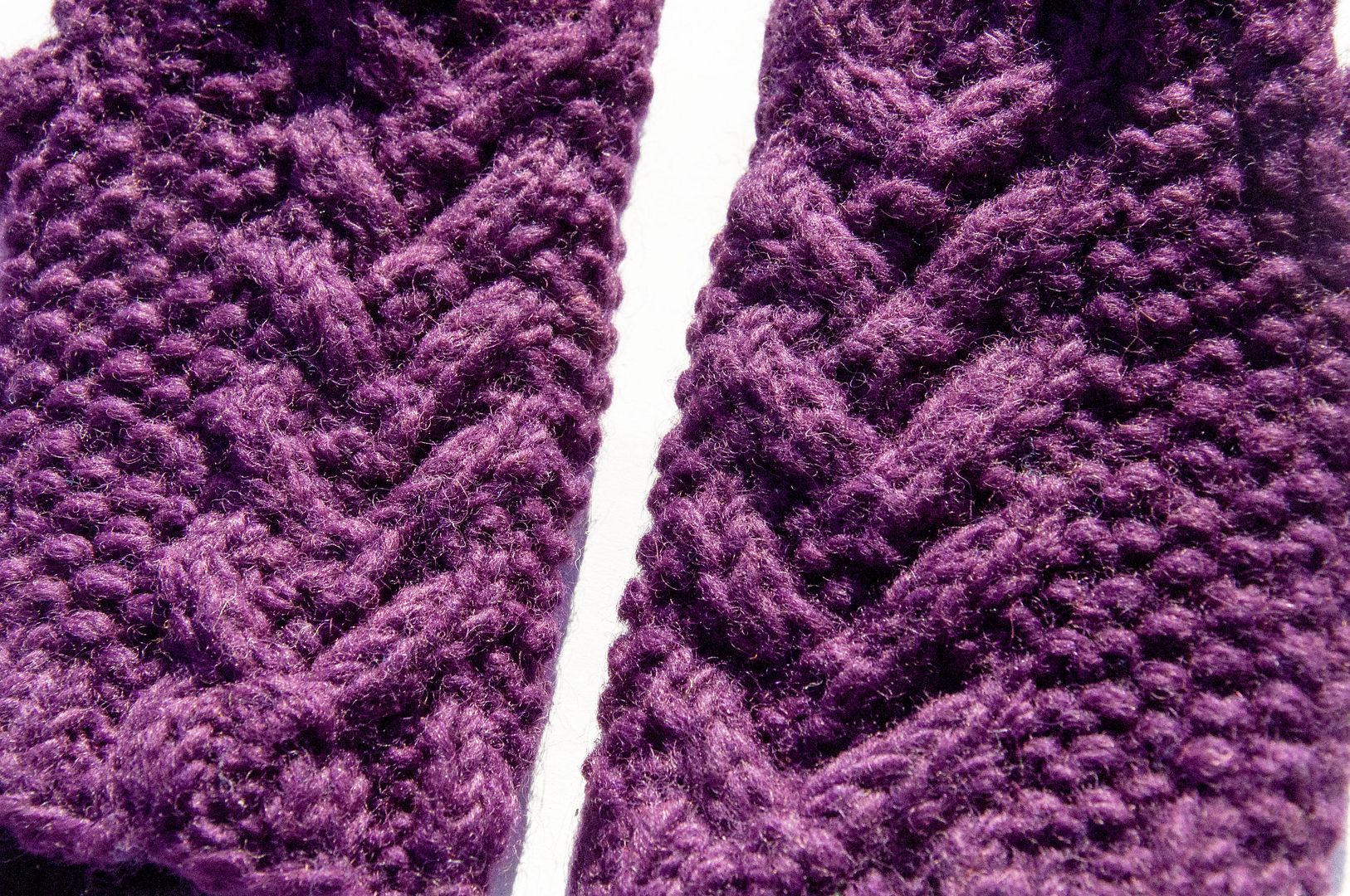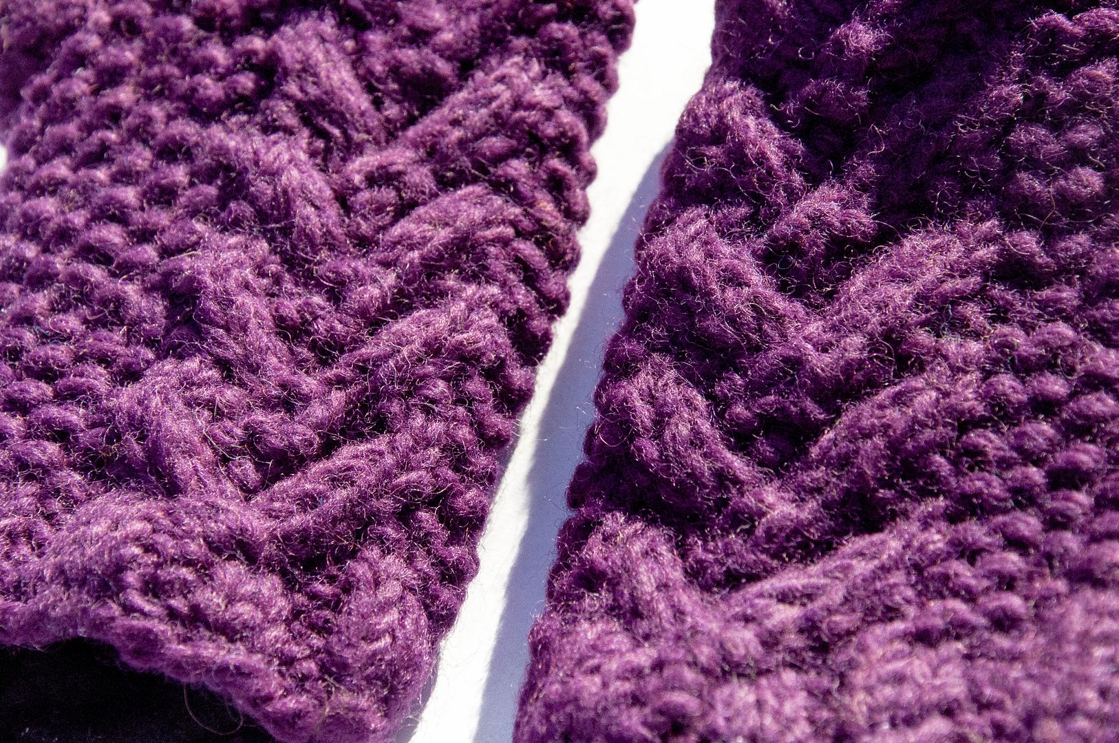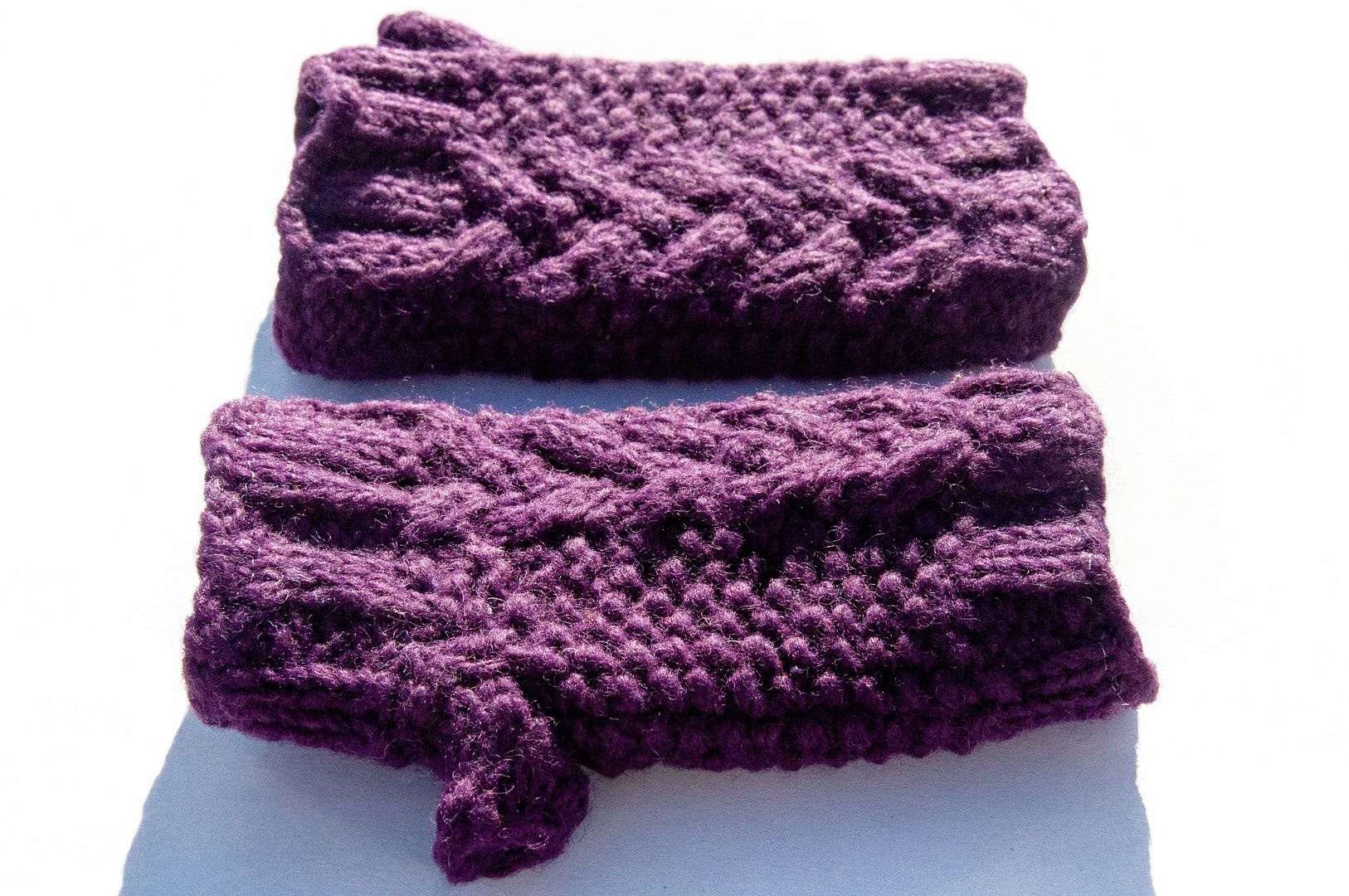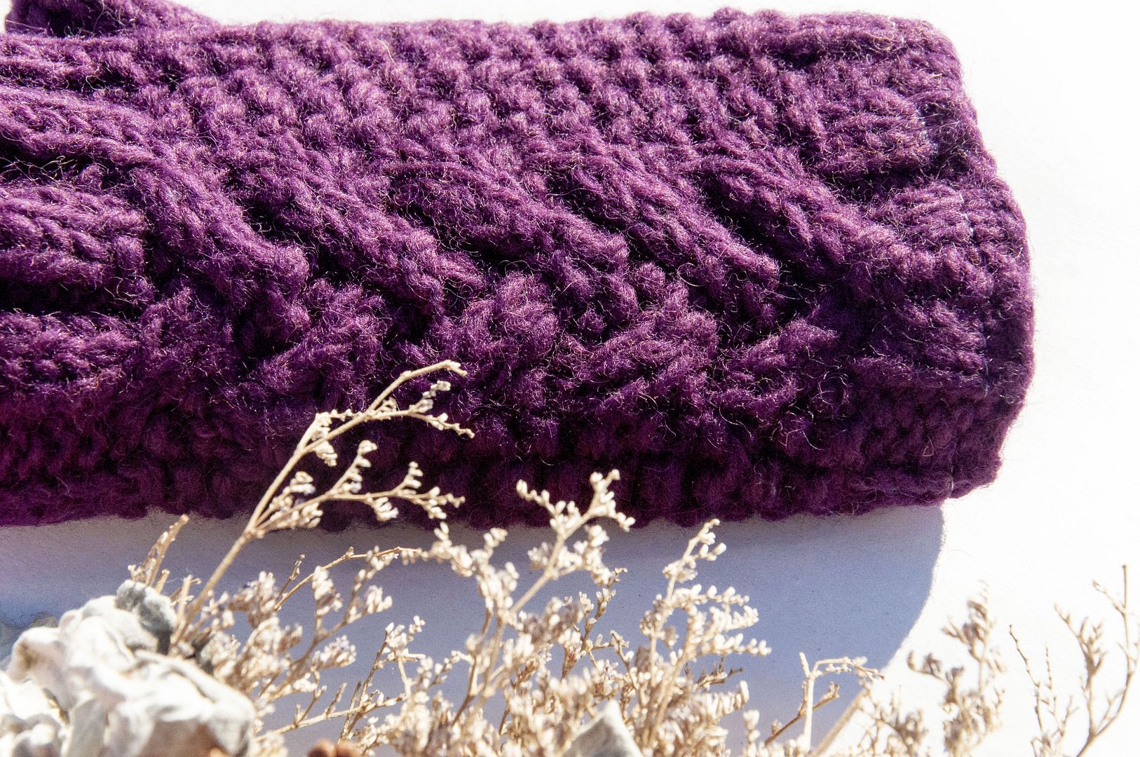 手織純羊毛針織手套/露趾手套/內刷毛手套/保暖手套-北歐紫薰衣草