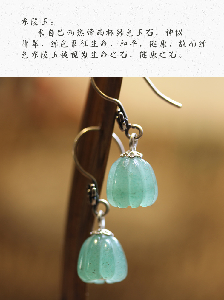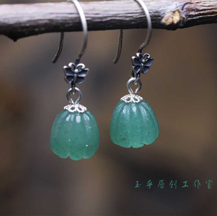 復古氣質款 玉石東陵玉 南瓜珠 蝴蝶耳墜